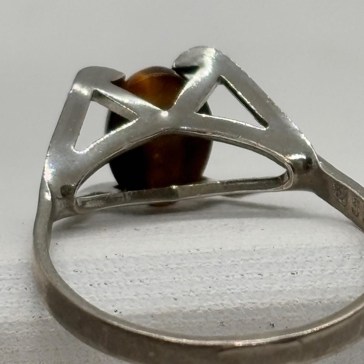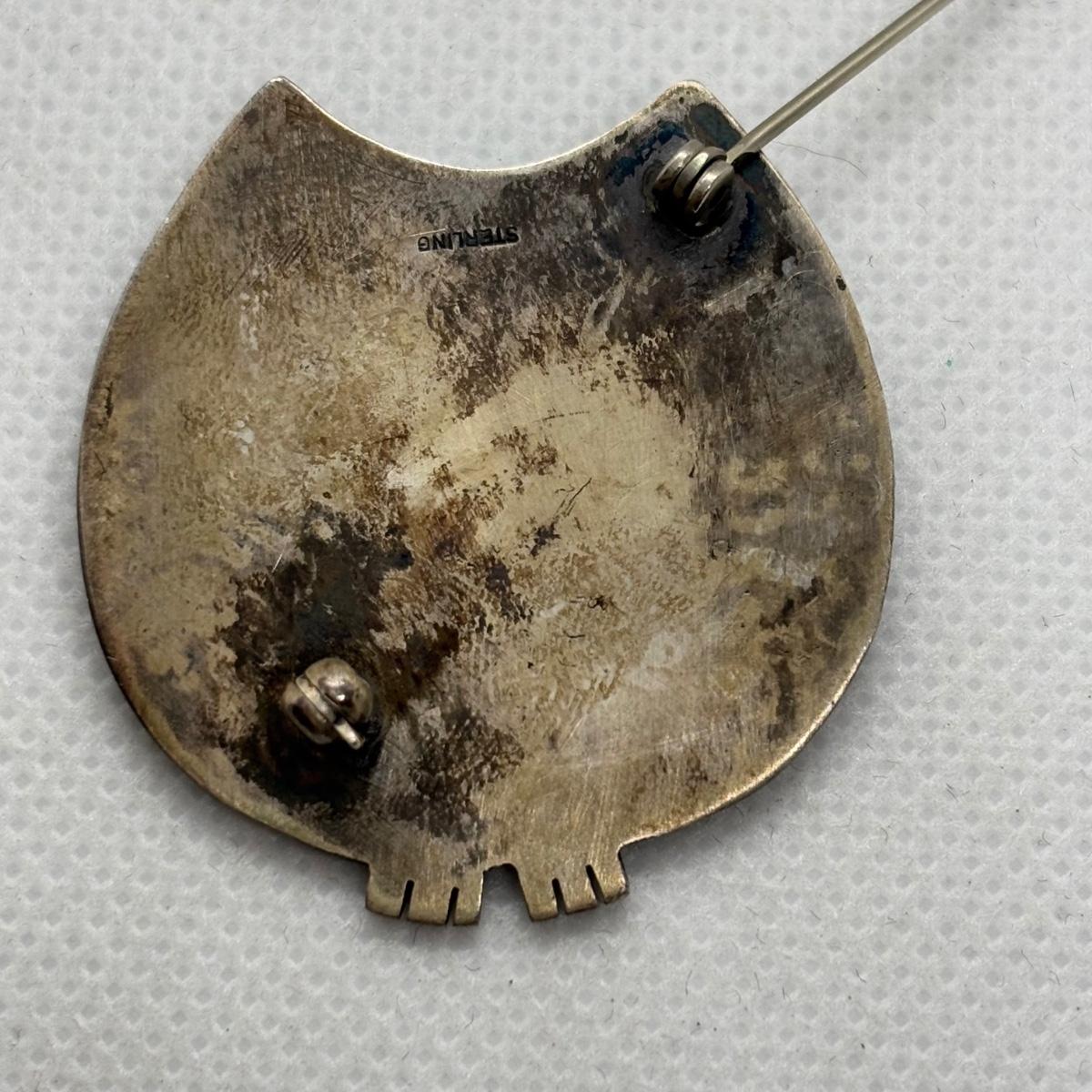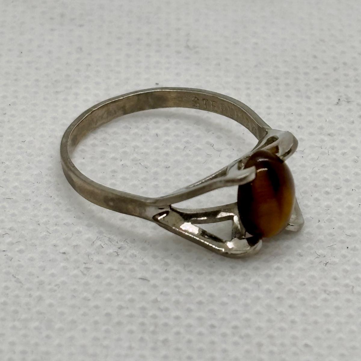 LOT 91: Sterling Silver Tiger Eye Owl Brooch & Ring, sz 7