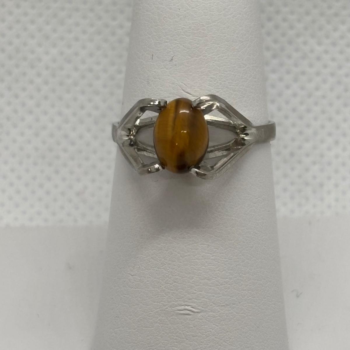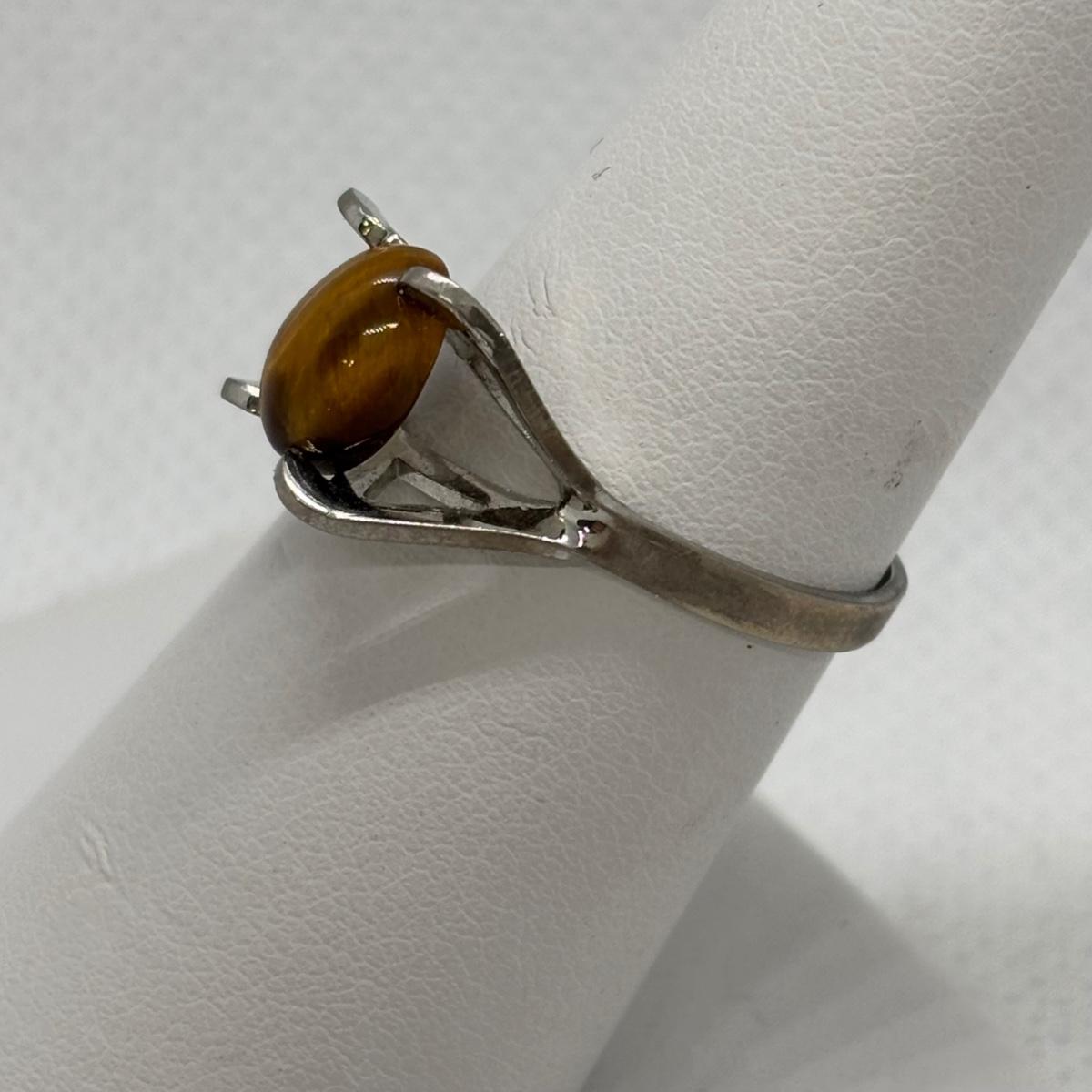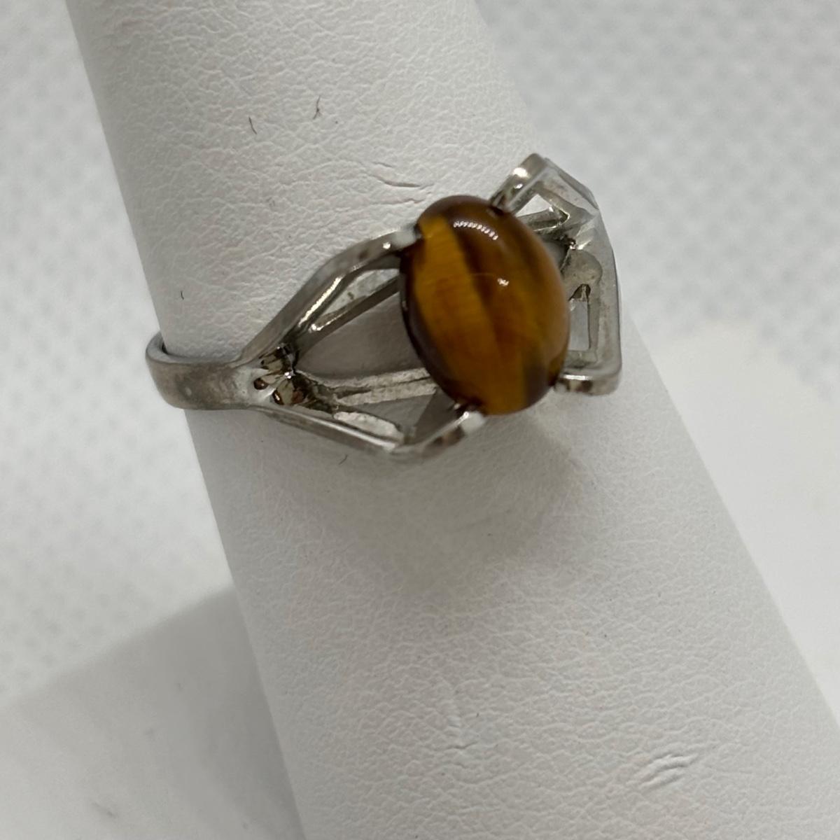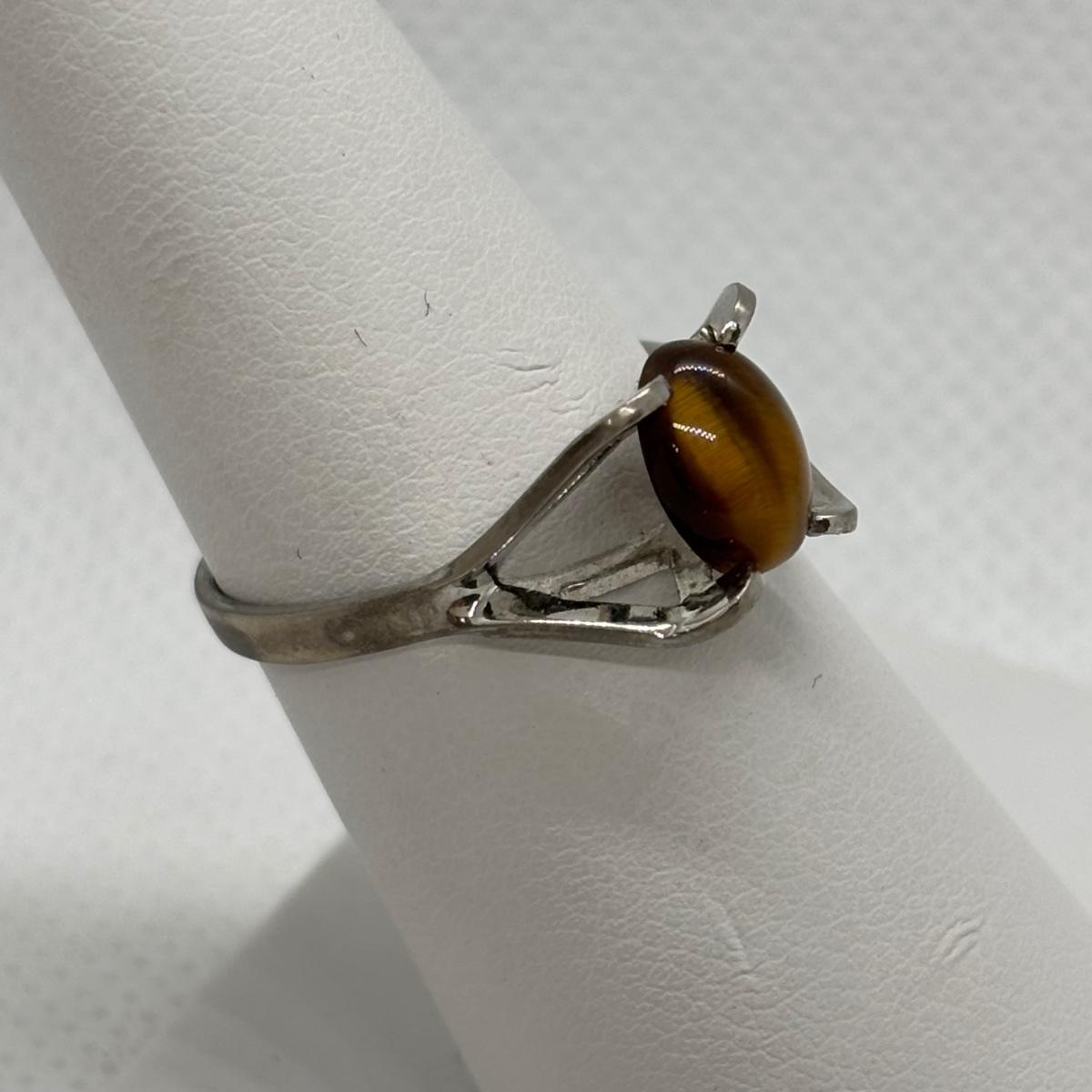 LOT 91: Sterling Silver Tiger Eye Owl Brooch & Ring, sz 7