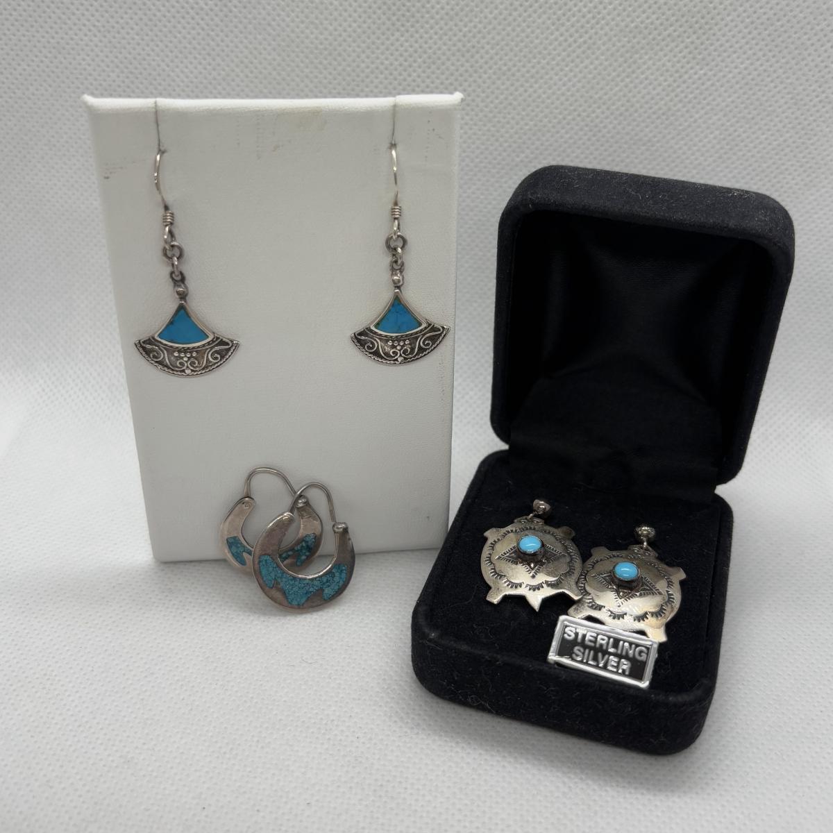 LOT 98: Sterling Silver Earring Collection: A. Cadmen, Hecho & 925