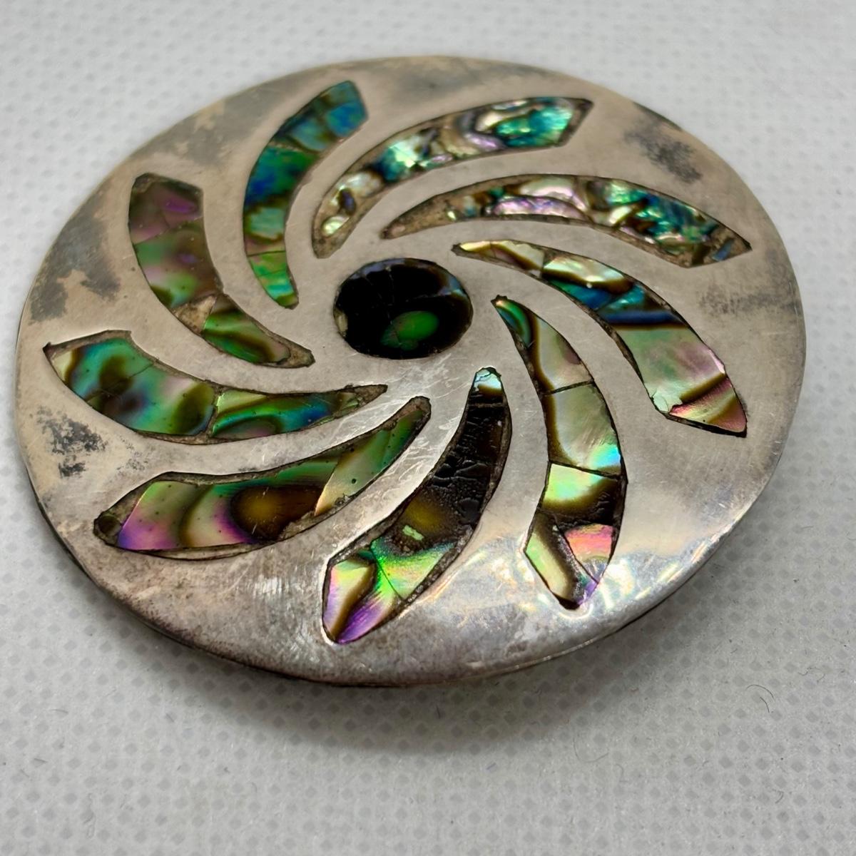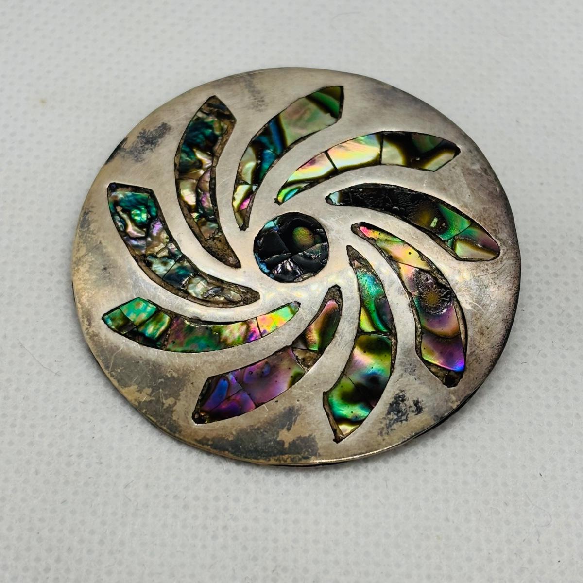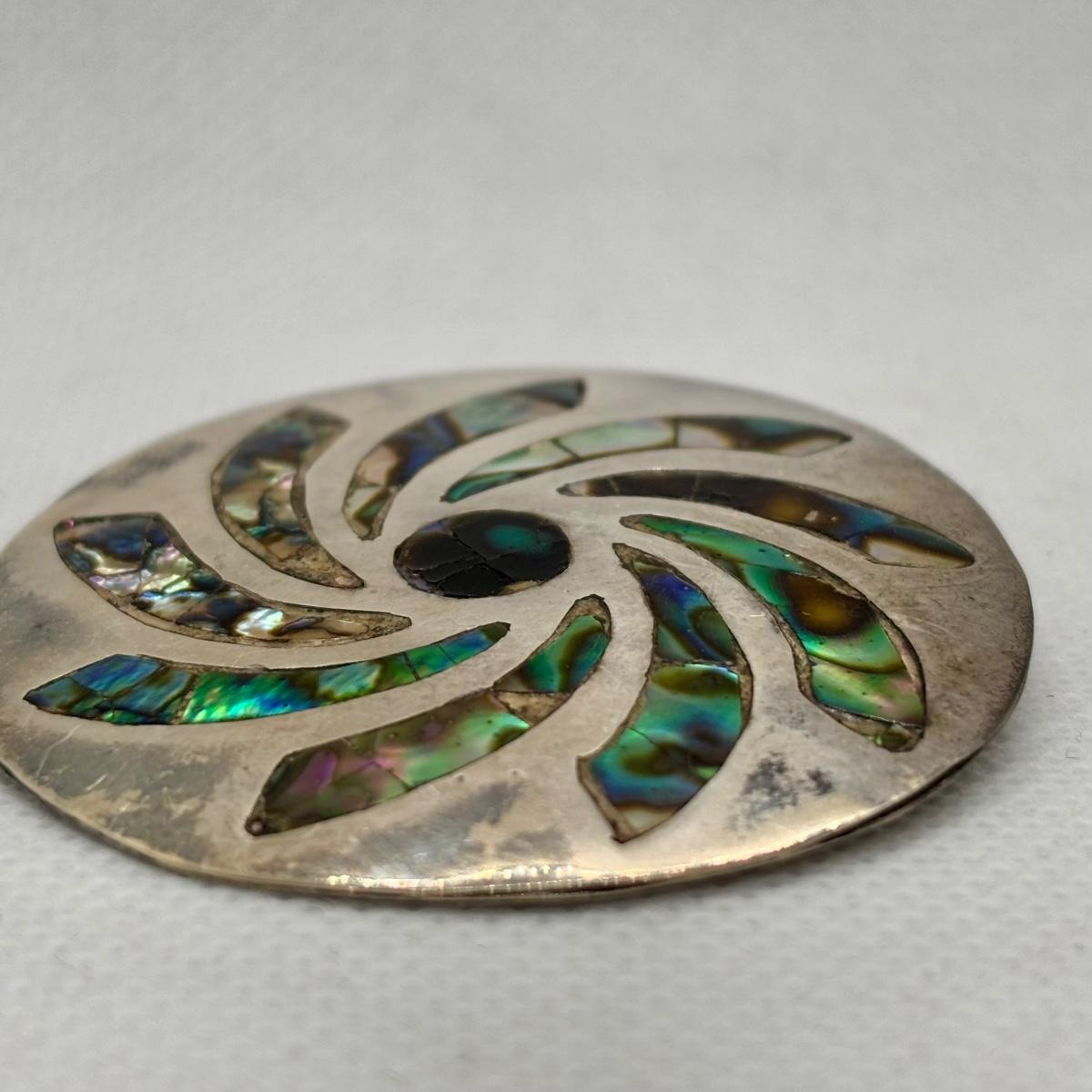 LOT 100: APC 925 Mexico Sterling Silver & Abalone Inlay Brooch, 9.5g Tw