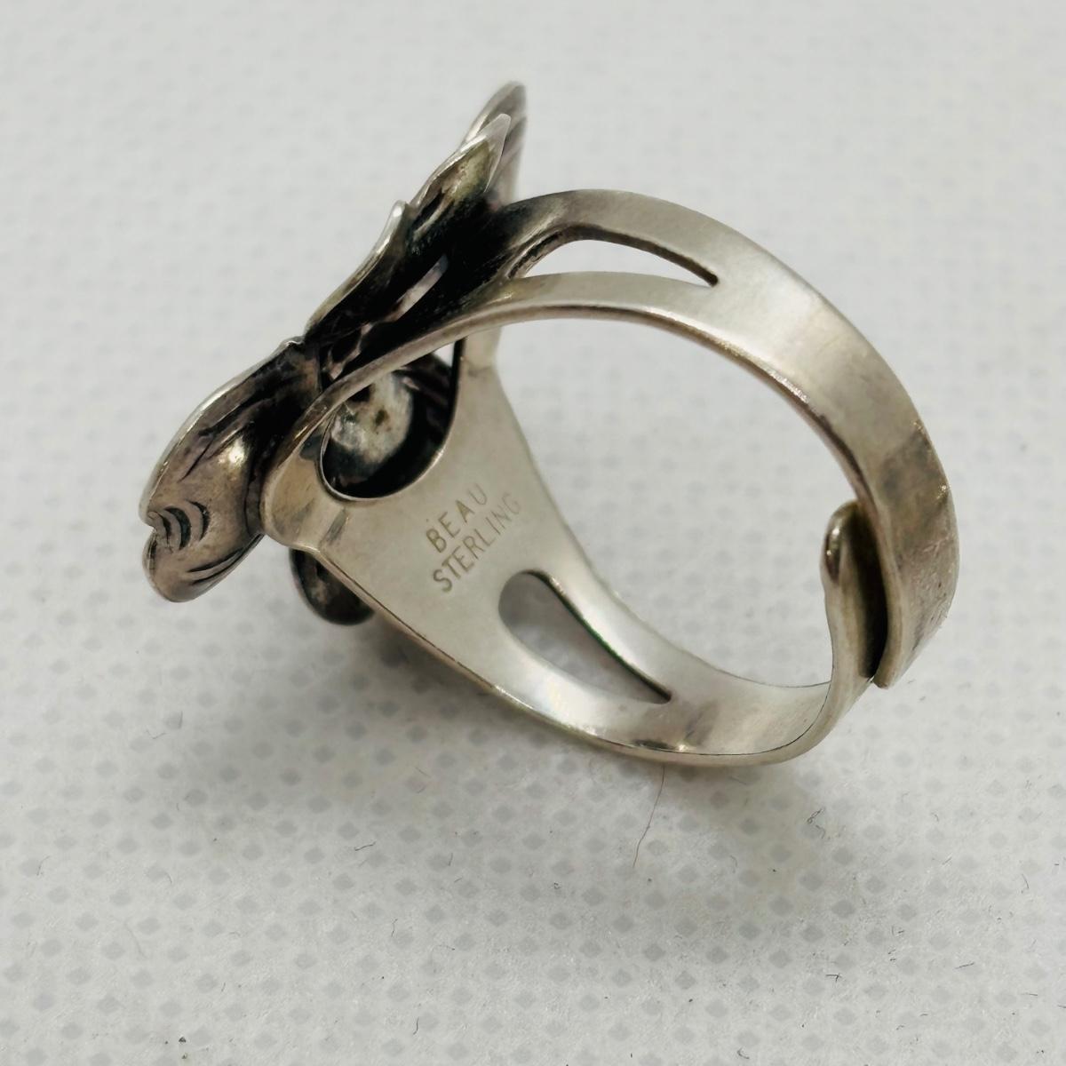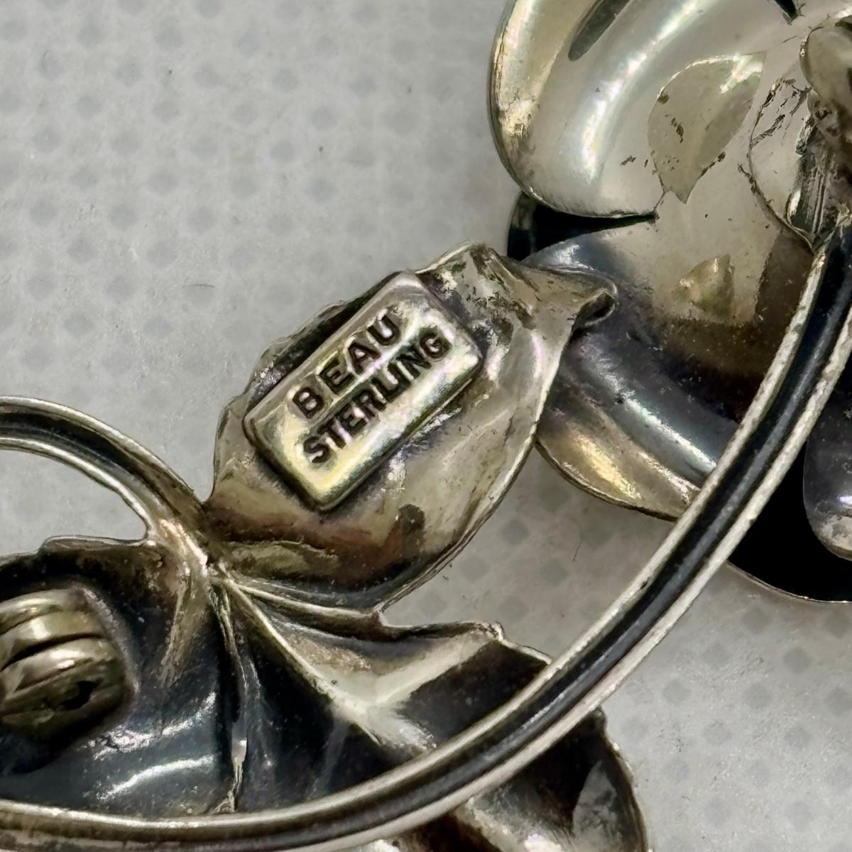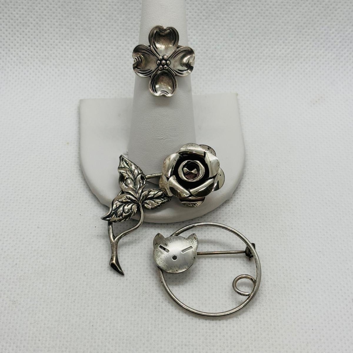 LOT 102: Vintage Beau Sterling Silver Brooches & Adjustable Flower Ring