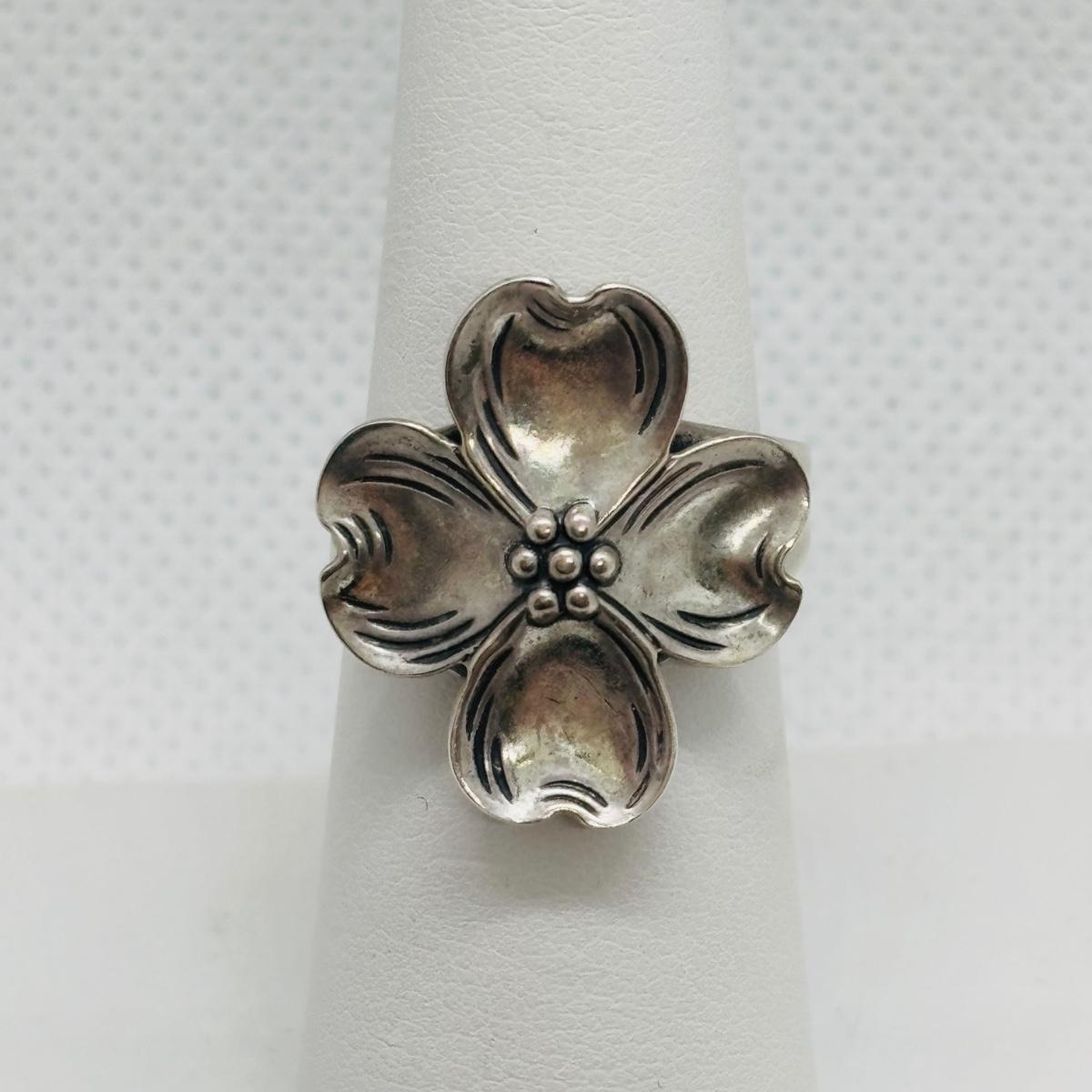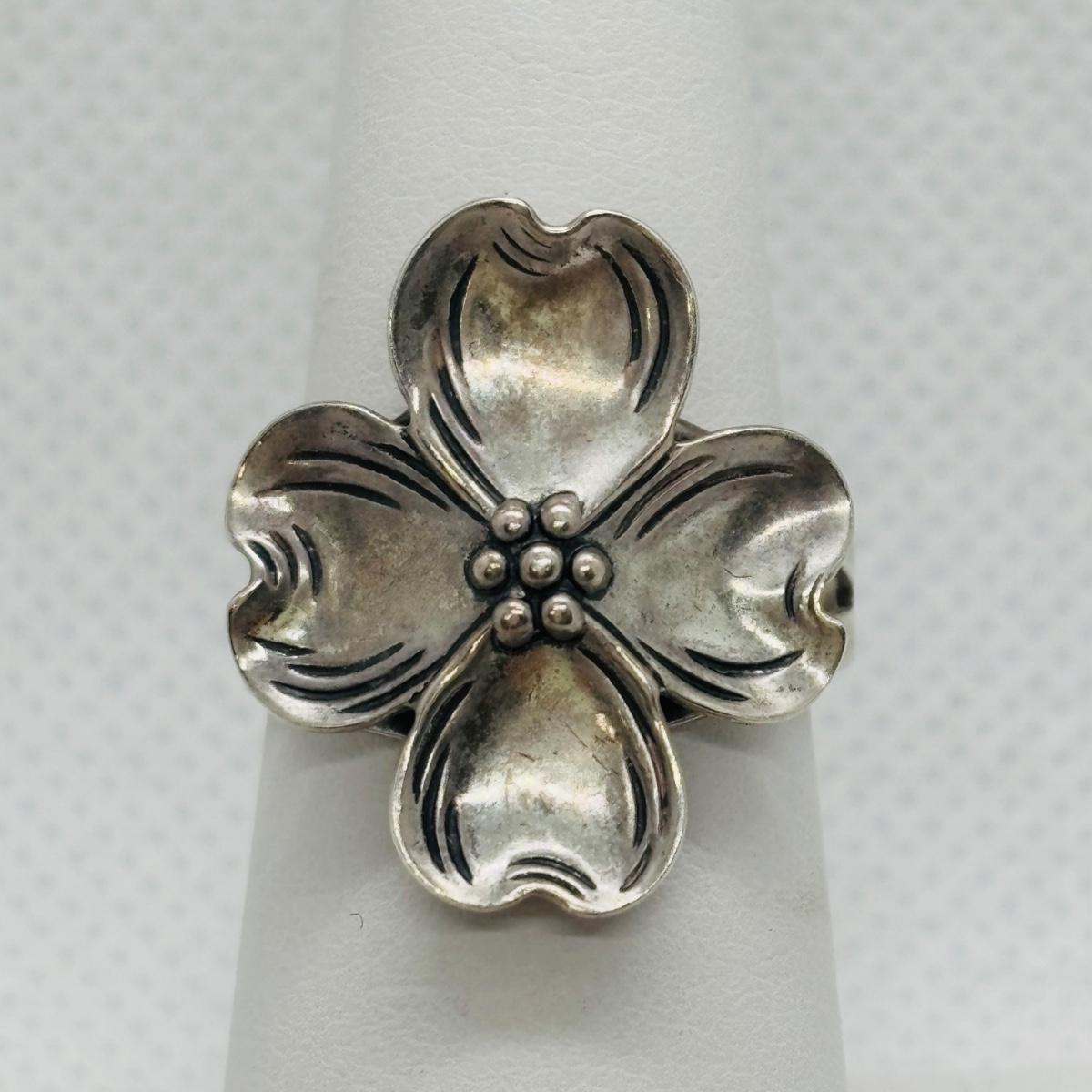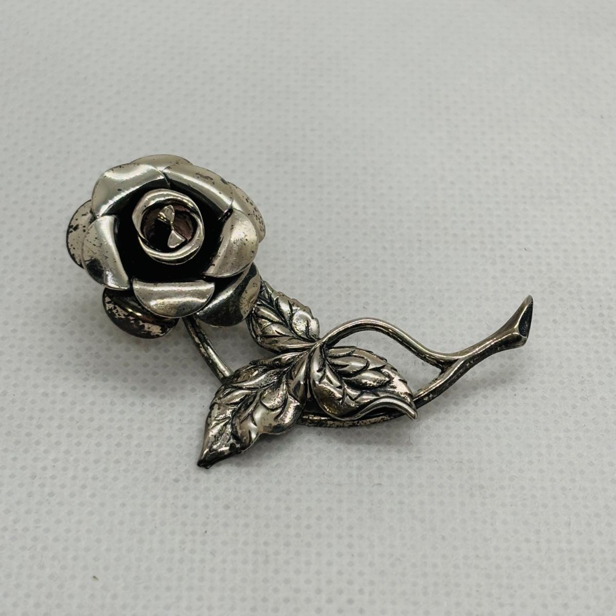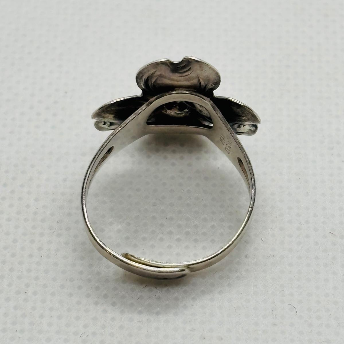 LOT 102: Vintage Beau Sterling Silver Brooches & Adjustable Flower Ring