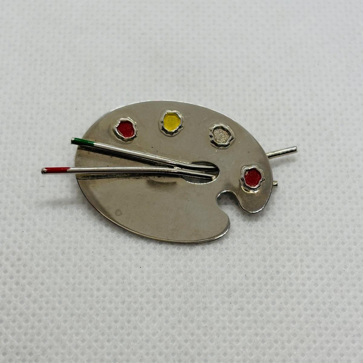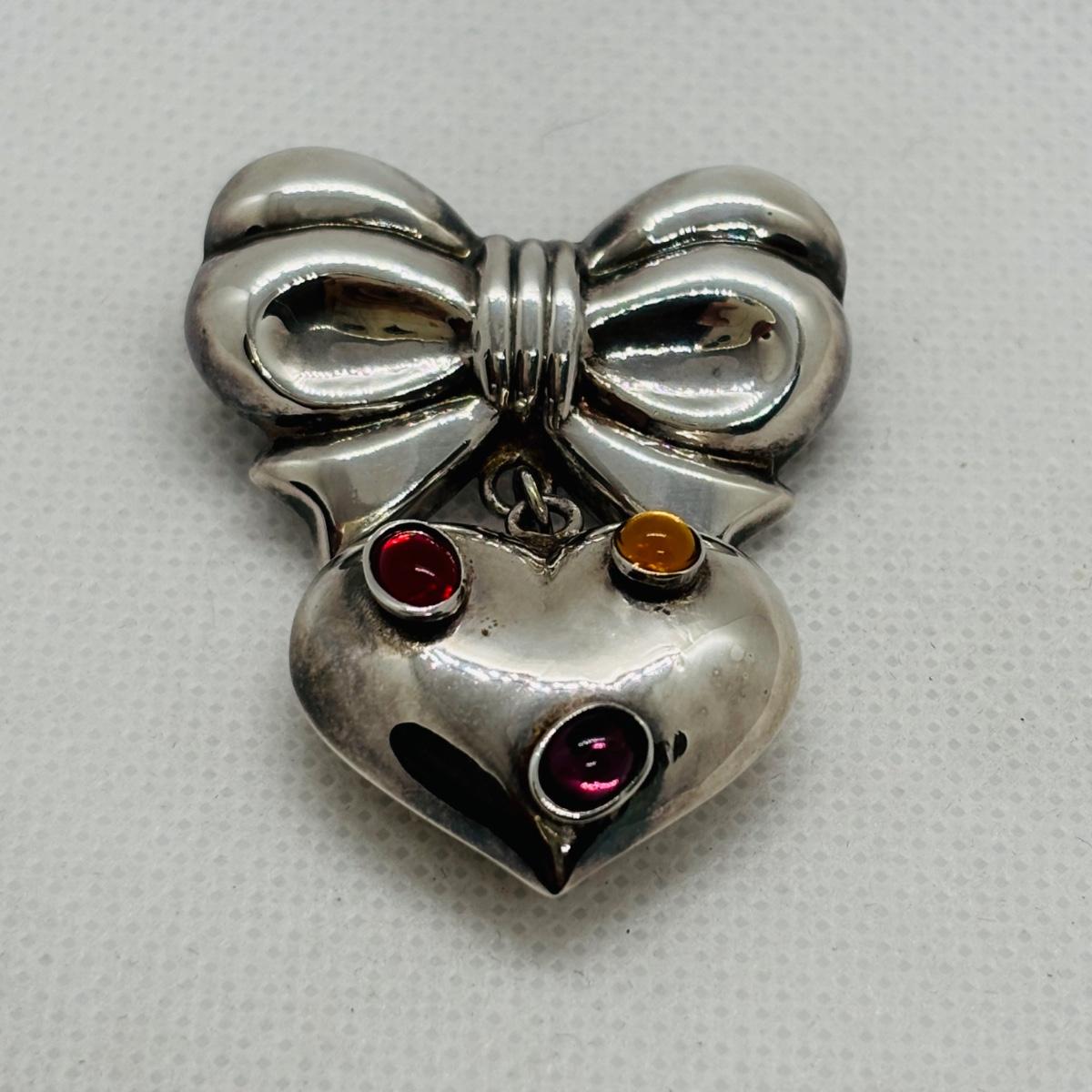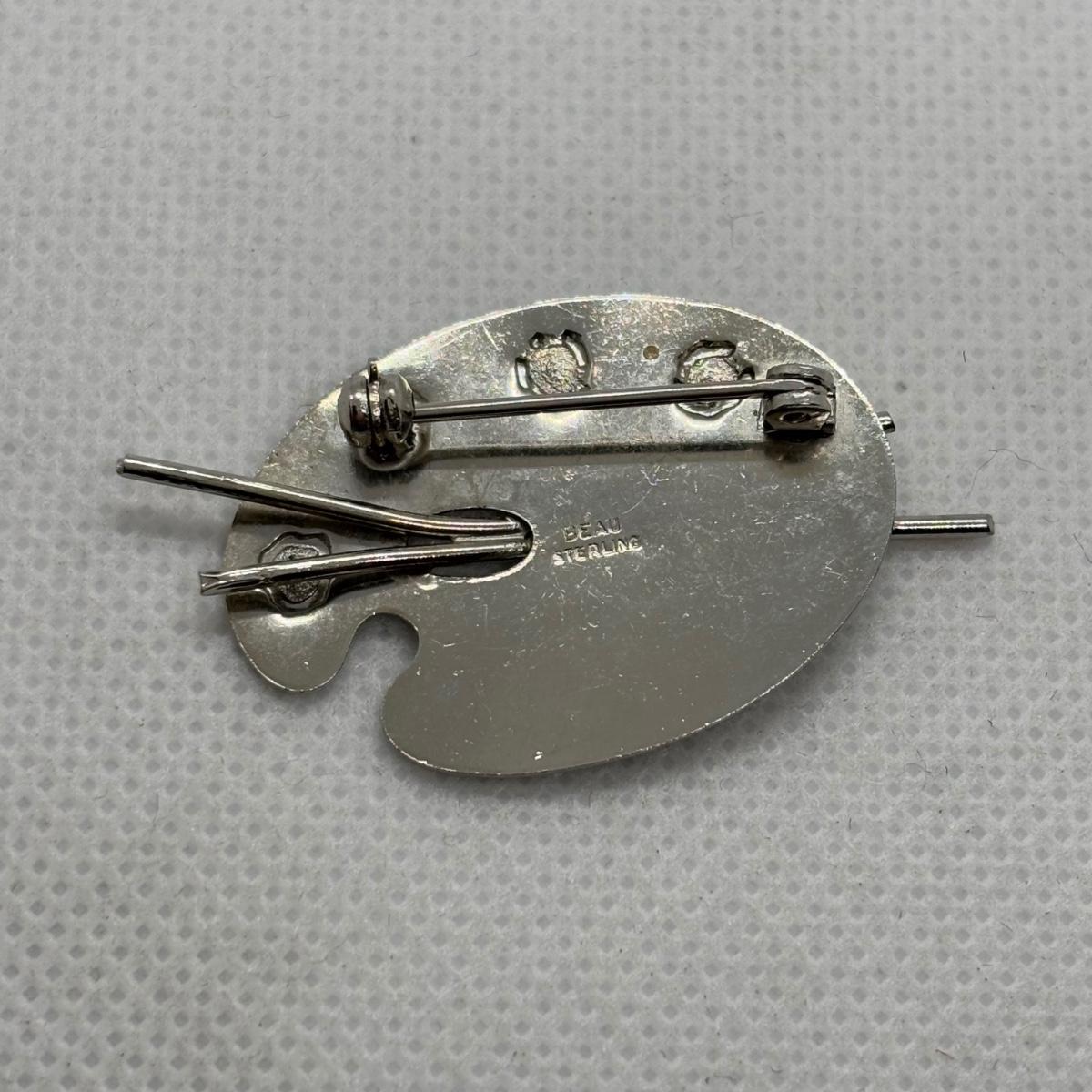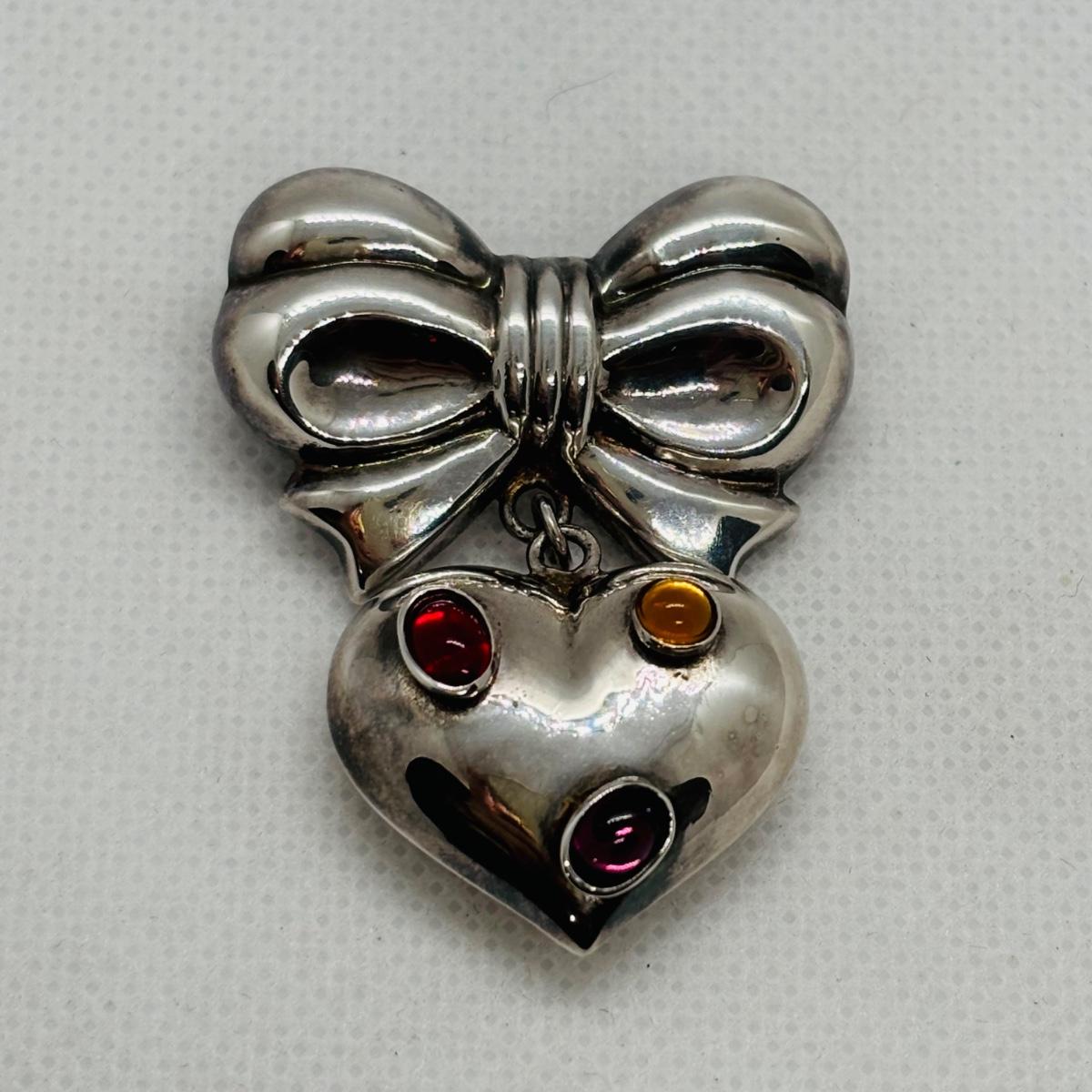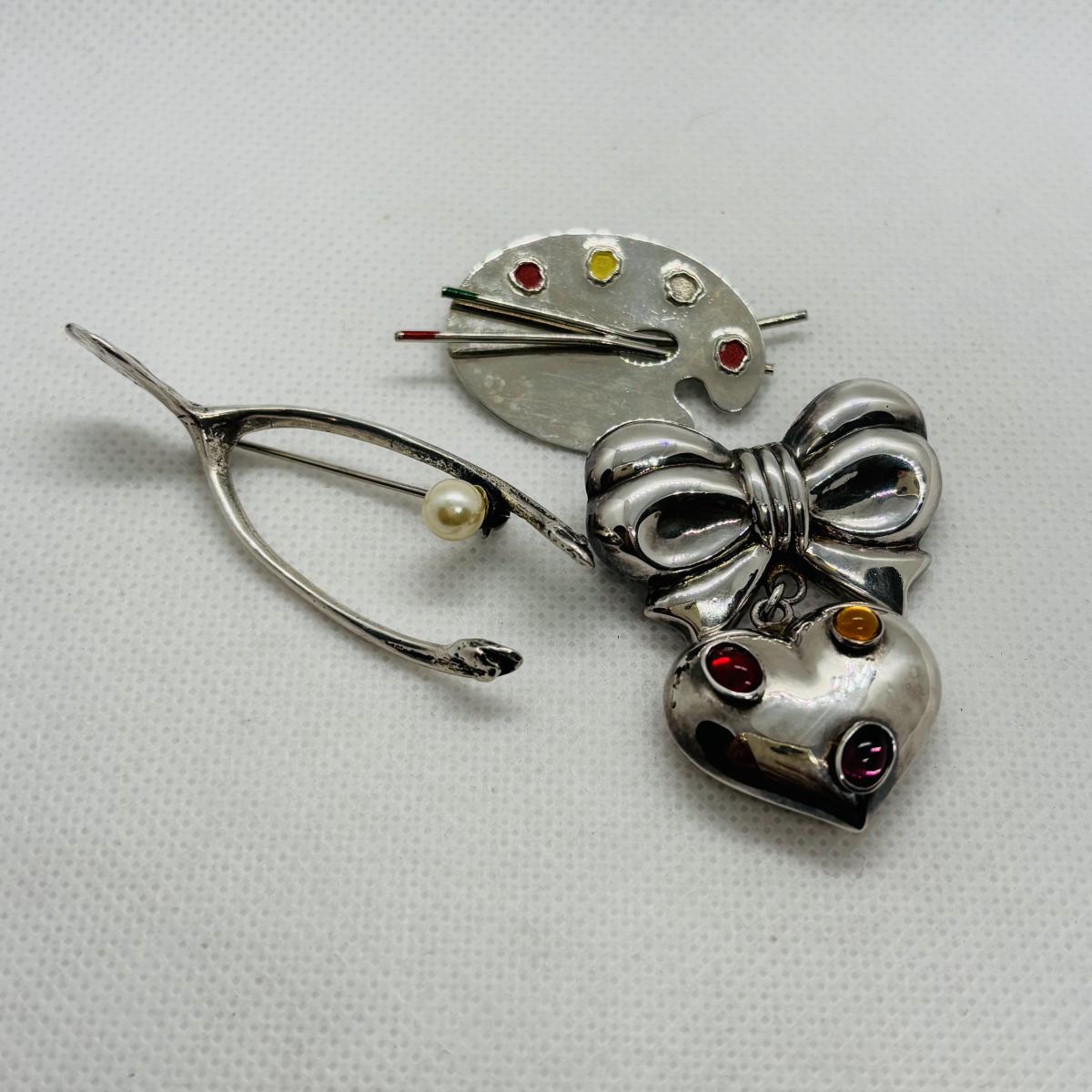 LOT 103: Sterling Silver Brooch Collection: Wishbone, Paint Palette & Bow/Heart w/Gems