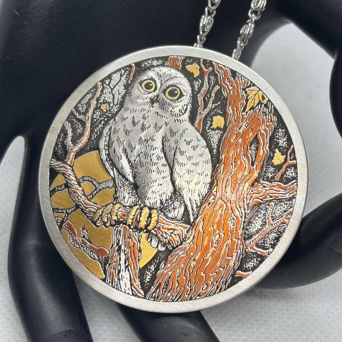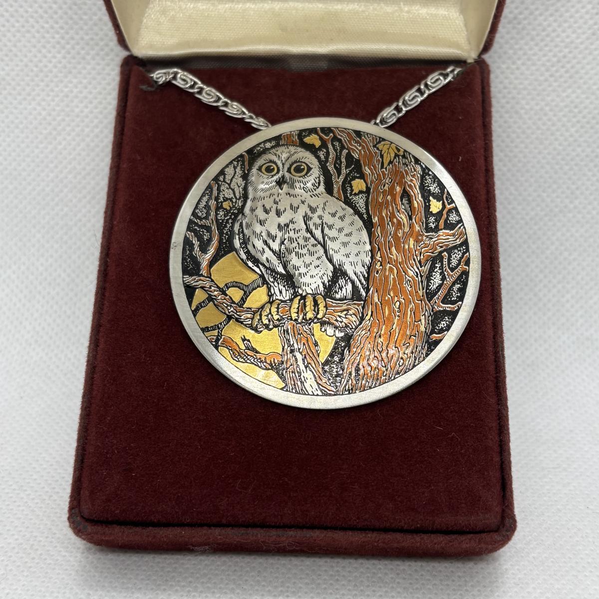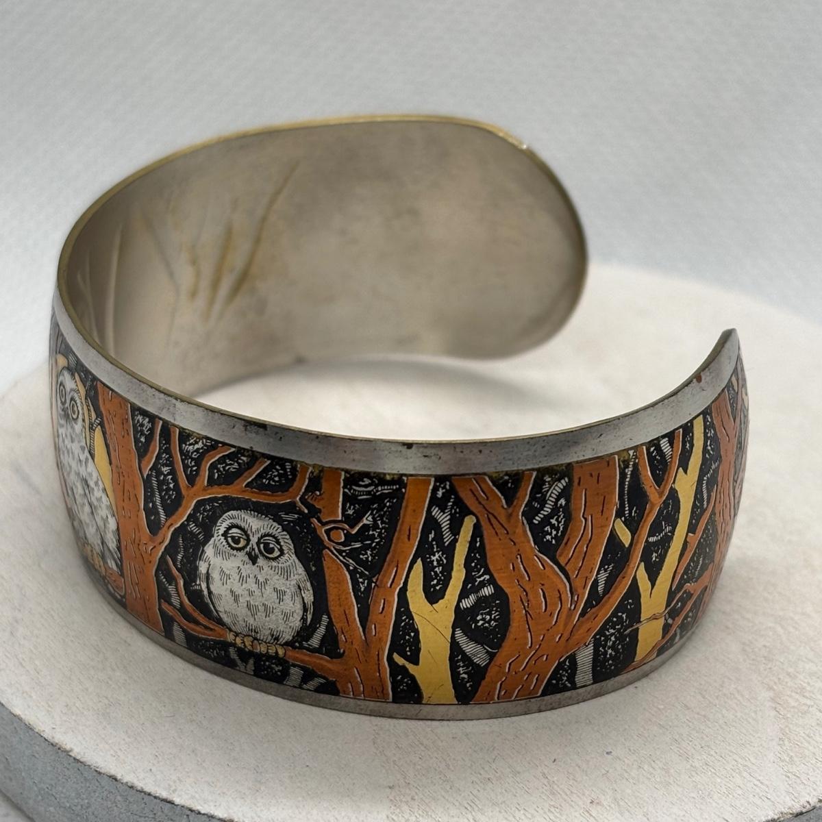 LOT 106: Reed & Barton Damascene Jewelry Collection: Owl Pendant w/Matching Cuff Bracelet
