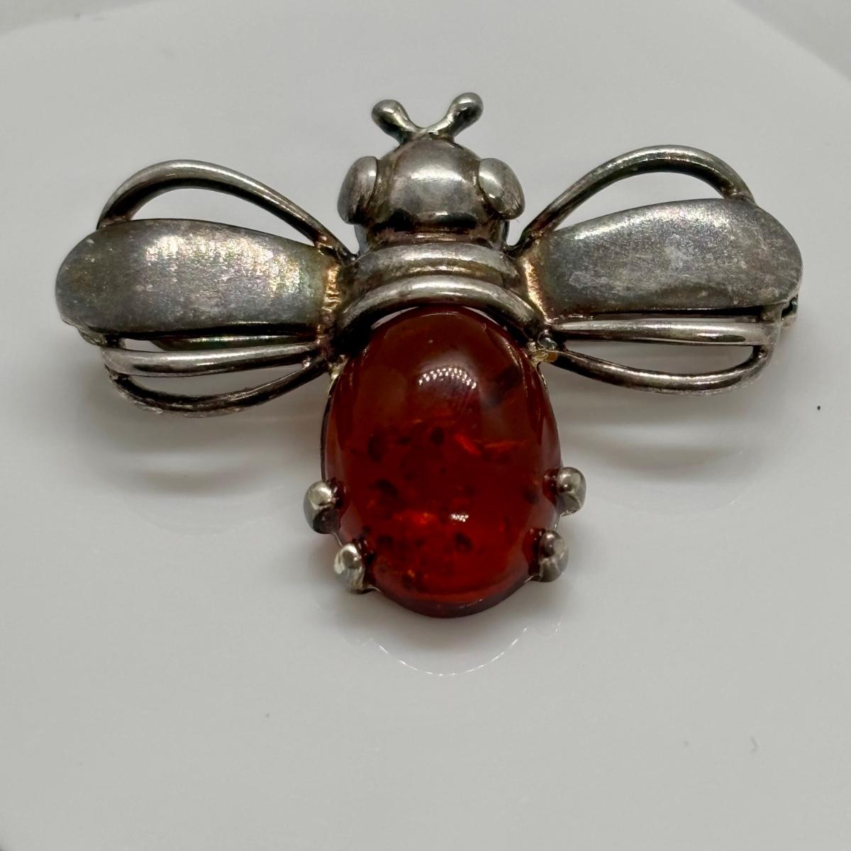 LOT 271: Amber & Sterling Silver Collection: Valerio Pin, bumble Bee Pin & Post Earrings