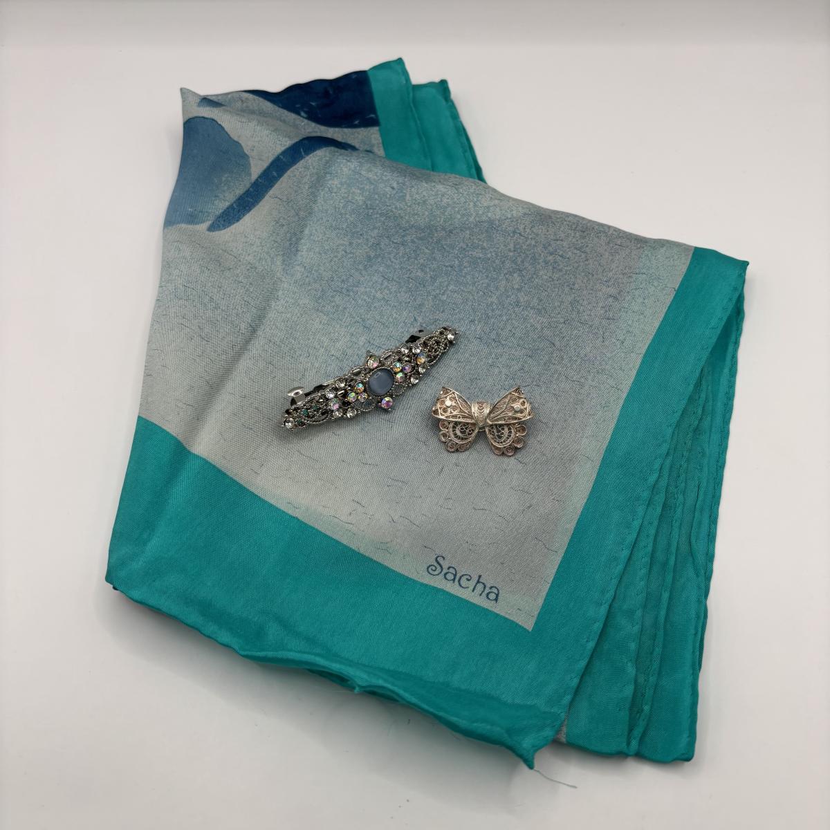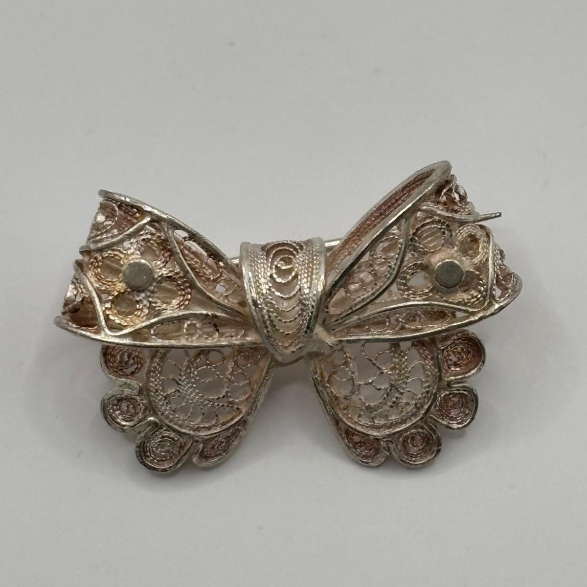 LOT 275 Vintage Filigree Bow 800 Brooch, Filigree & Rhinestone Barrette, Sacha Scarf