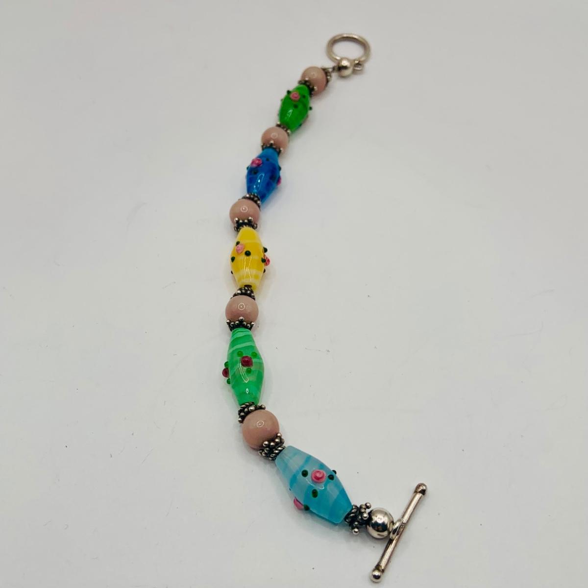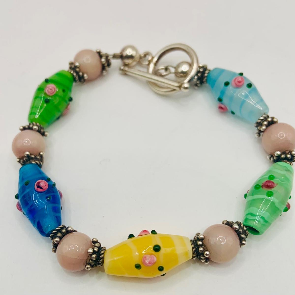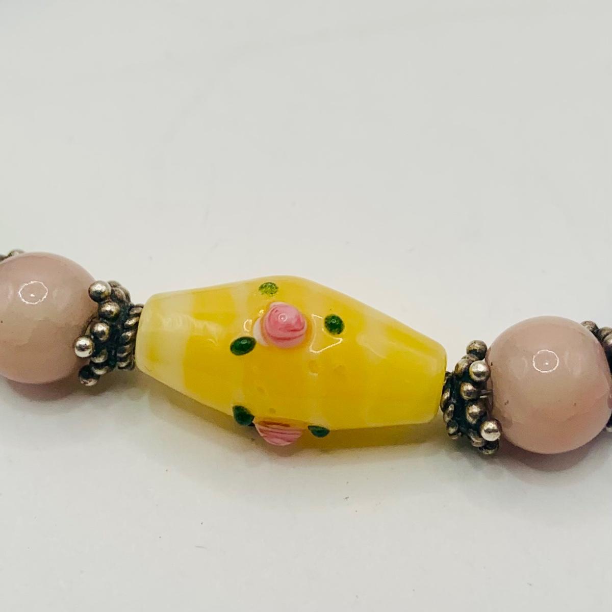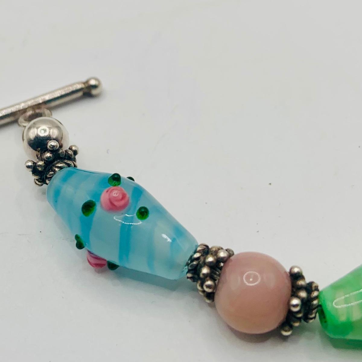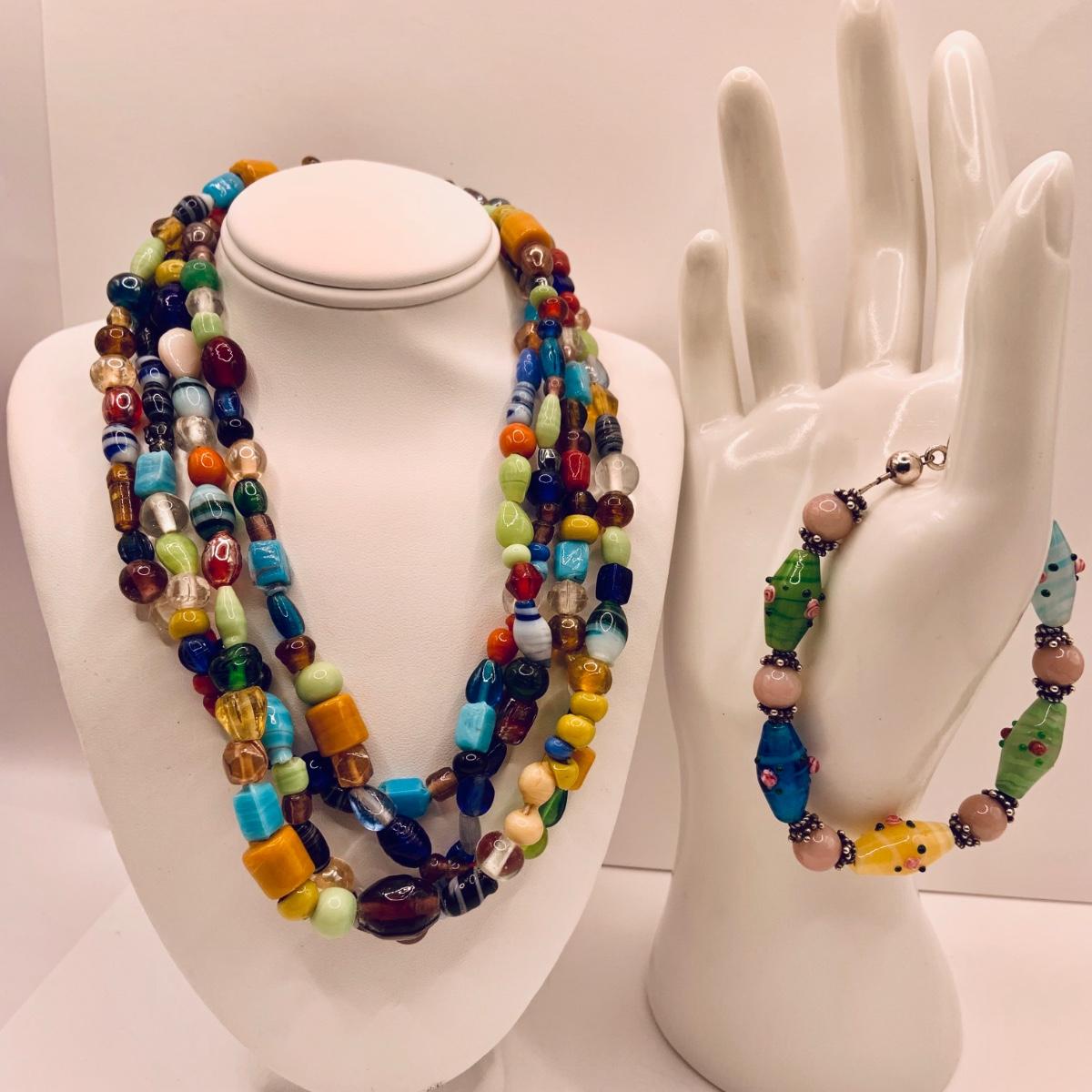 LOT:174: Marano Lamp Work Venitran Art Glass Bracelet and 60" Art Glass Bead Necklace