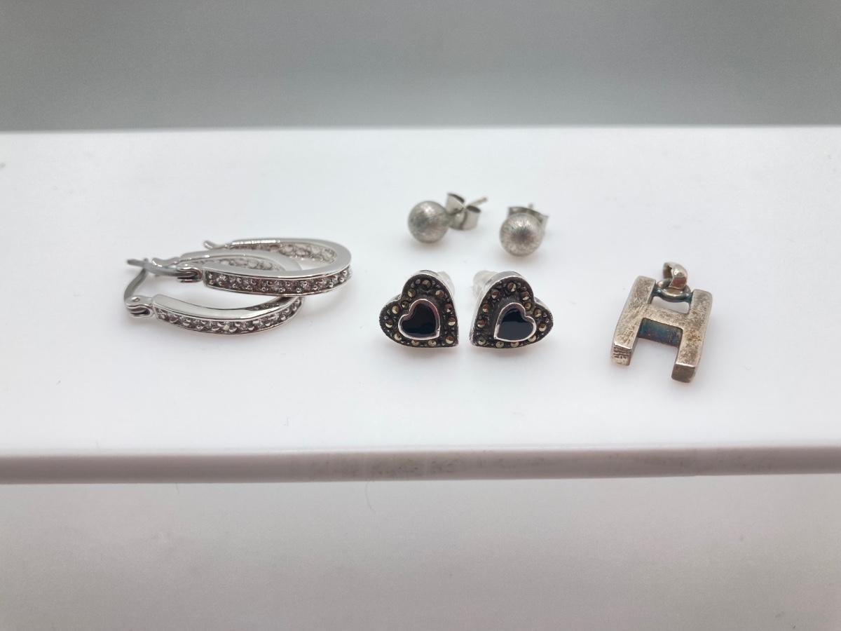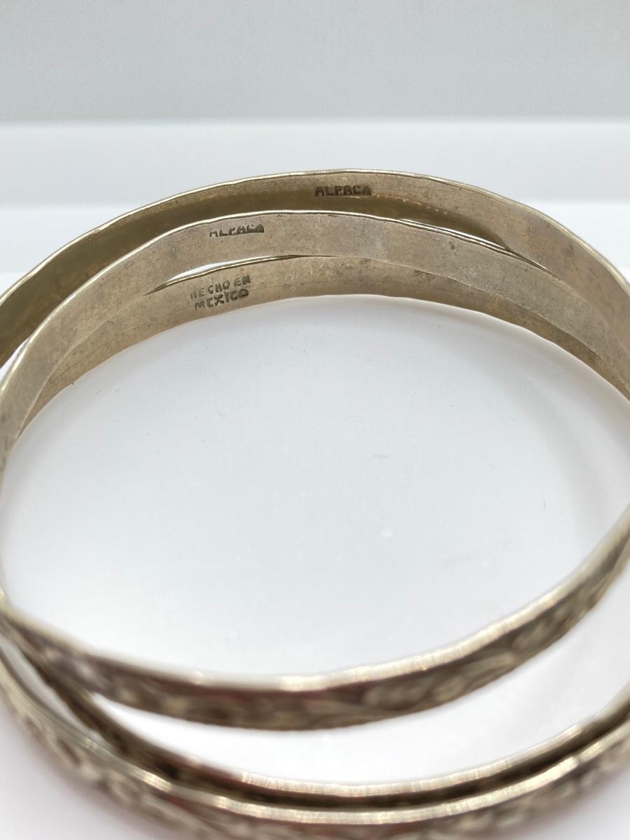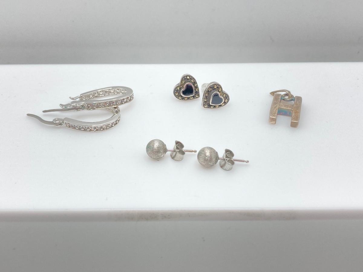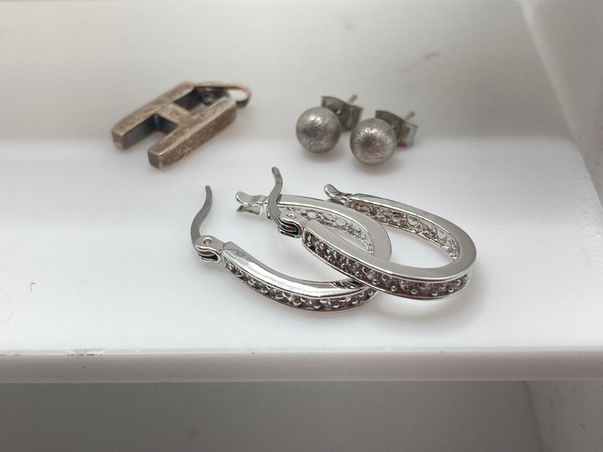 LOT 193J: Sterling / Silver Tone Jewelry Collection - Fossil Watch, Alpaca Mexico Bangle Bracelets, Earrings, Mother of Pearl Earrings and More