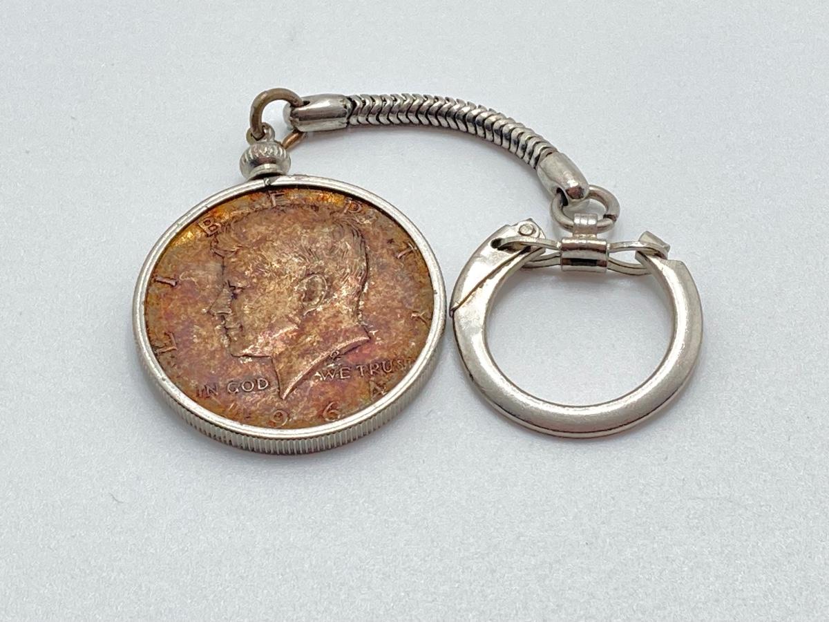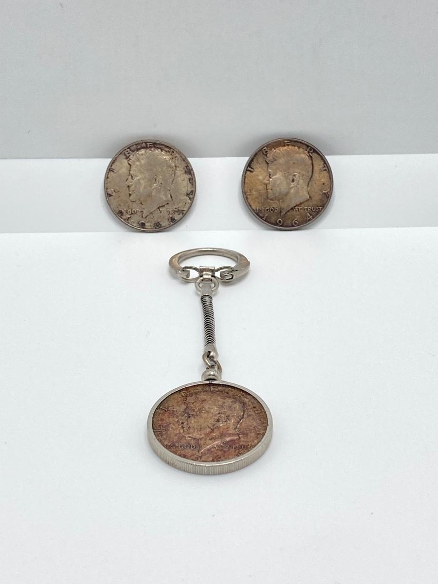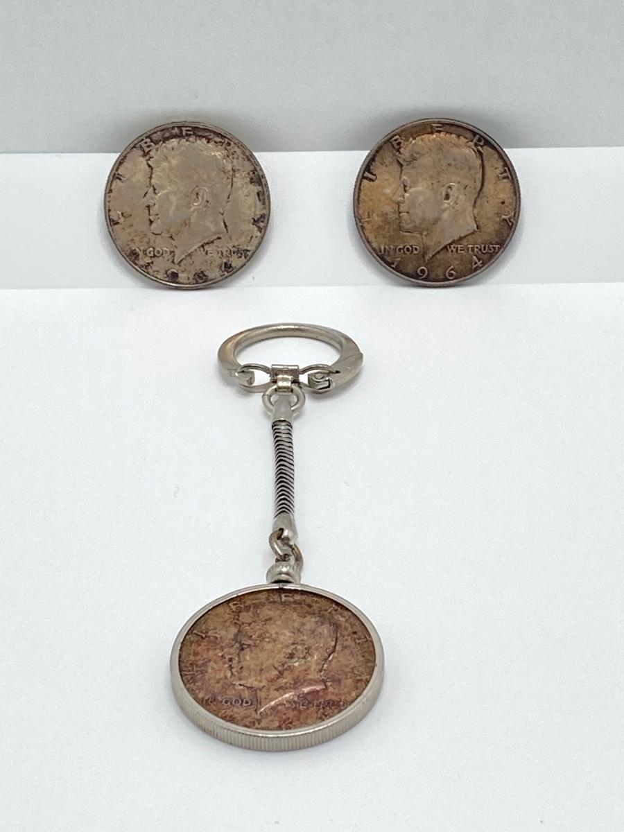 Three - 1964 Kennedy Half Dollar Coins (One in Key Chain Bezel)