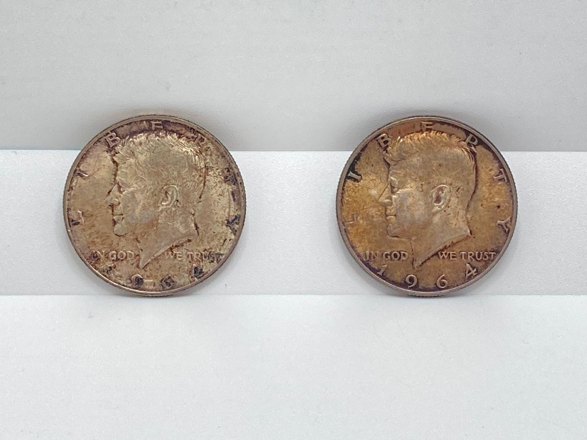 LOT 201J: Three 1964 US Liberty Kennedy Half Dollar Silver Coins
