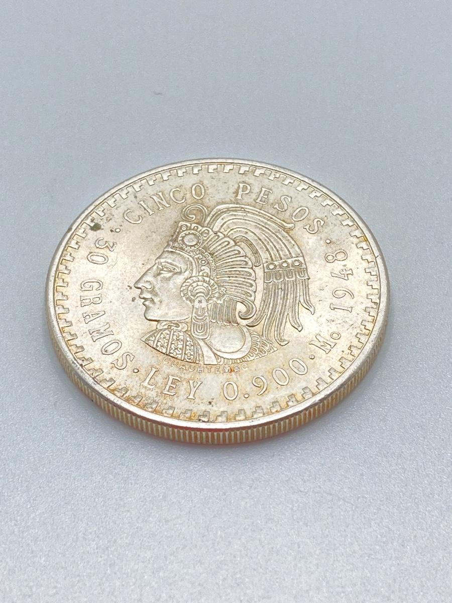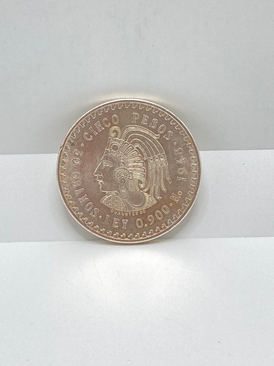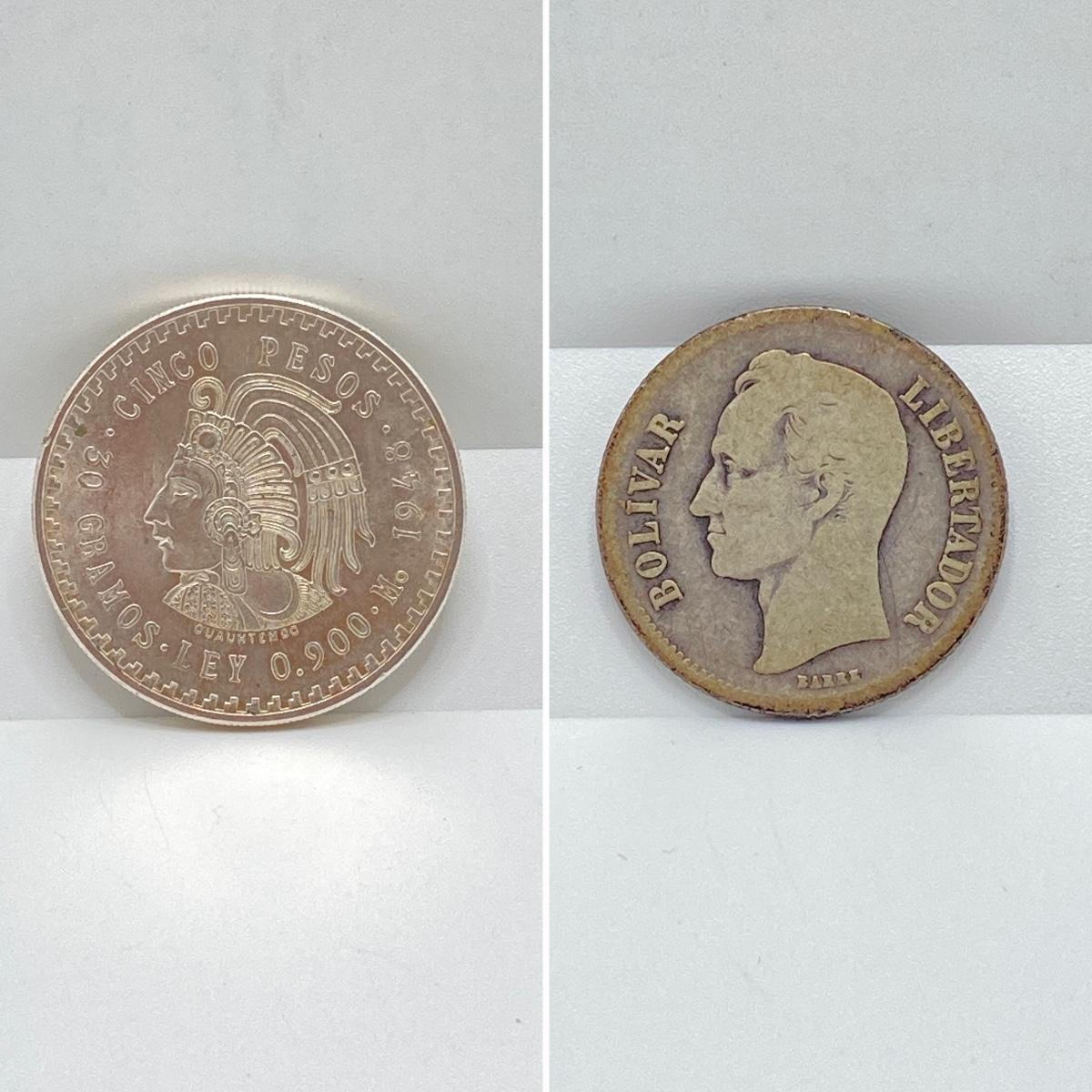 LOT 203J: Silver Coins - 1948 Cinco (5) Pesos .900 Silver Coin and 1924 Bolivar Libertador