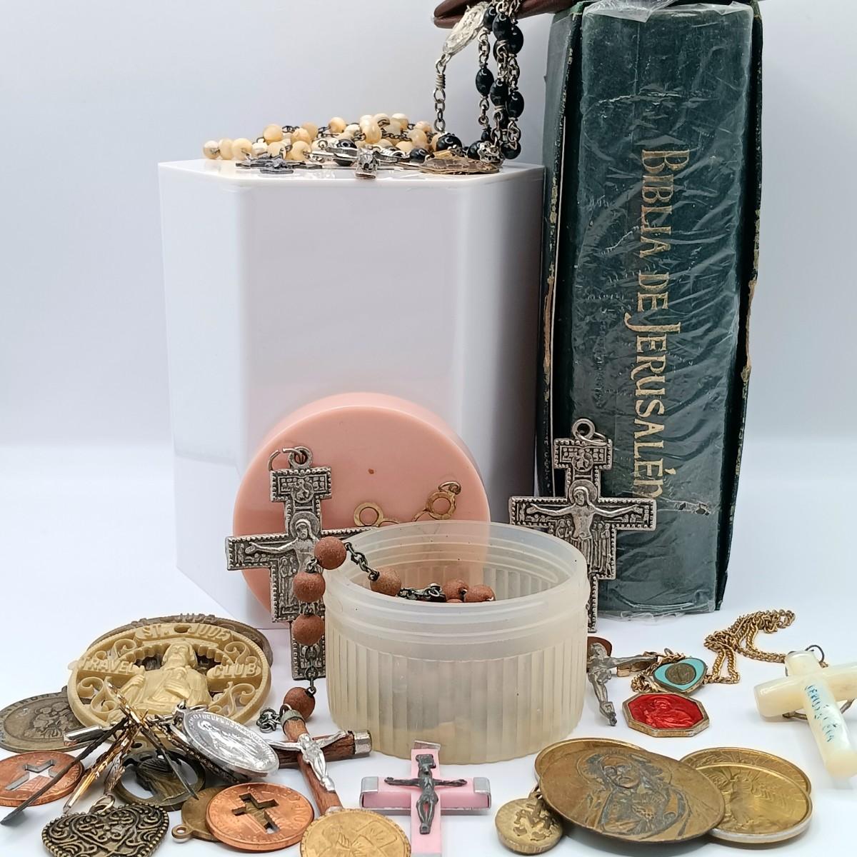 LOT 256: Biblia de Jerusalem 1972 with Religious Pendants, Rosaries & More