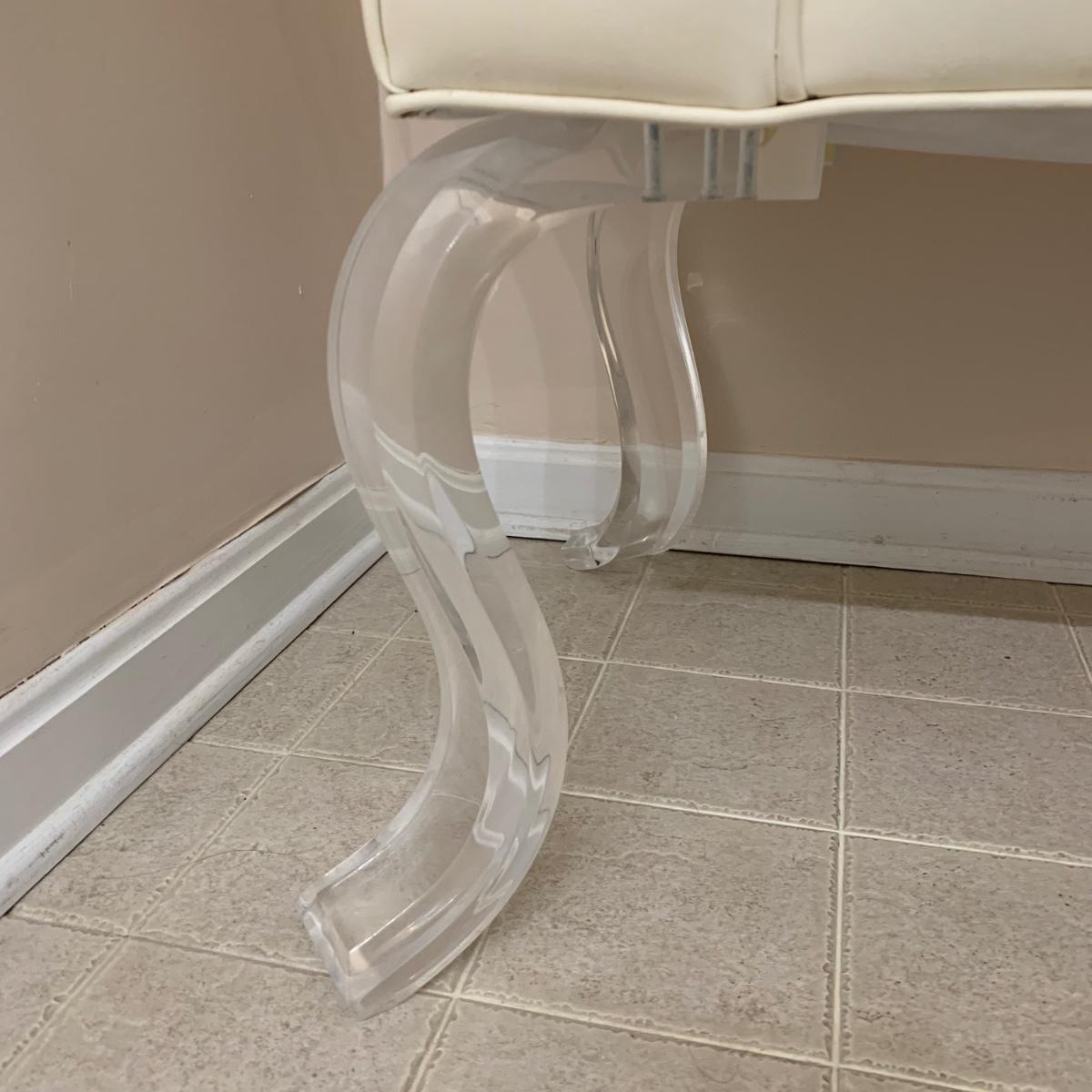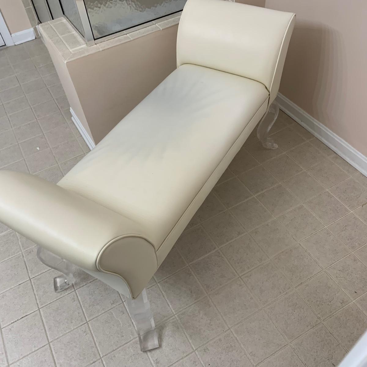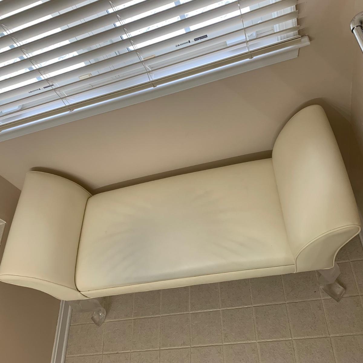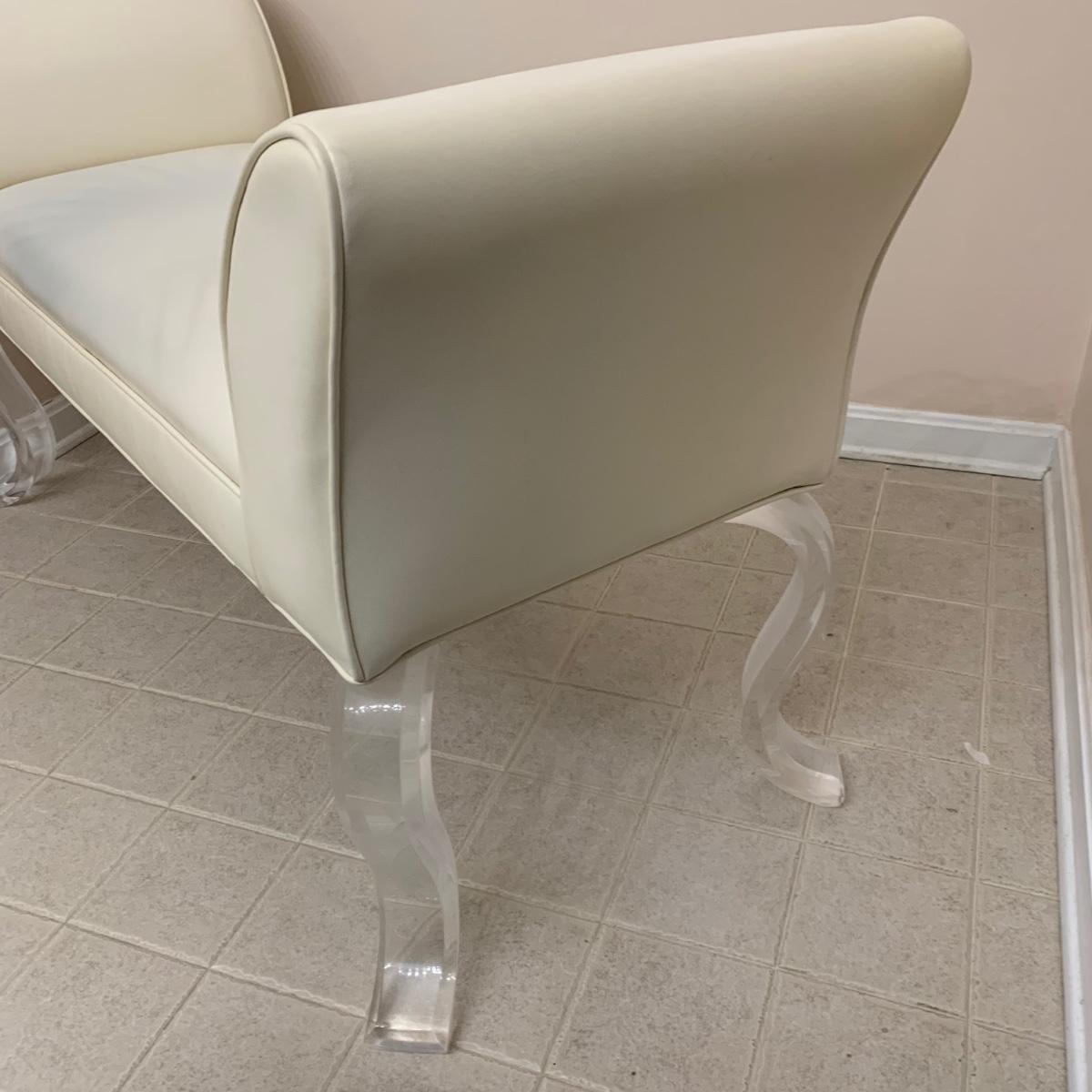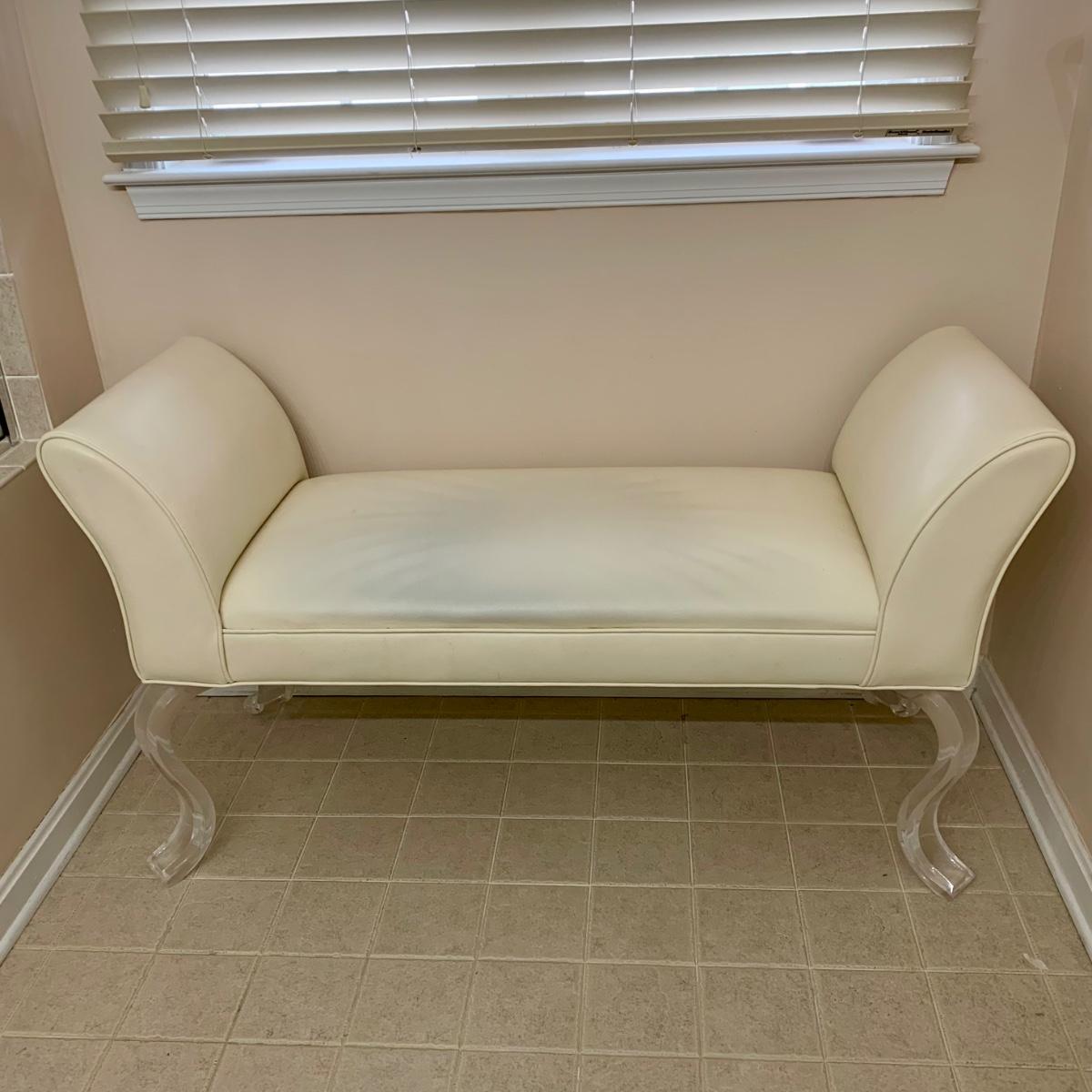LOT 11 F: Flared Arm Ivory Colored Bench w/ Curved Acrylic Legs