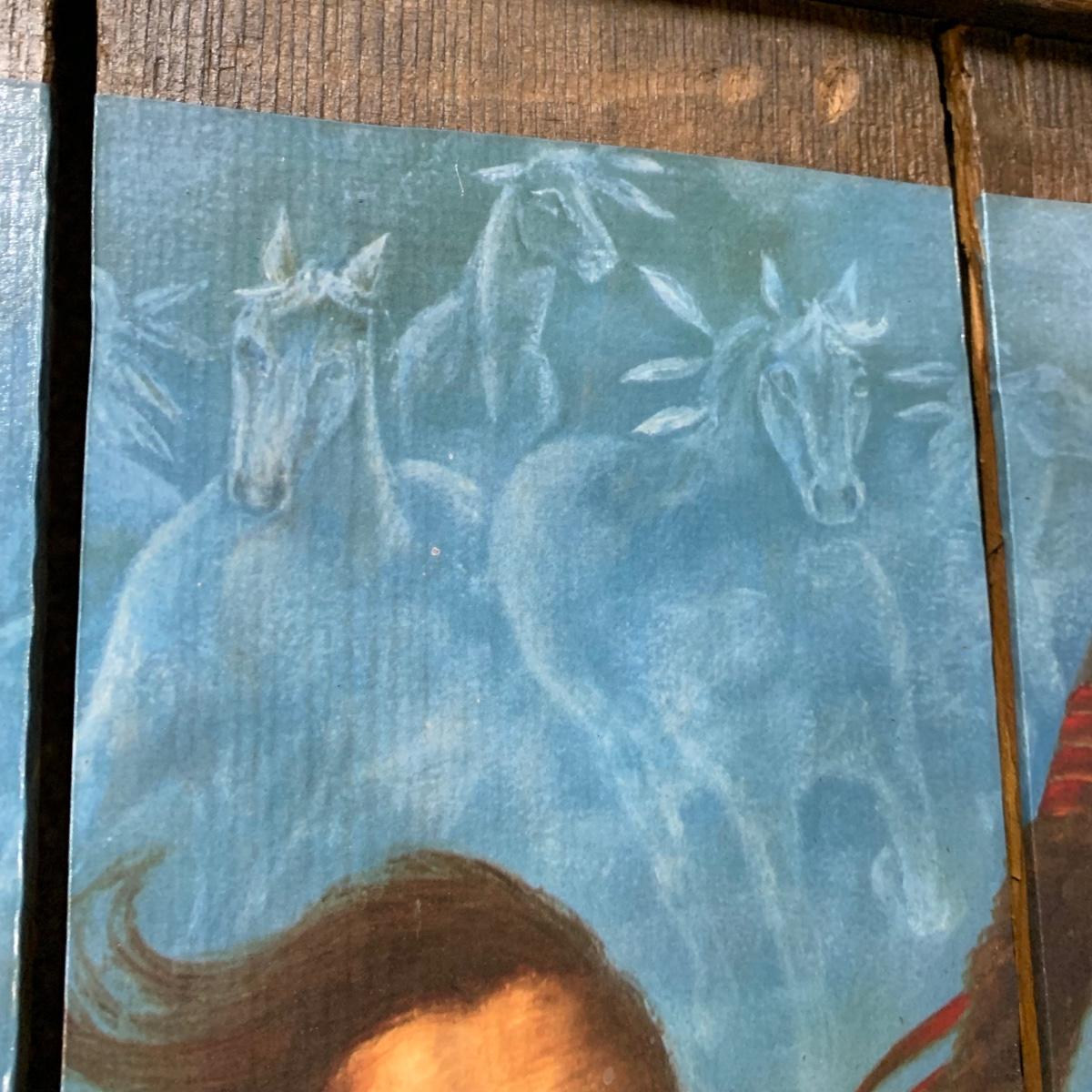 LOT 13 B: Native American w/ Spirit Horses Print on Pallet Wood