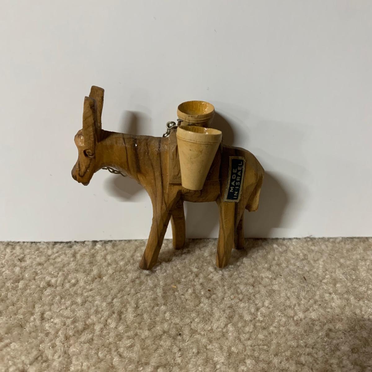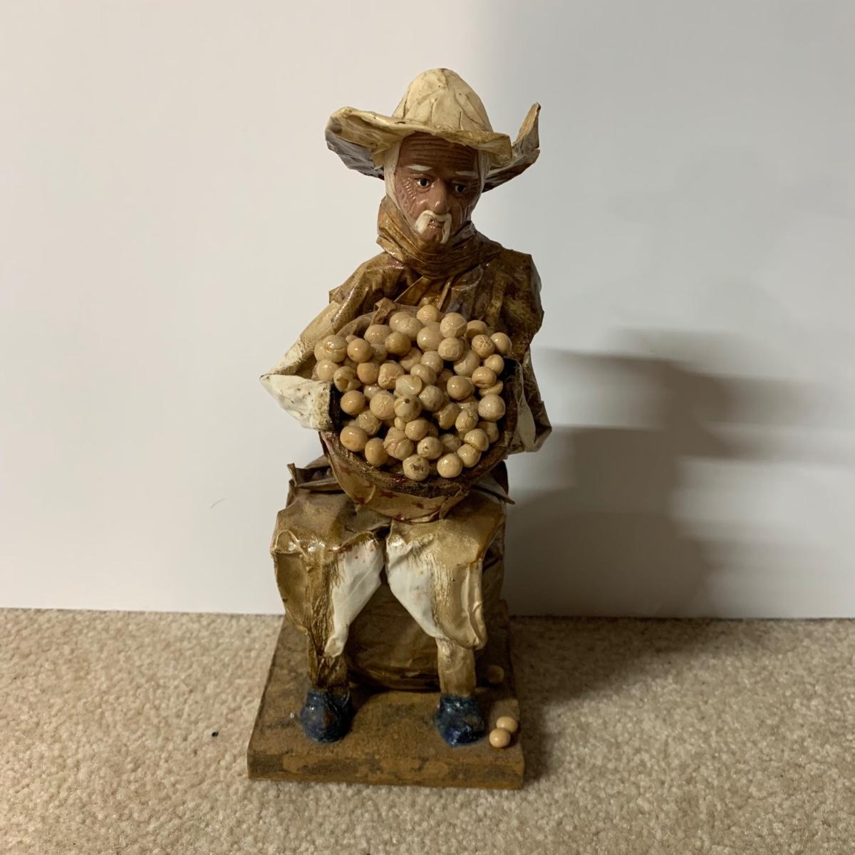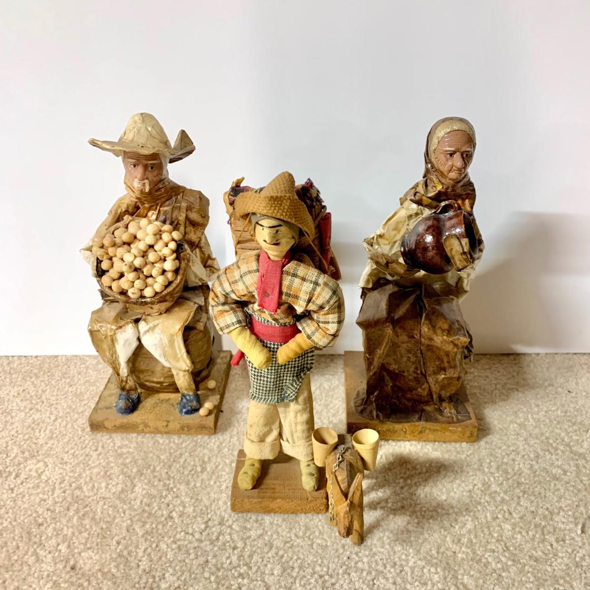 LOT 15 B: Paper Craft Mexican Folk Art Figures, Guatemalan Folk Art Figure, & Hand Carved Wooden Donkey made in Israel