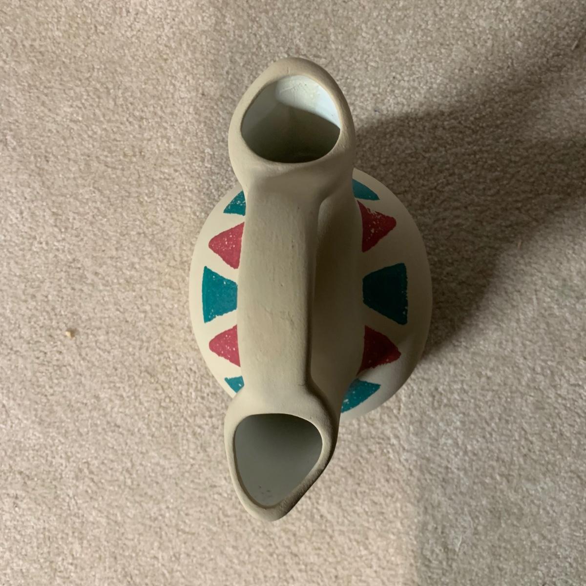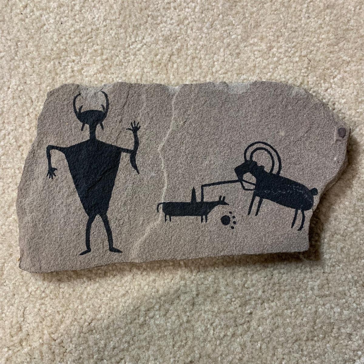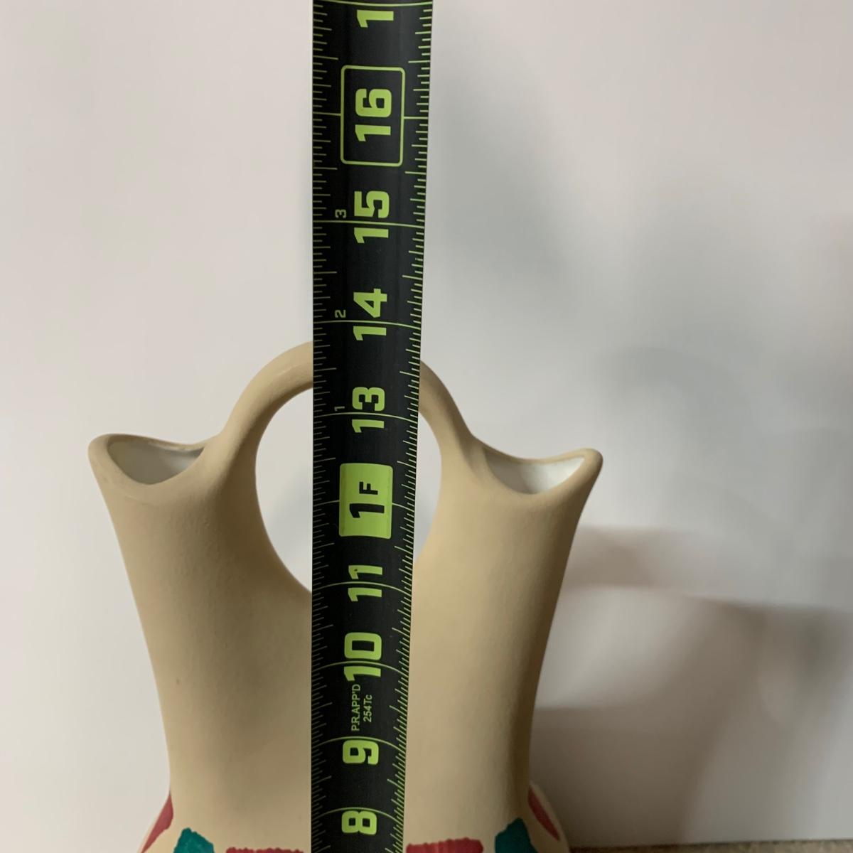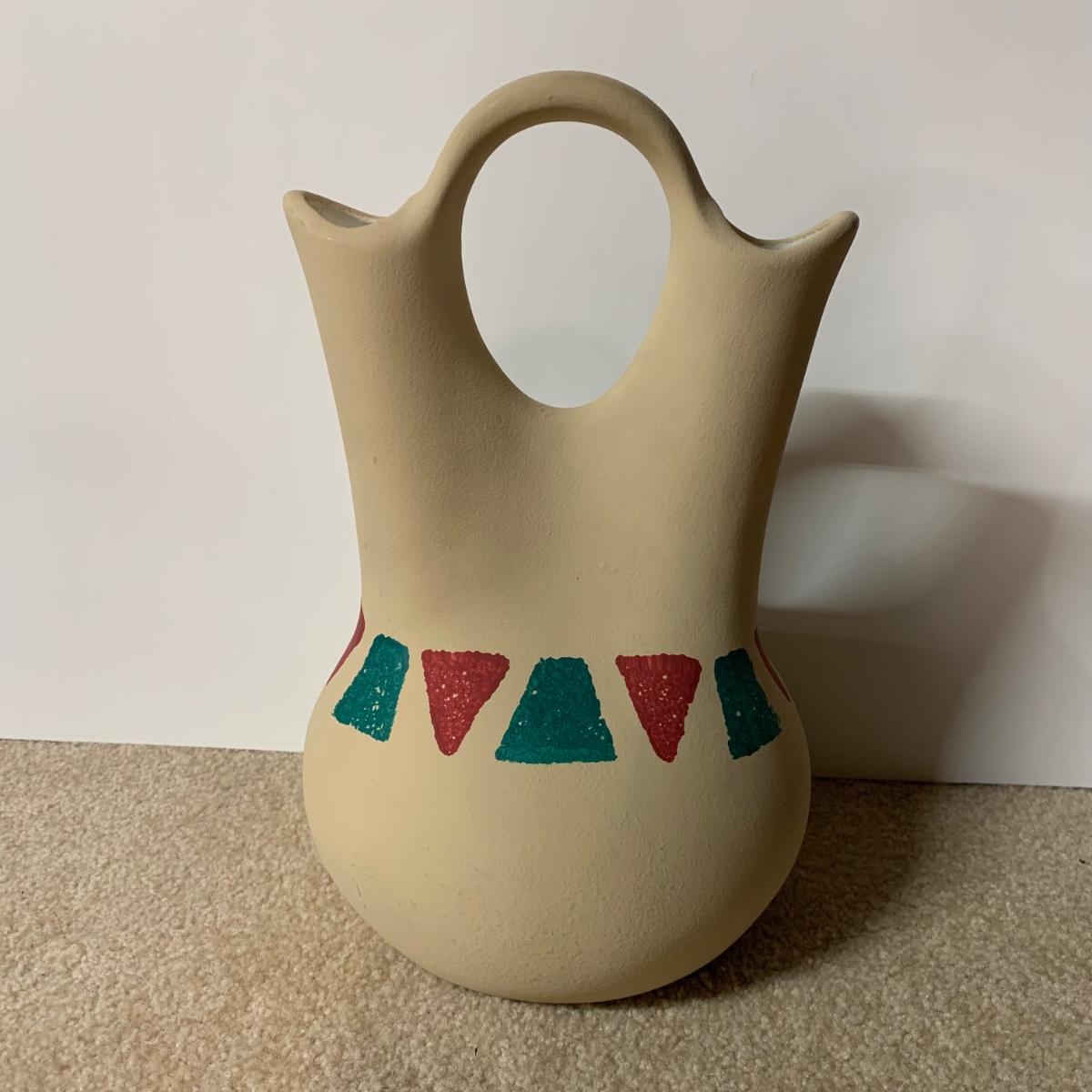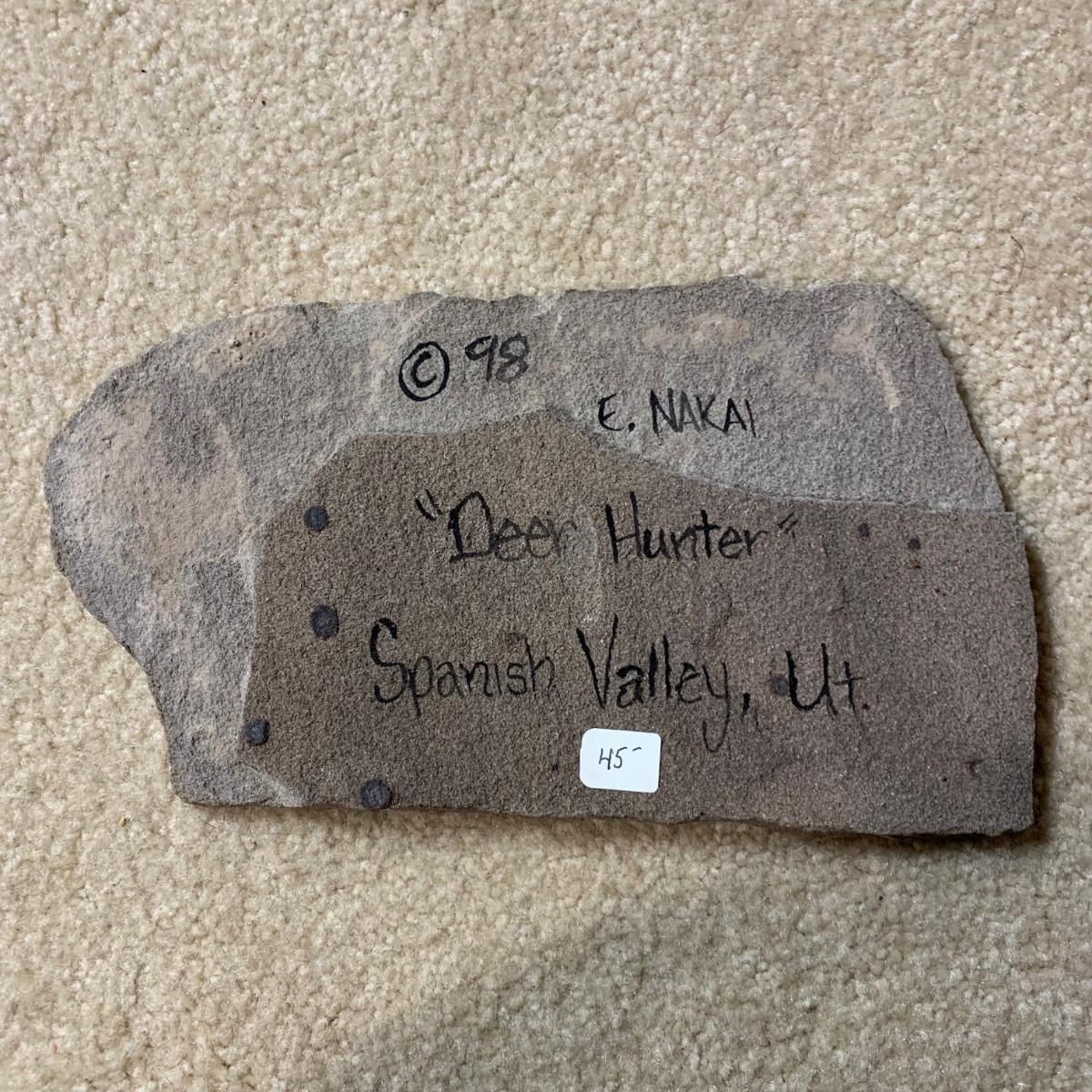 LOT 18 B: 1998 Painted Slate "Deer Hunter" by E. Nakai, "Alaskan Friends" Native Style Doll, & Native American Wedding Vase