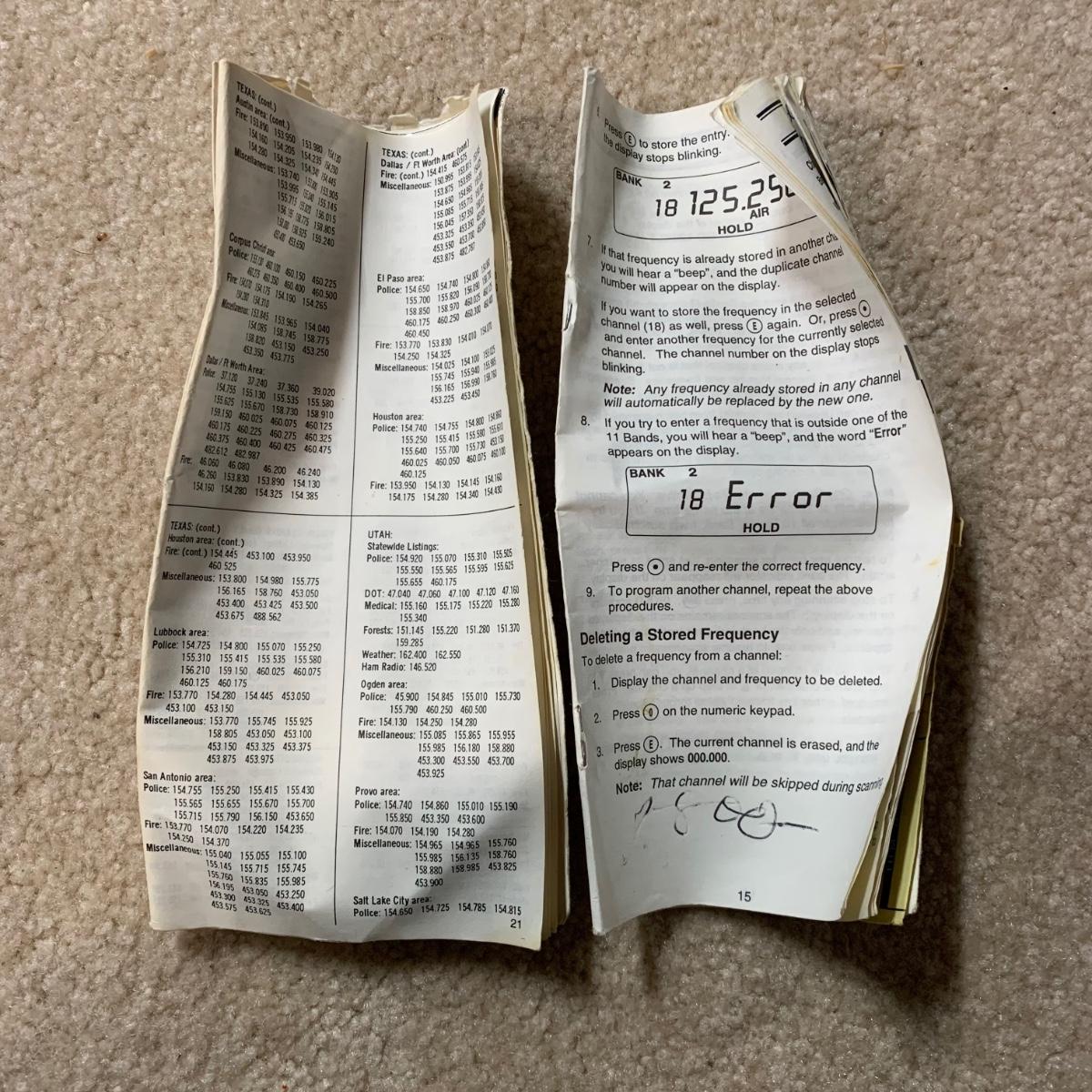 LOT 19 B: Uniden Bearcat Twin Turbo 100 Channel 11 Band Radio Scanner Model #BC 120XLT, 2 Motorola Talkabout Distance DPS Two-Way Radio's Model #P24SRV03G2AA, & More