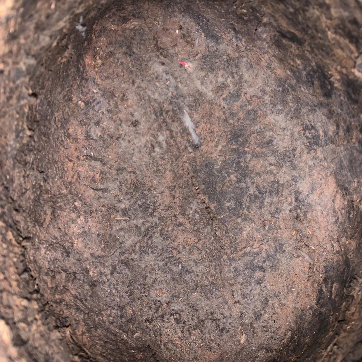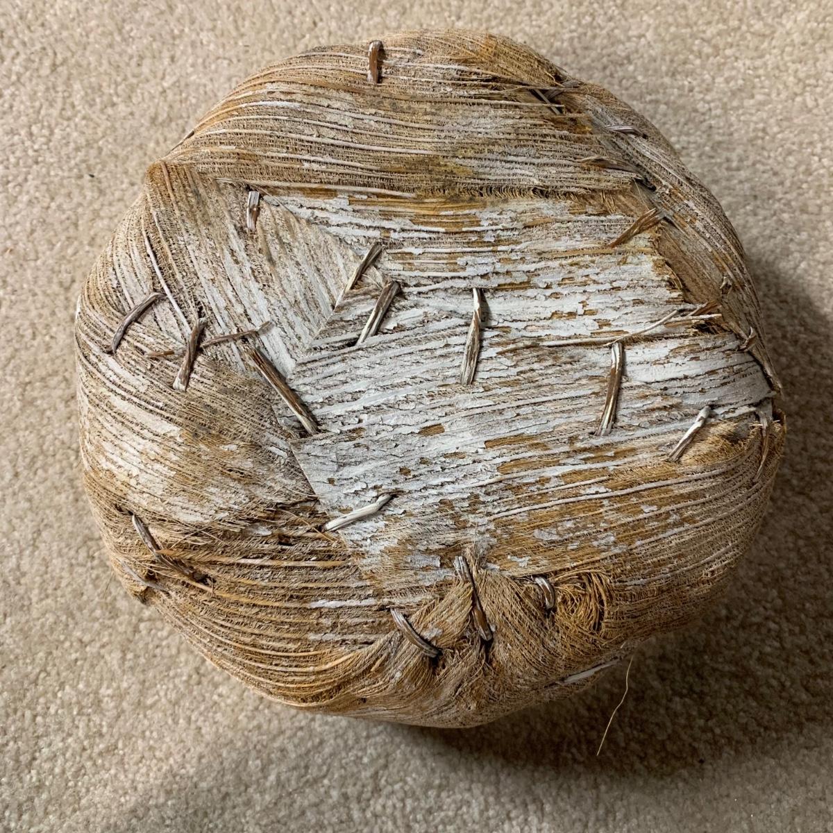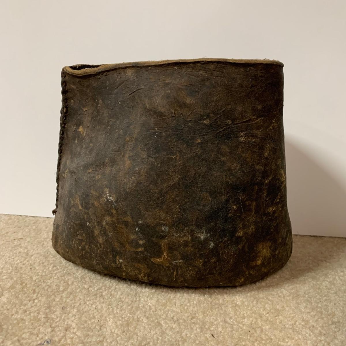 LOT 23 B: Vintage / Antique Gourd Drinking Jug, Woven Coconut Husk Basket, & Stitched Animal Skin Container