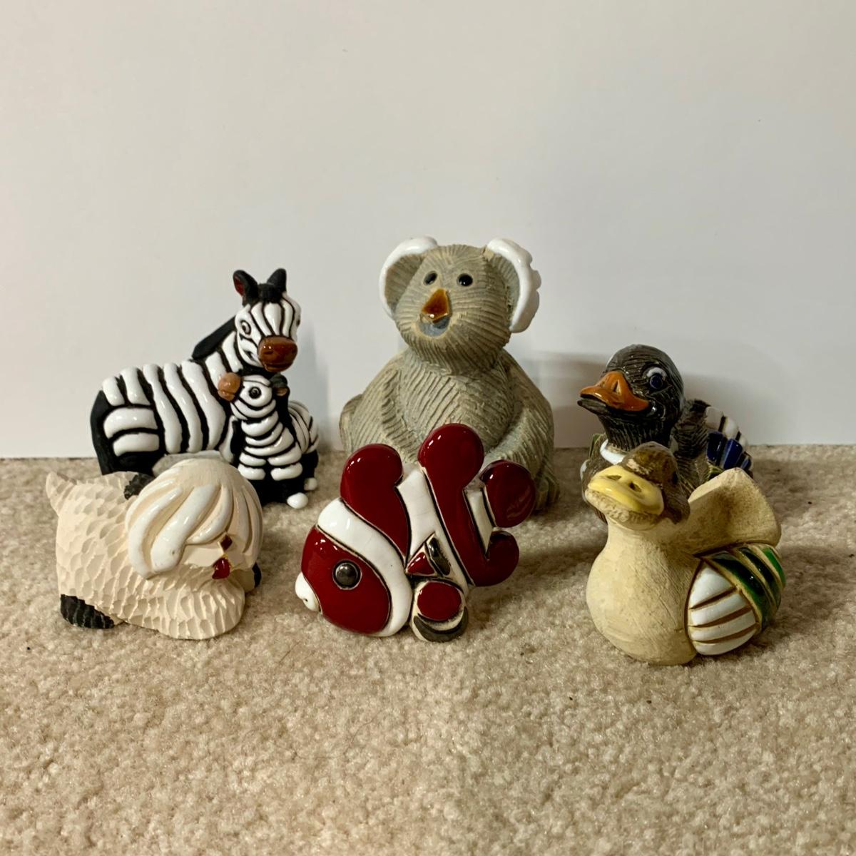 LOT 25 B: Little Guy Collection; Signed or Stamped Figures, Zebra, Koala, Ducks, Fish, & Dog