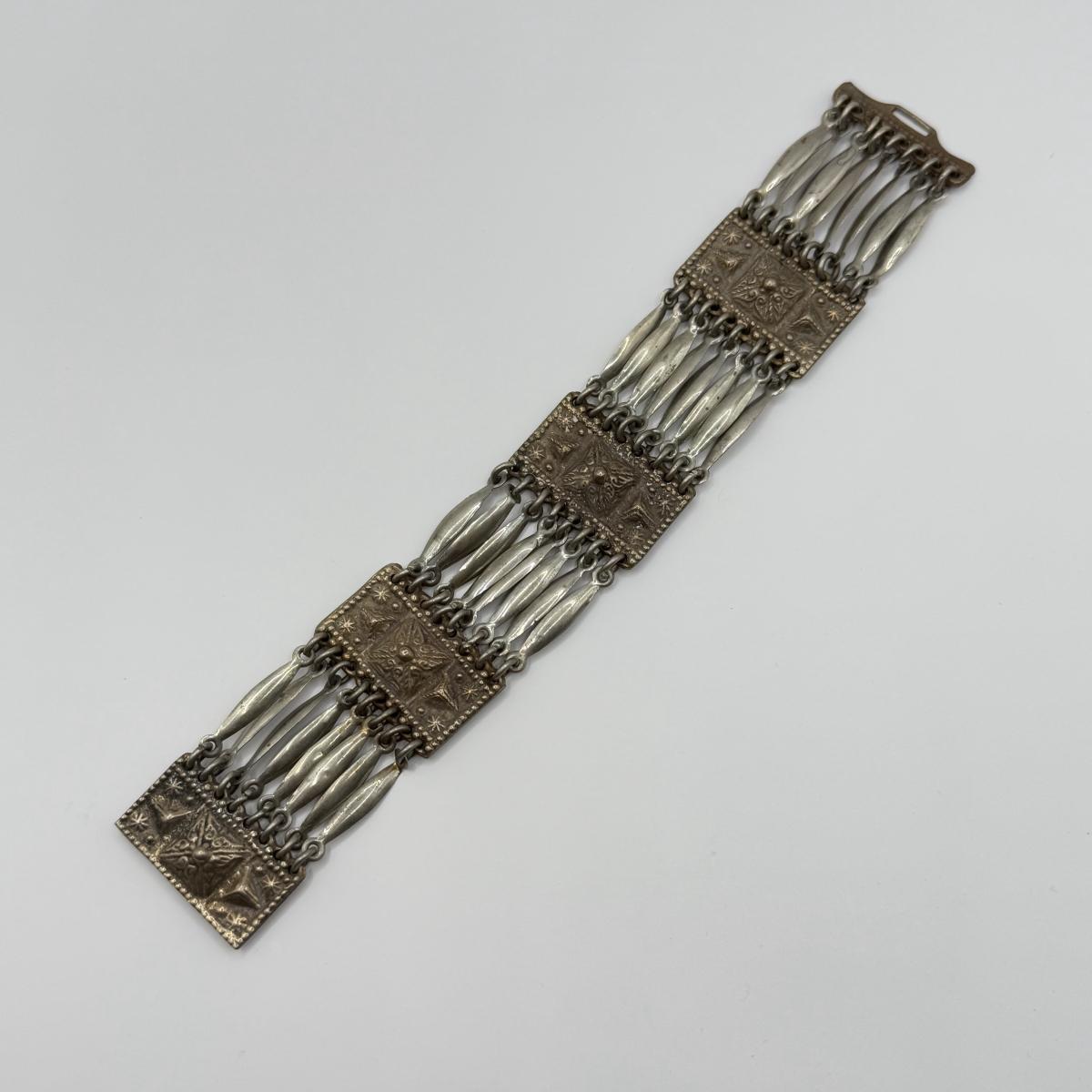 LOT 75J: Vintage Silver Mexico Segmented Cuff Bracelet (42.8g)