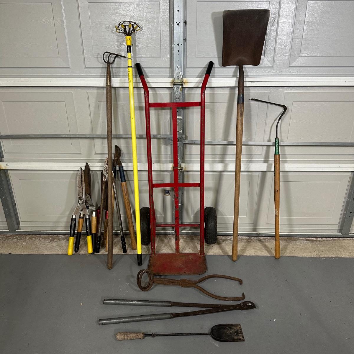 LOT 91G: Garden/House Tools, Hand Cart & More