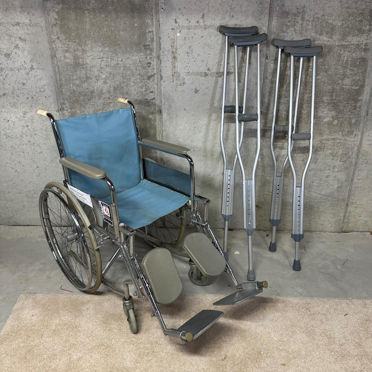 LOT 98B: Everest Jenning Wheelchair & 2 Sets Of Crutches