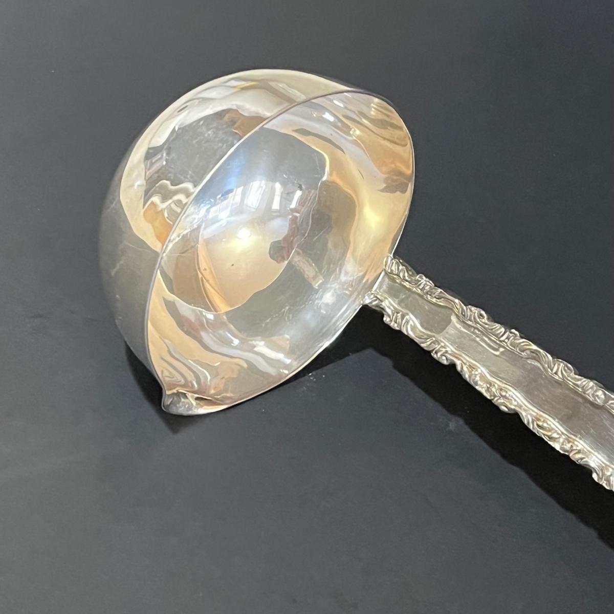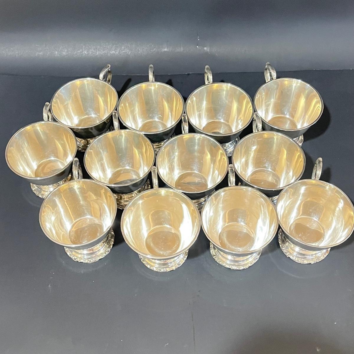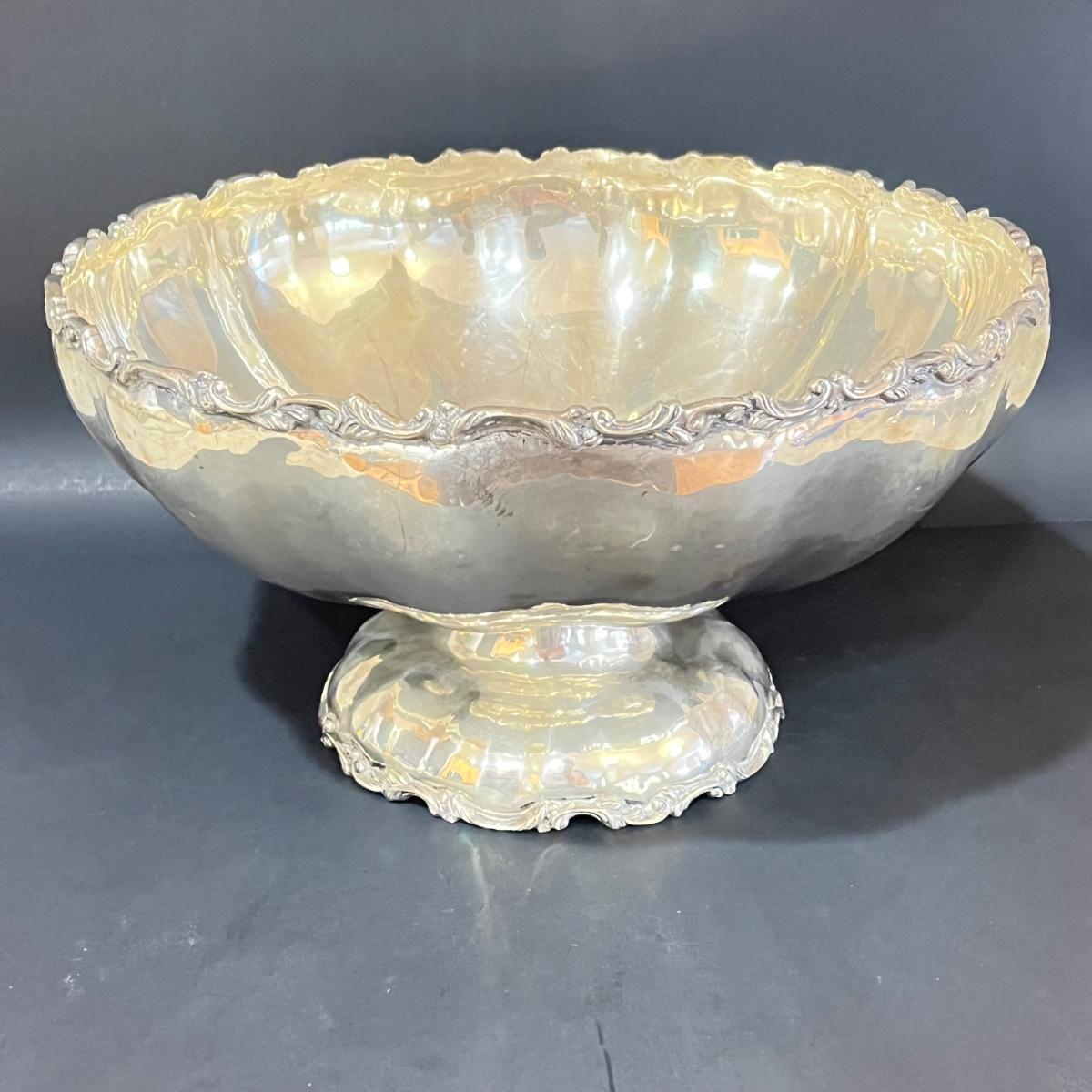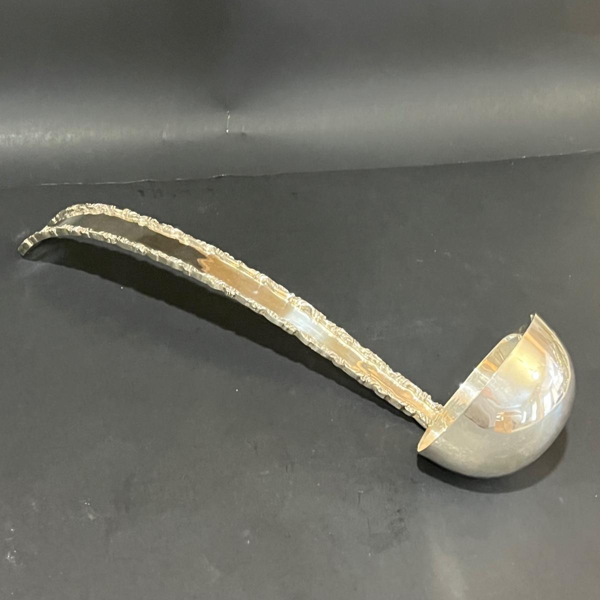 This set includes a large punch bowl and platter, along with a ladle and 12 cups and is a combined total of 7,794 grams of sterling silver.