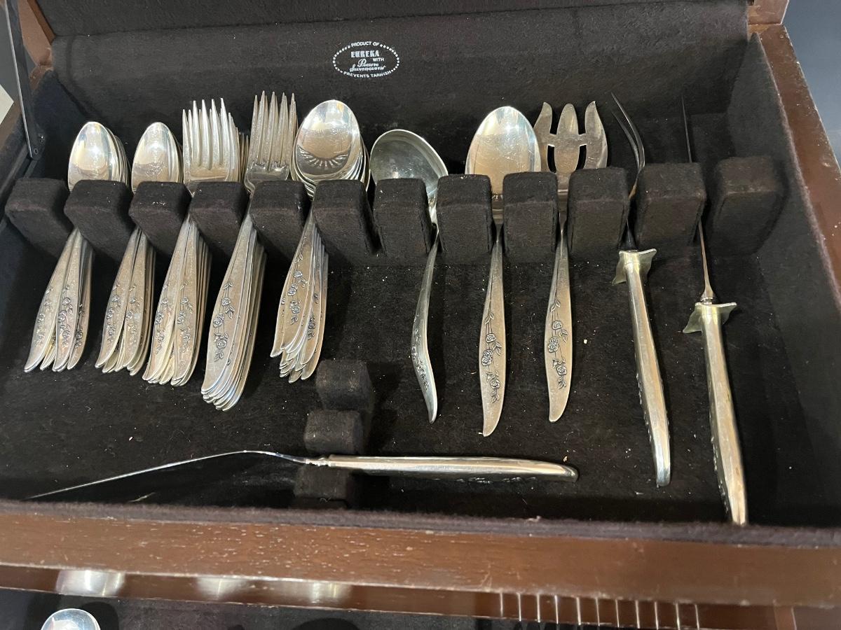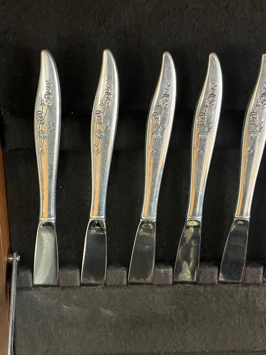 LOT 126K: Oneida Heirloom Sterling Silver "Young Love" Pattern Flatware set in Case - 2,228+ Grams