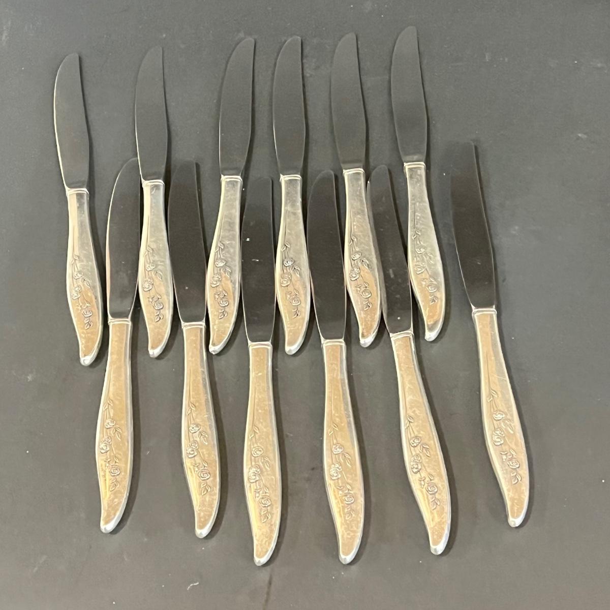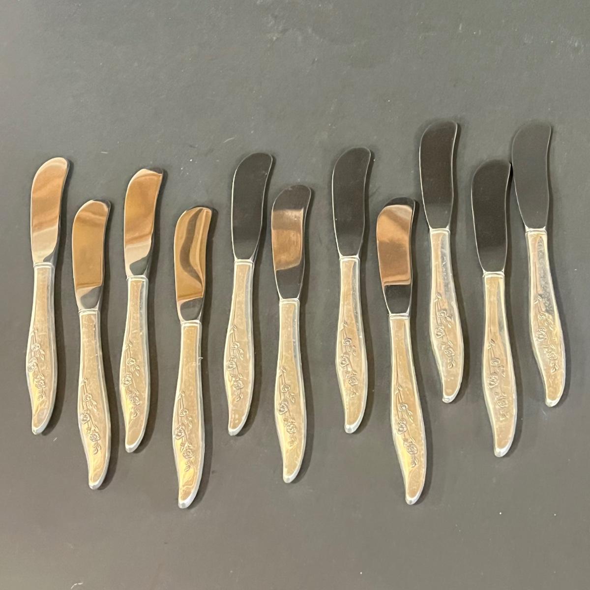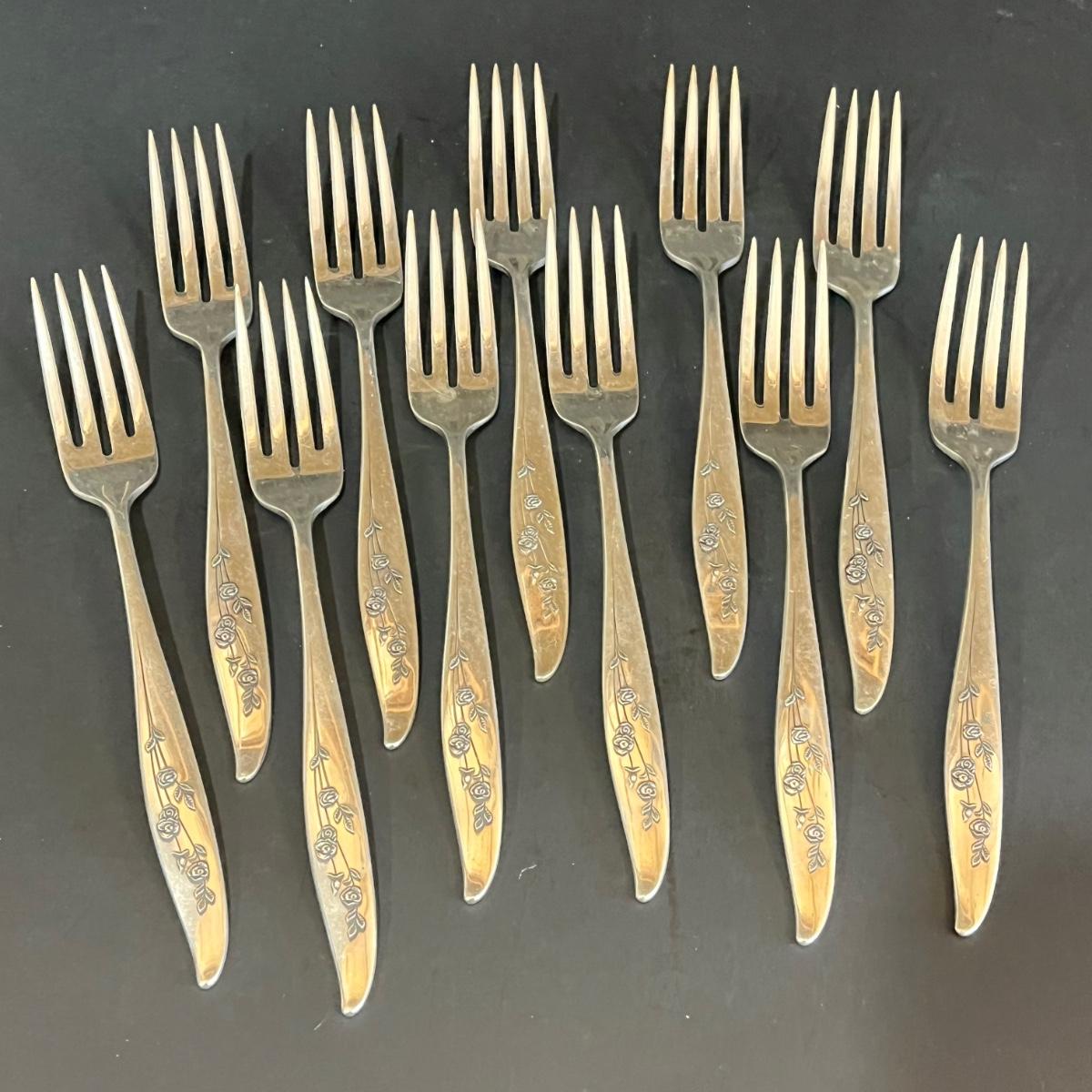 Set is a service for 12 but is missing some pieces - has only 11 dinner forks and 11 butter knives.