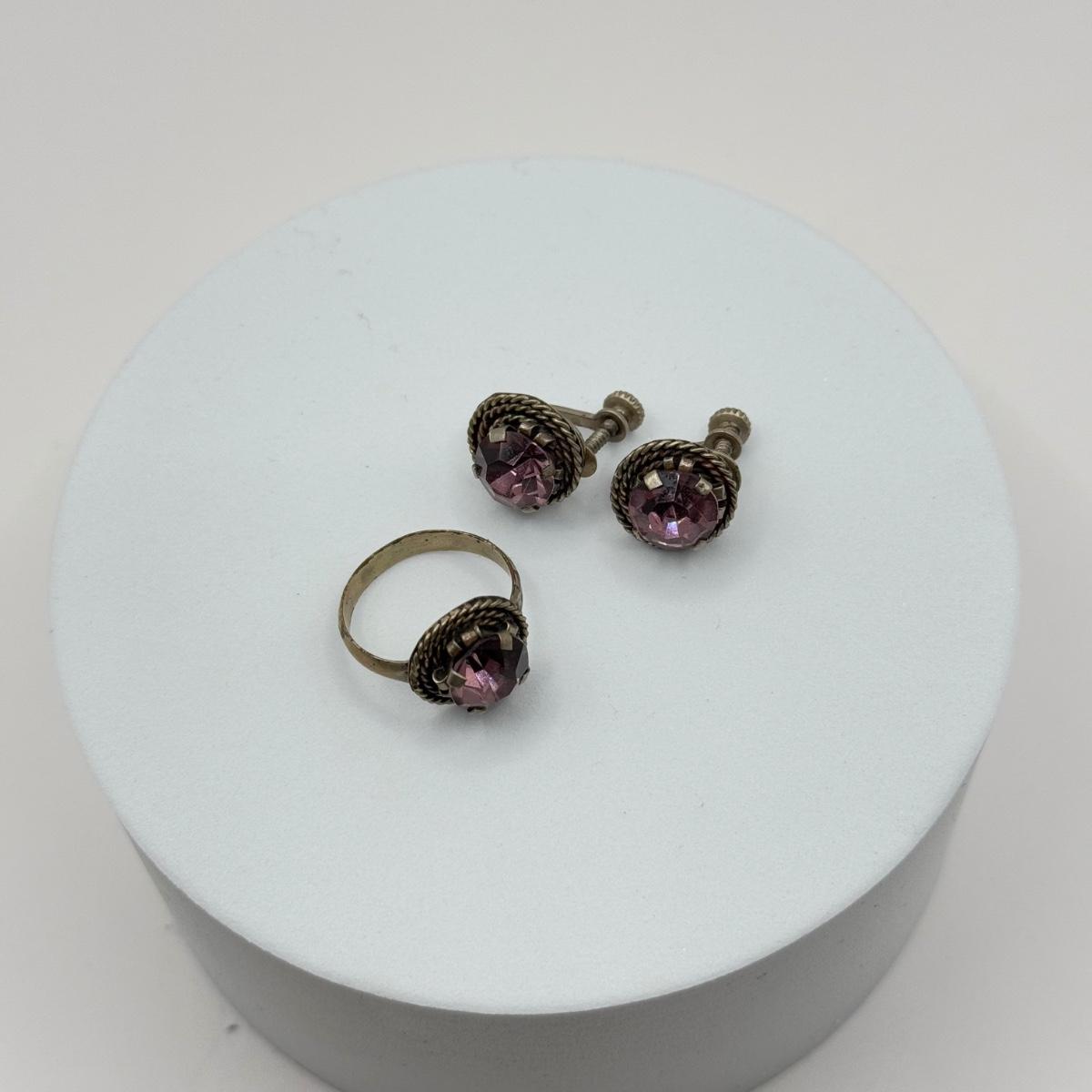 LOT 137J: Vintage Sterling Silver Ring w/ Matching Screwback Earrings