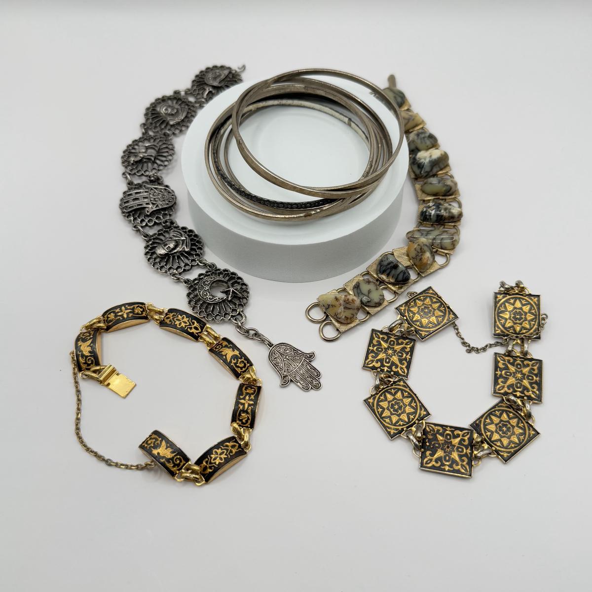 LOT 138J: Vintage Statement Bracelets & Bangles - 2 w/ Safety Chains, Maroc & More