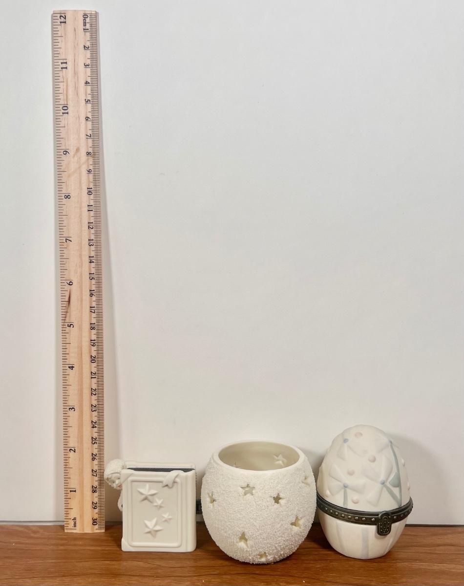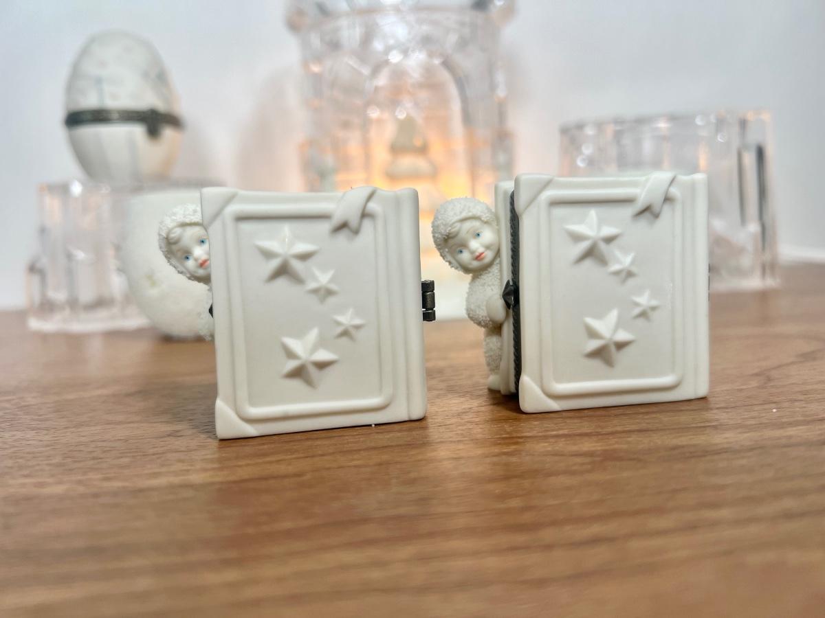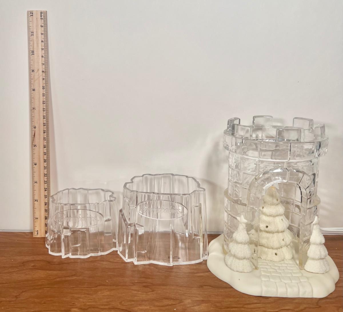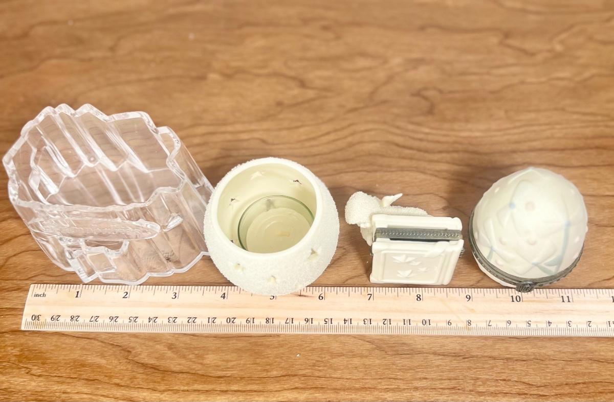 LOT 23B: Department 56 Snowbabies - "Tower of Light" Ice Castle Lamp, Egg Trinket box, Mini Photo Frames, Candle Holders & Iceberg Stands