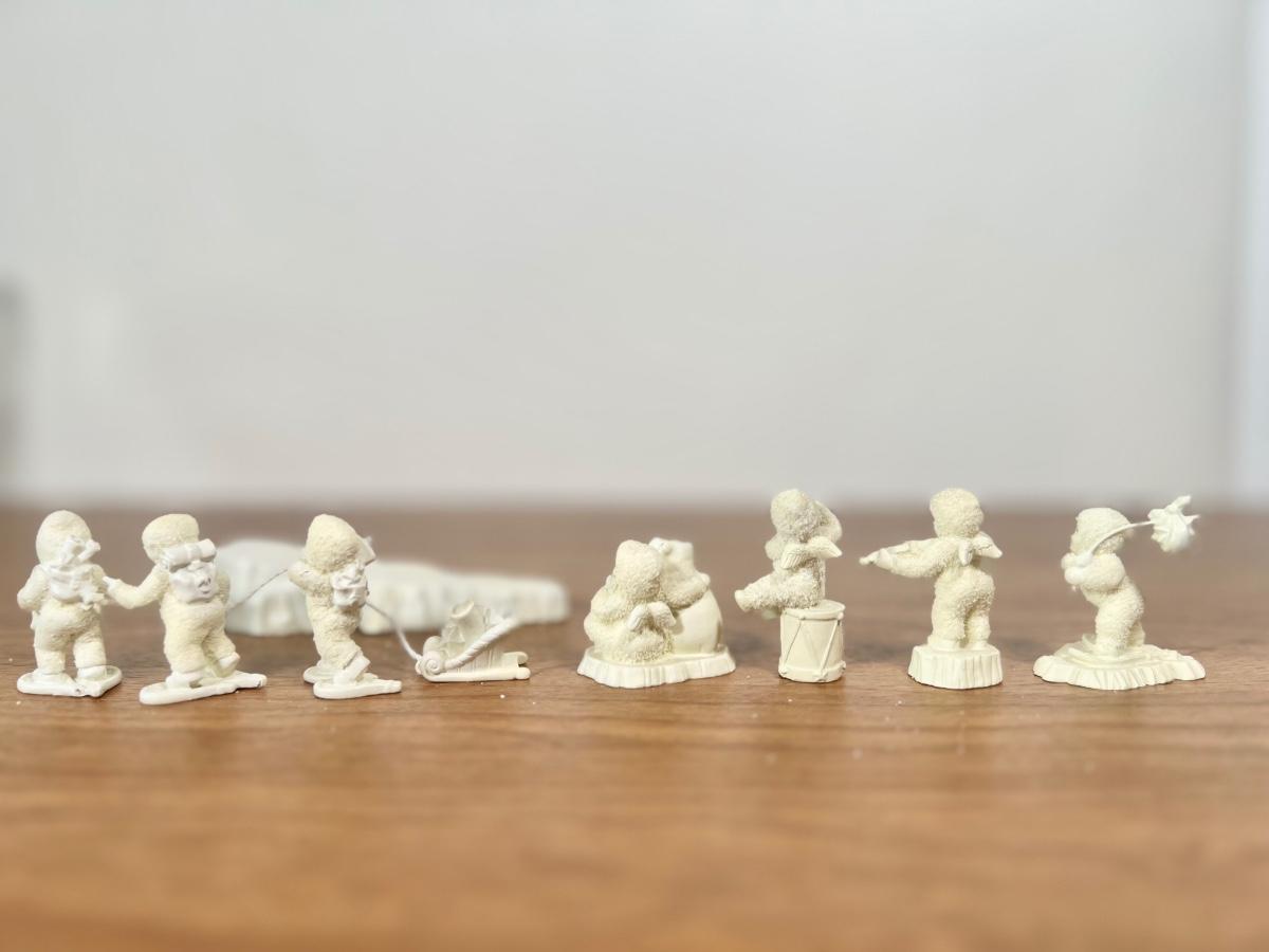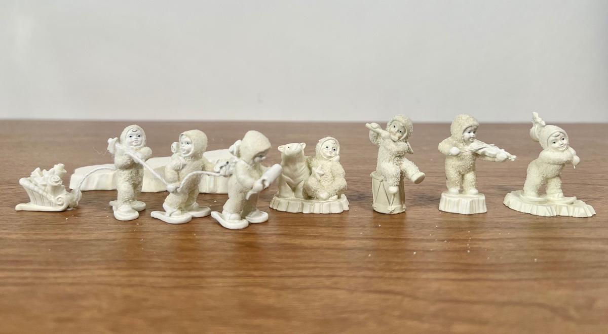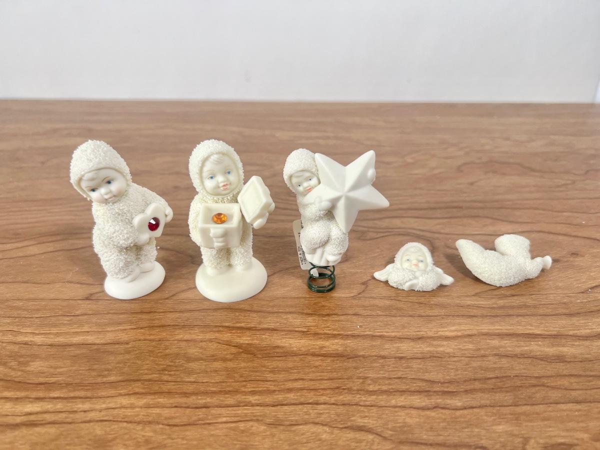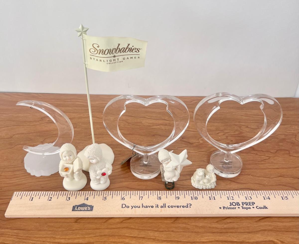 LOT 28B: Department 56 Snowbabies & Accessories - Starlight Games Flag, Miniature Figurines, Birthstone Figures, Pins, NIP Ornament Hangers & More