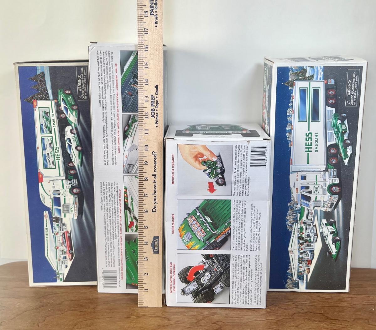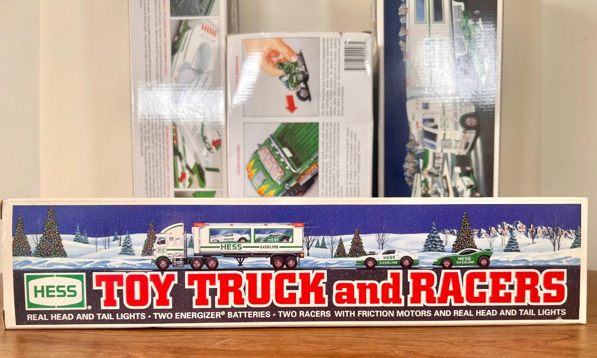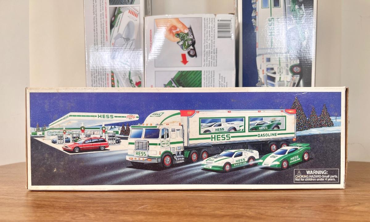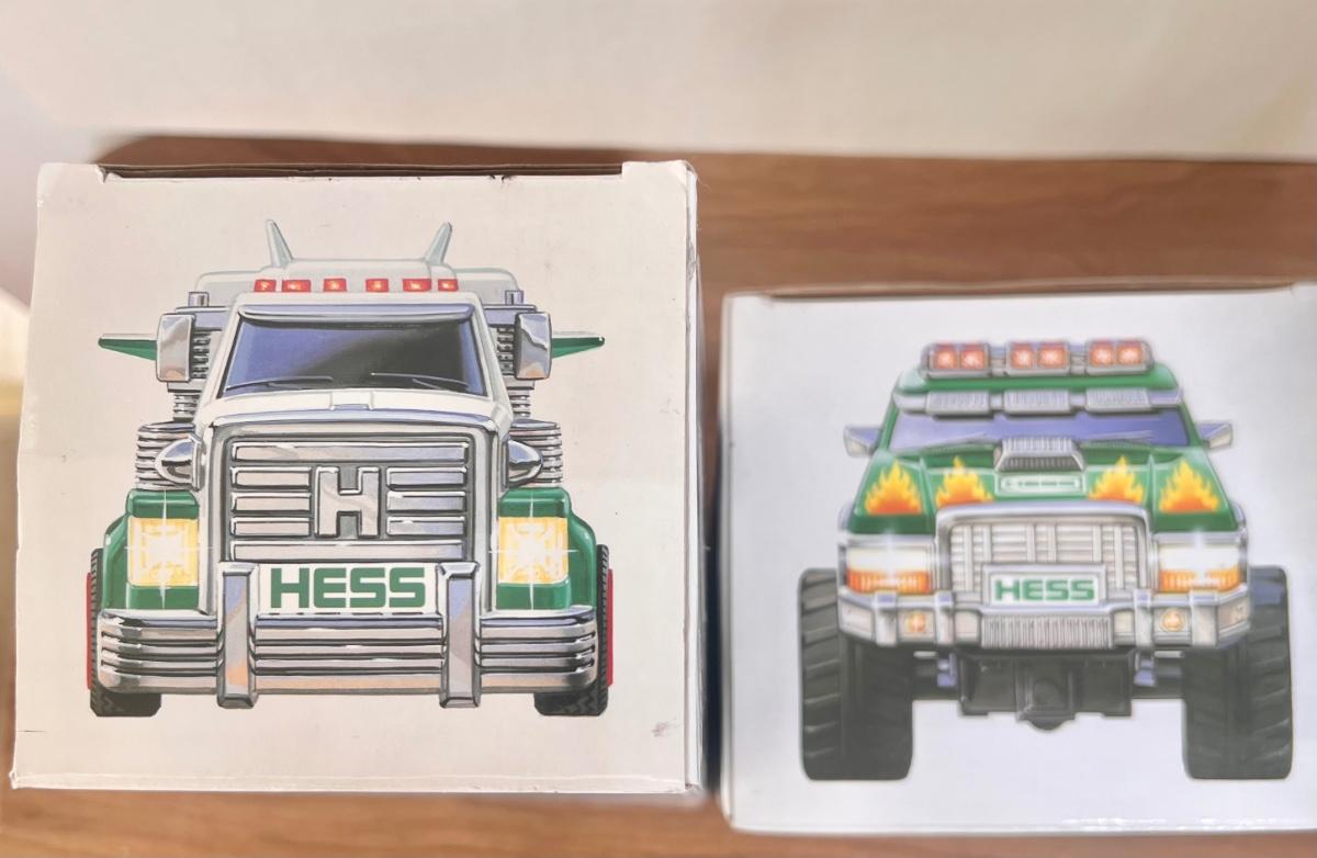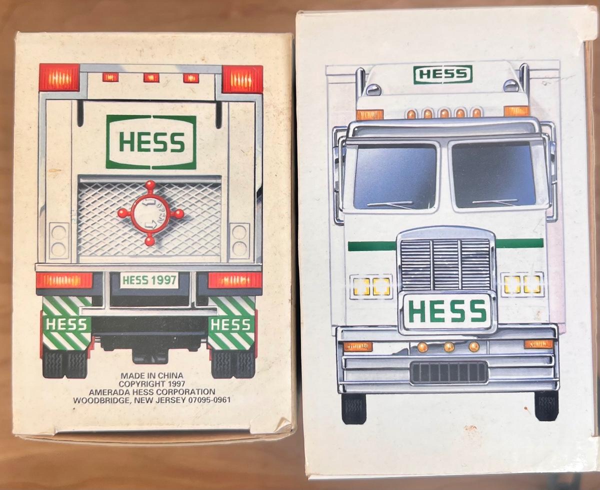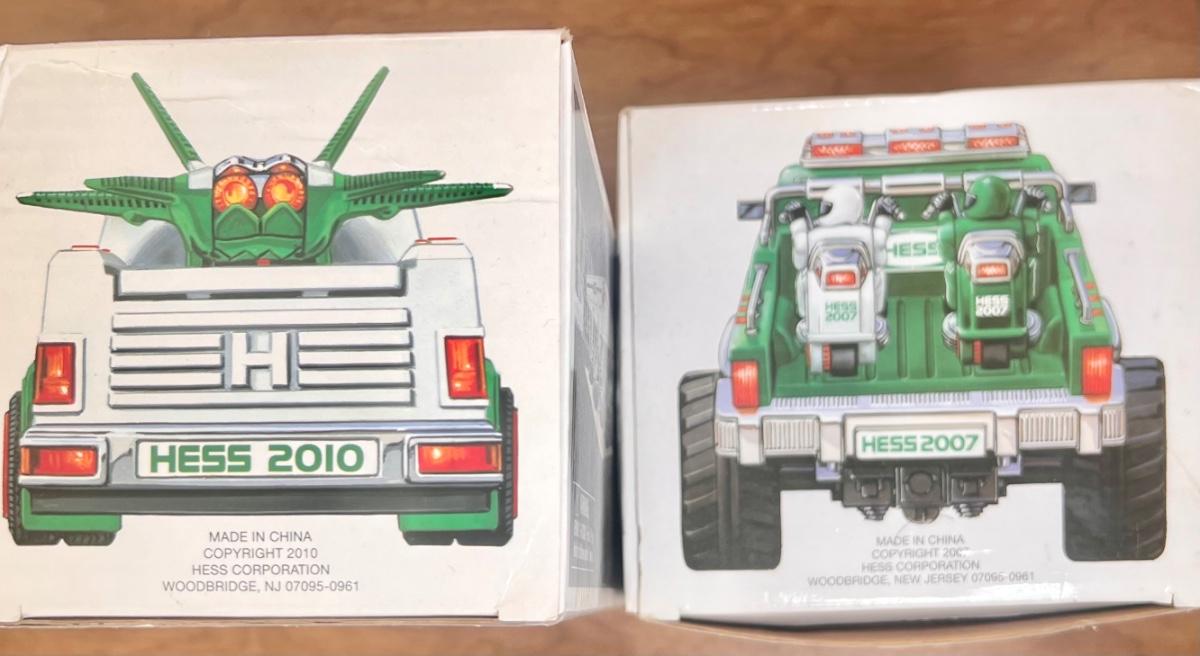 LOT 30B: Hess Trucks w/ Boxes - Monster Truck w/ Motorcycles, Toy Truck and Jet & Toy Truck and Racecars