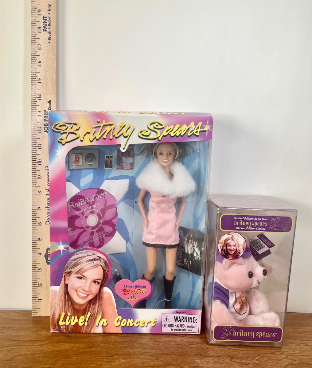 LOT 31B: 1999 Play Along Britney Spears Live in Concert Doll NRFB & Limited Edition Britney Spears Bear in Case