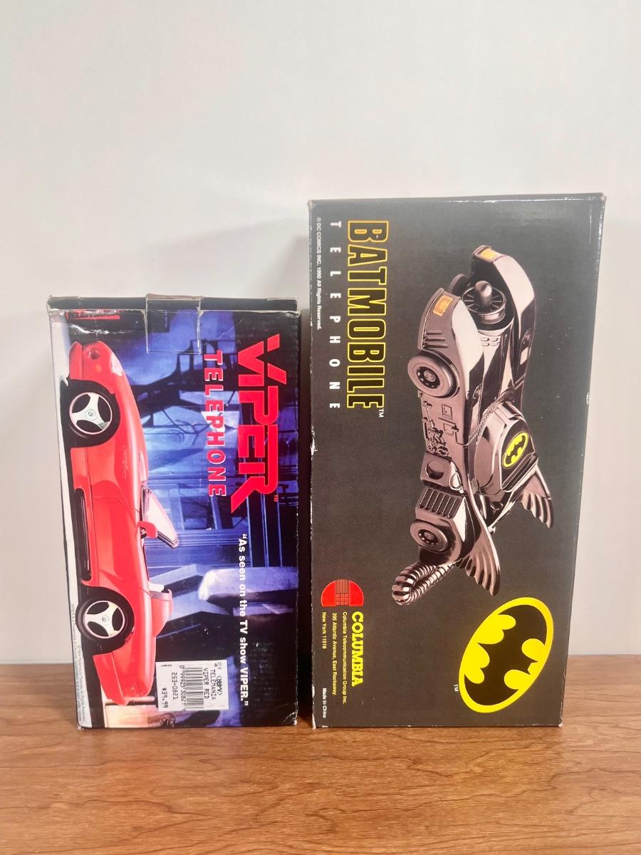LOT 35A: NIB Novelty Phones - 1990 Columbia Batmobile Telephone, Telemania American Classics Corvette III & 1994 Paramount Viper