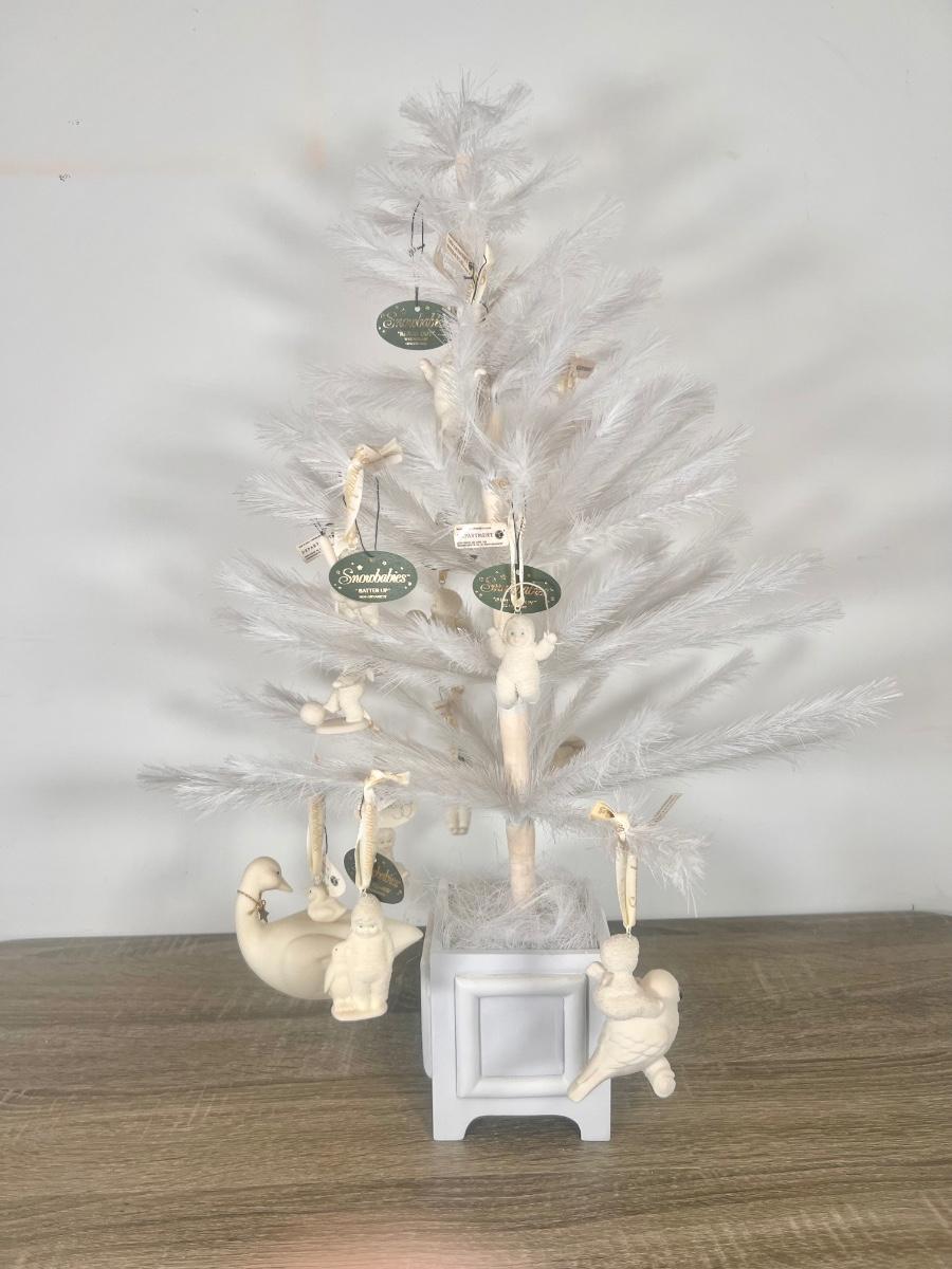 LOT 38B: LOT 38B: Department 56 Snowbabies Display Tree w/ Variety of Snowbaby Ornaments