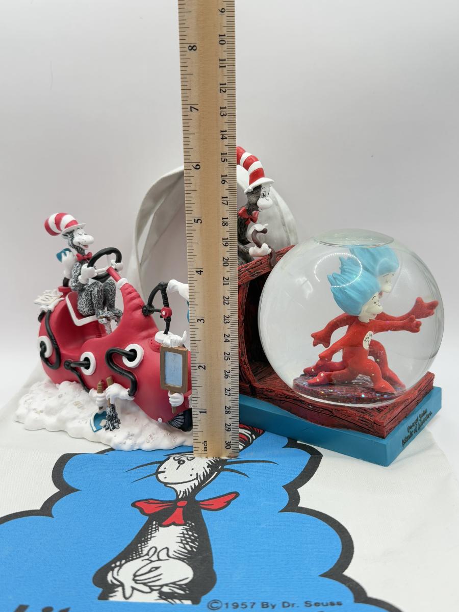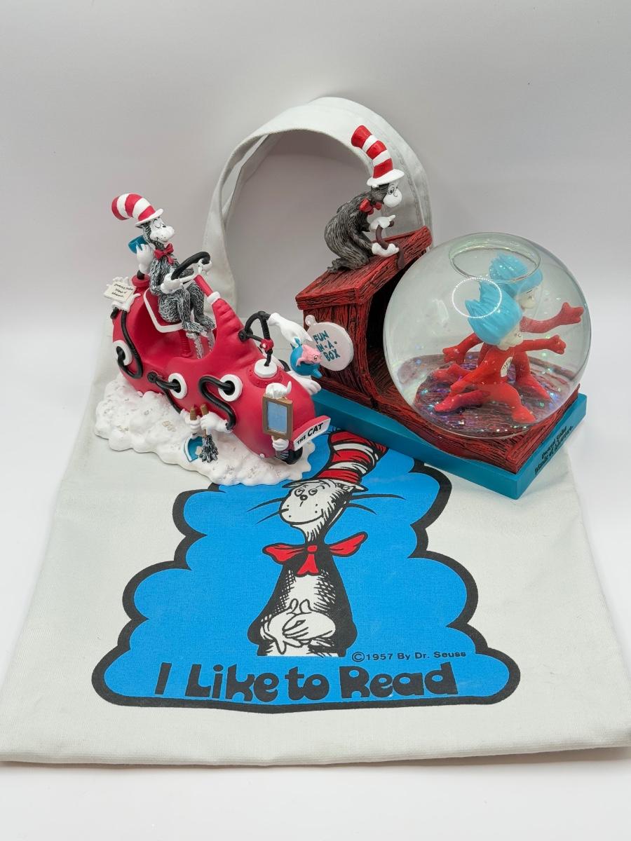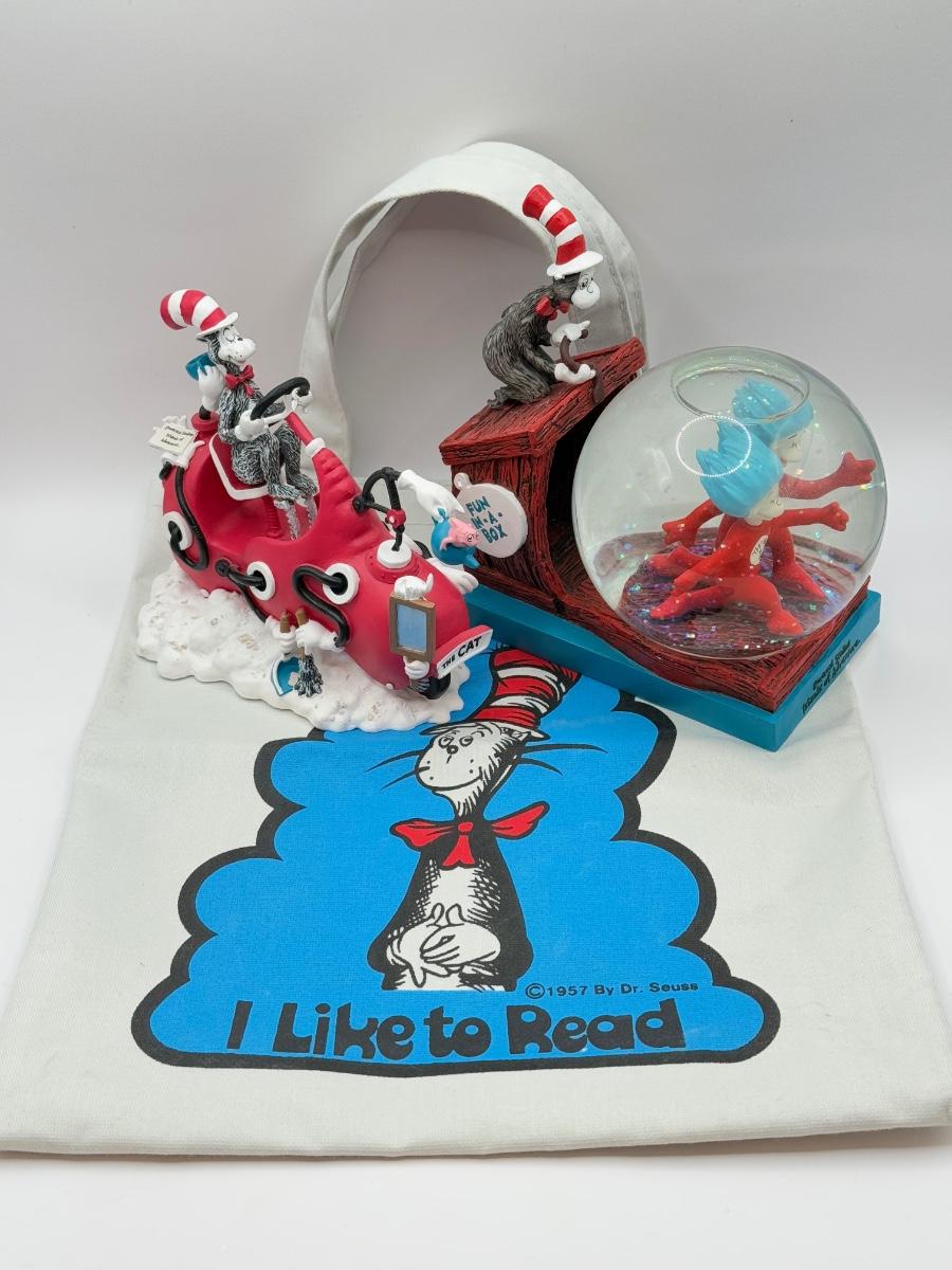 LOT 85B: Dr. Seuss Cat in the Hat Universal Studios Islands of Adventure Seuss Landing Collection - Red Machine Car, Snowglobe & I Like to Read Canvas Tote