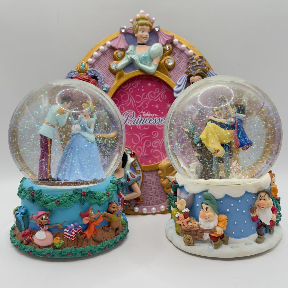 LOT 97A: Disney Princess Collection - Enesco Christmas Musical Snowglobes (Snow White & Cinderella) & Photo Frame