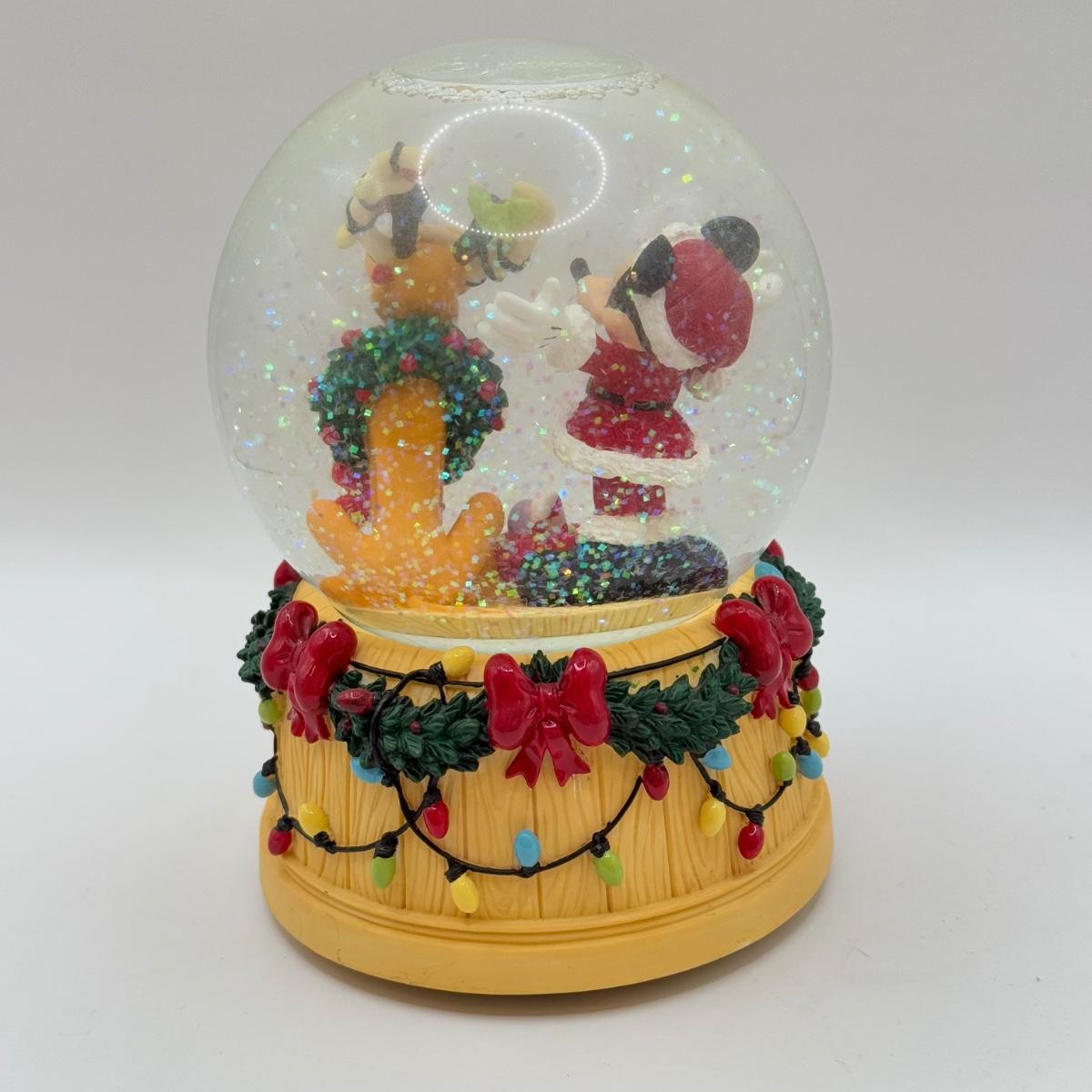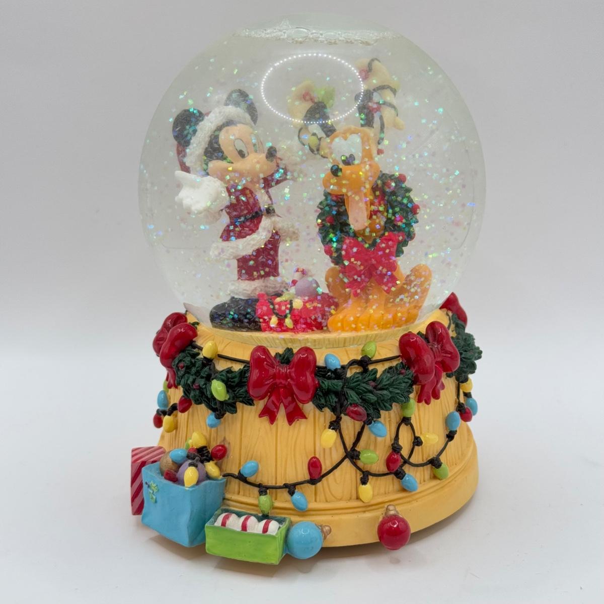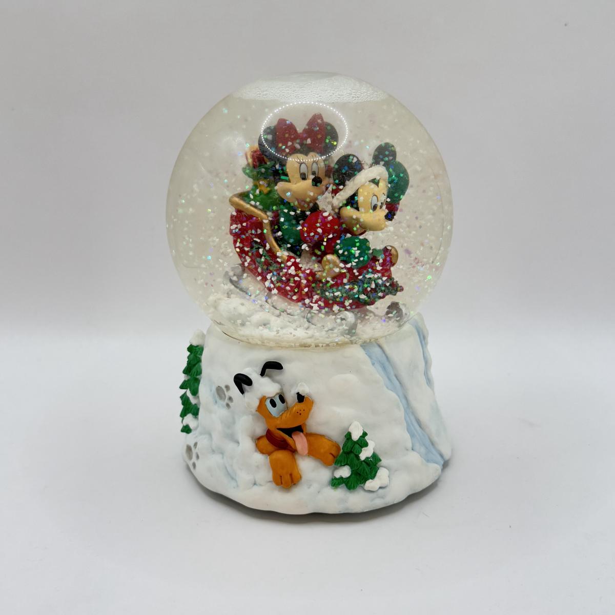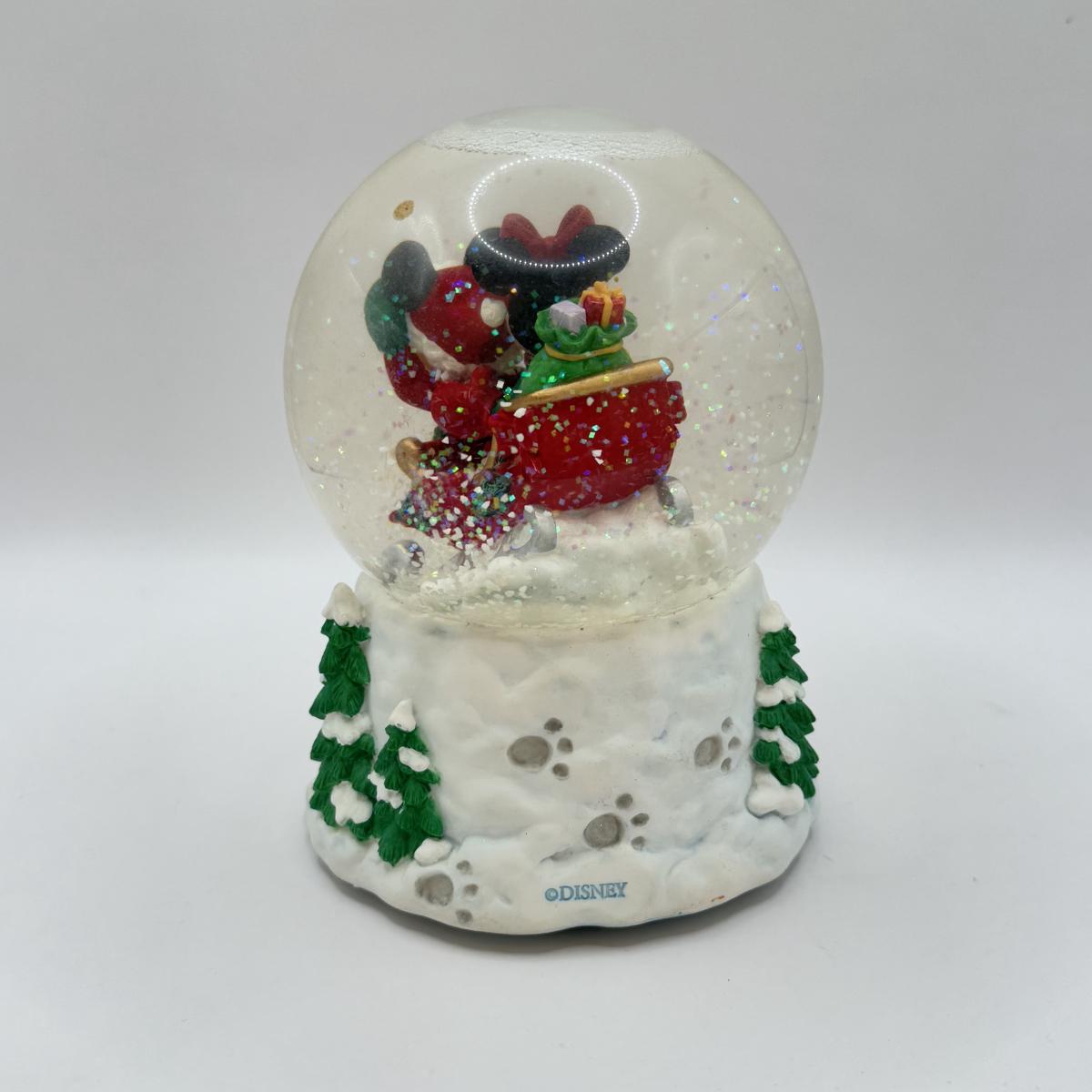 LOT 103B: Disney Kurt S Adler Mickey as Santa Christmas Nutcracker & Disney Christmas Snowglobes - "Sleigh Ride" & "Deck the Halls"