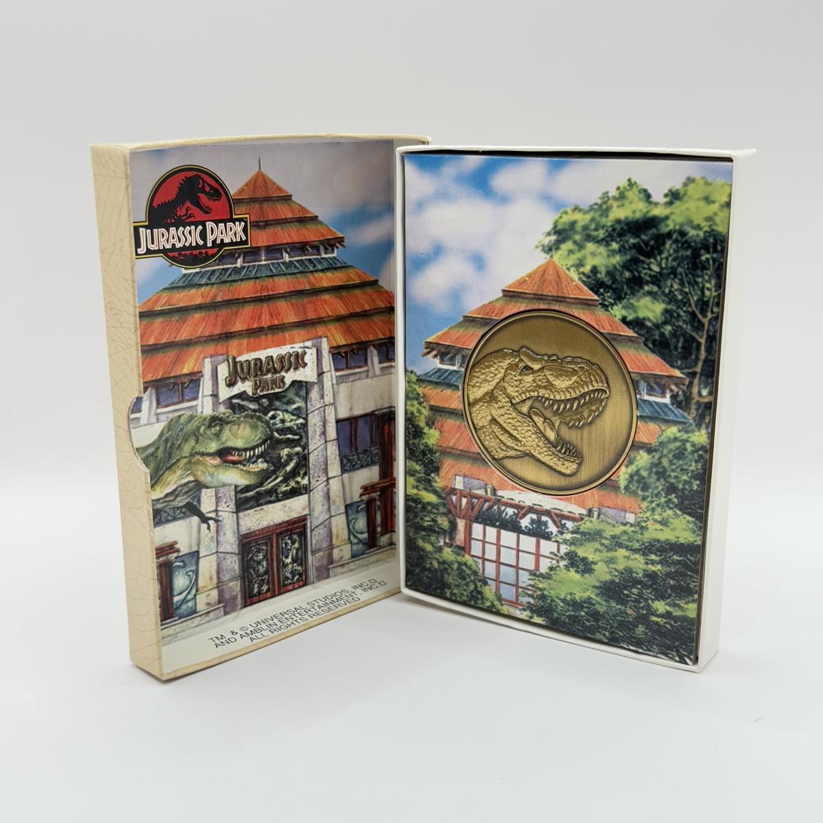 LOT 116J: 1999 Universal Studios Islands of Adventure Jurassic Park Dinosaur Coin Medallion in Original Box