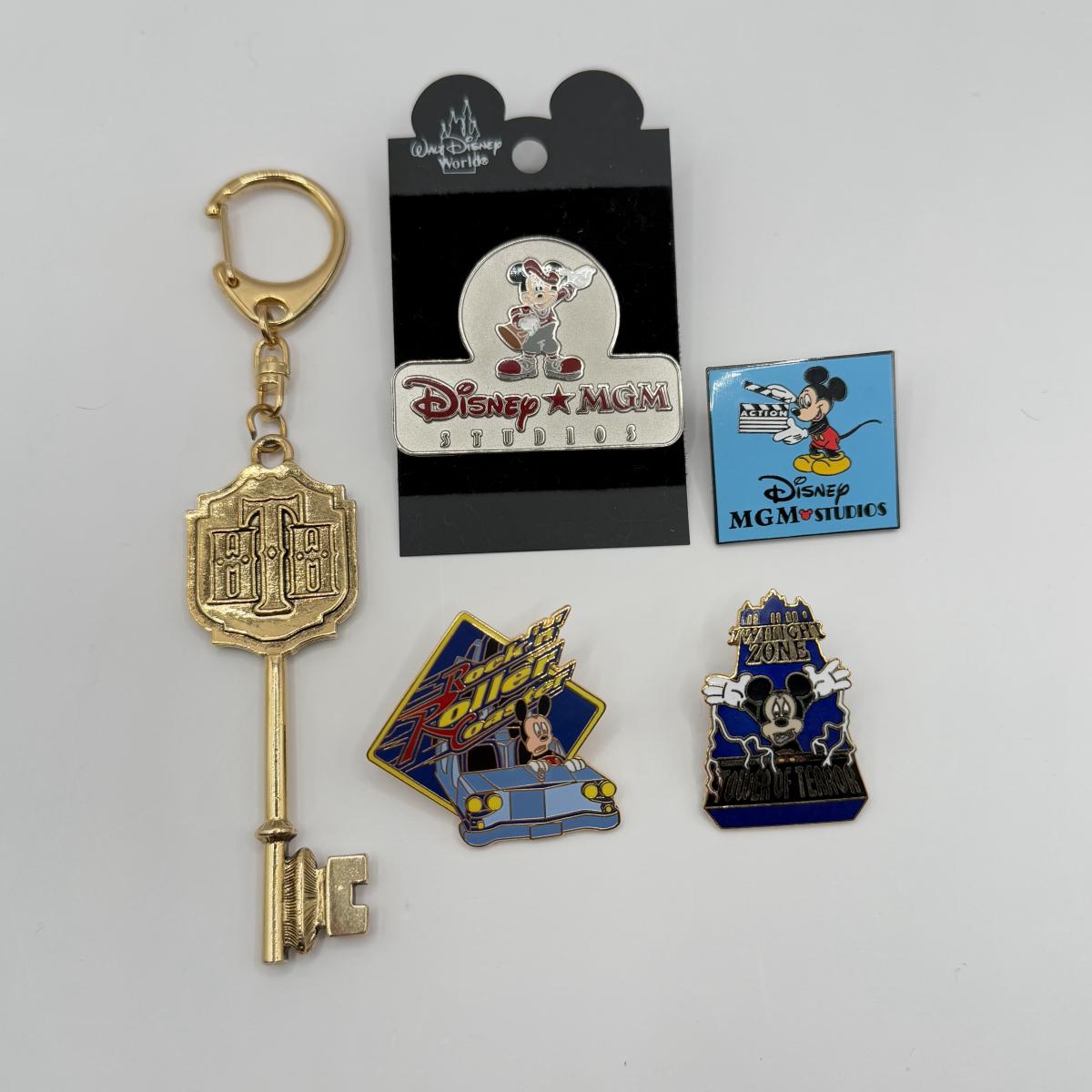 LOT 118J: Disney MGM Studios Collection - Park & Ride Trading Pins (Tower of Terror & Rock 'n' Roller Coaster) w/ Hollywood Tower Hotel Keychain