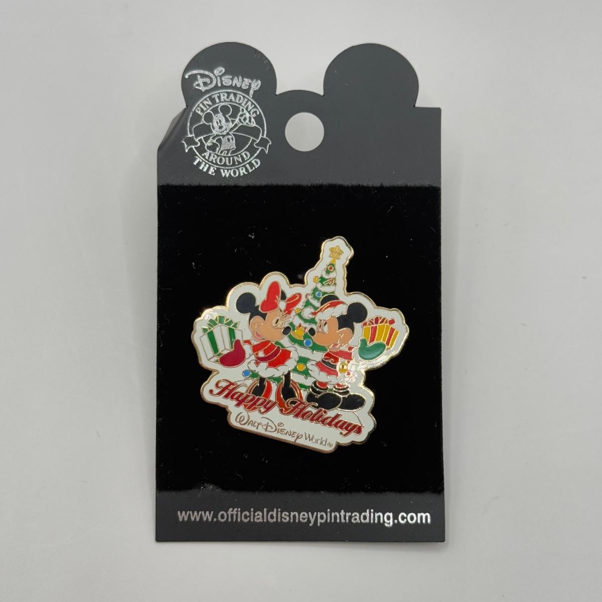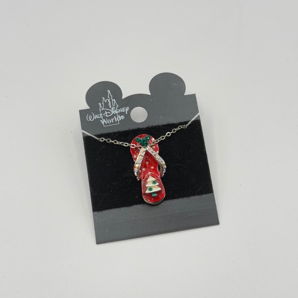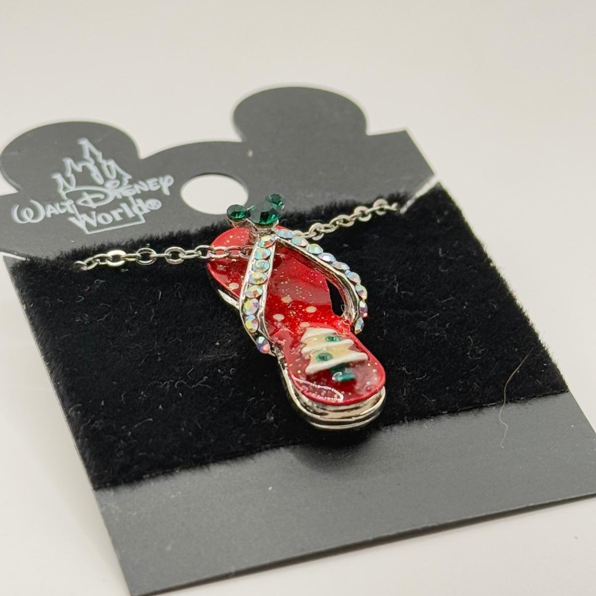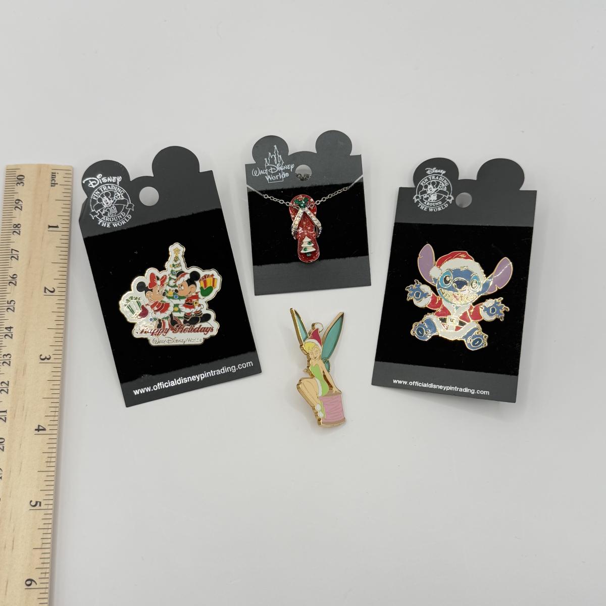 LOT 124J: Disney Christmas - 16" Flip Flop Necklace & Trading Pins - Happy Holidays Mickey and Minnie, Stitch as Santa & Tinkerbell w/ Santa Hat