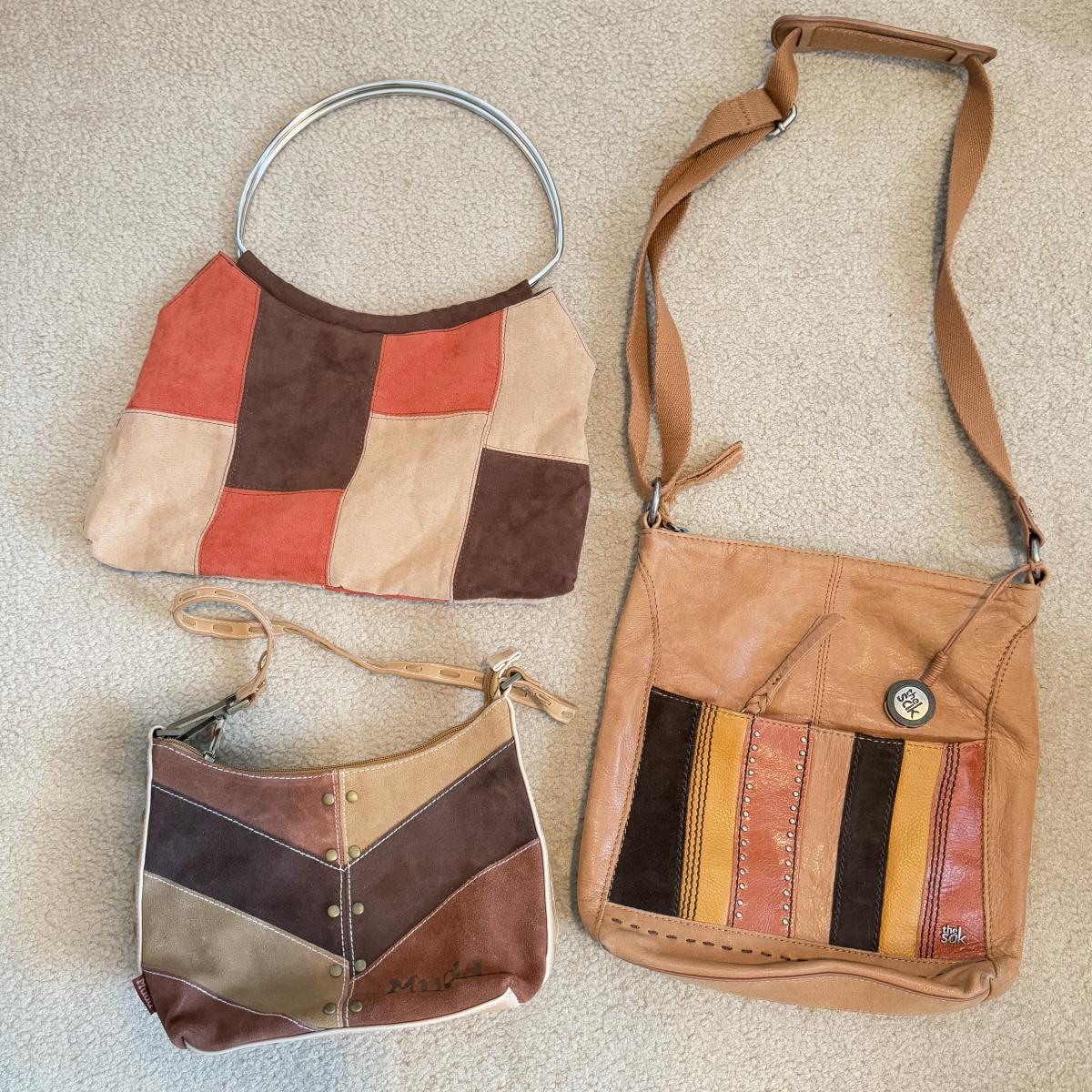 LOT 139B: Y2K Gianni Patchwork Purse, Brown Mudd Shoulder Bag & The Sak Striped Handbag