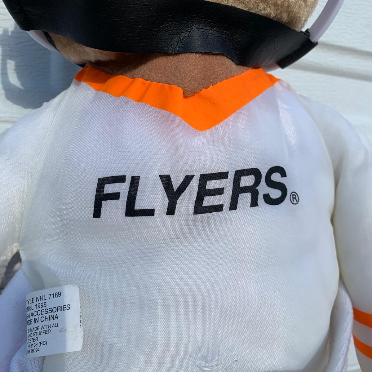 LOT 150 B: NHL Philadelphia Flyers 1995 Bear Hockey Player Stocking & Junior Size Medium (10 - 12) Quarter Sleeve T-Shirt