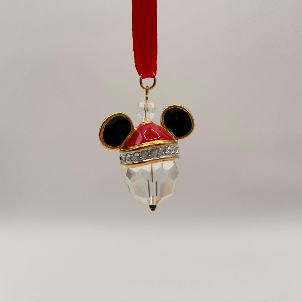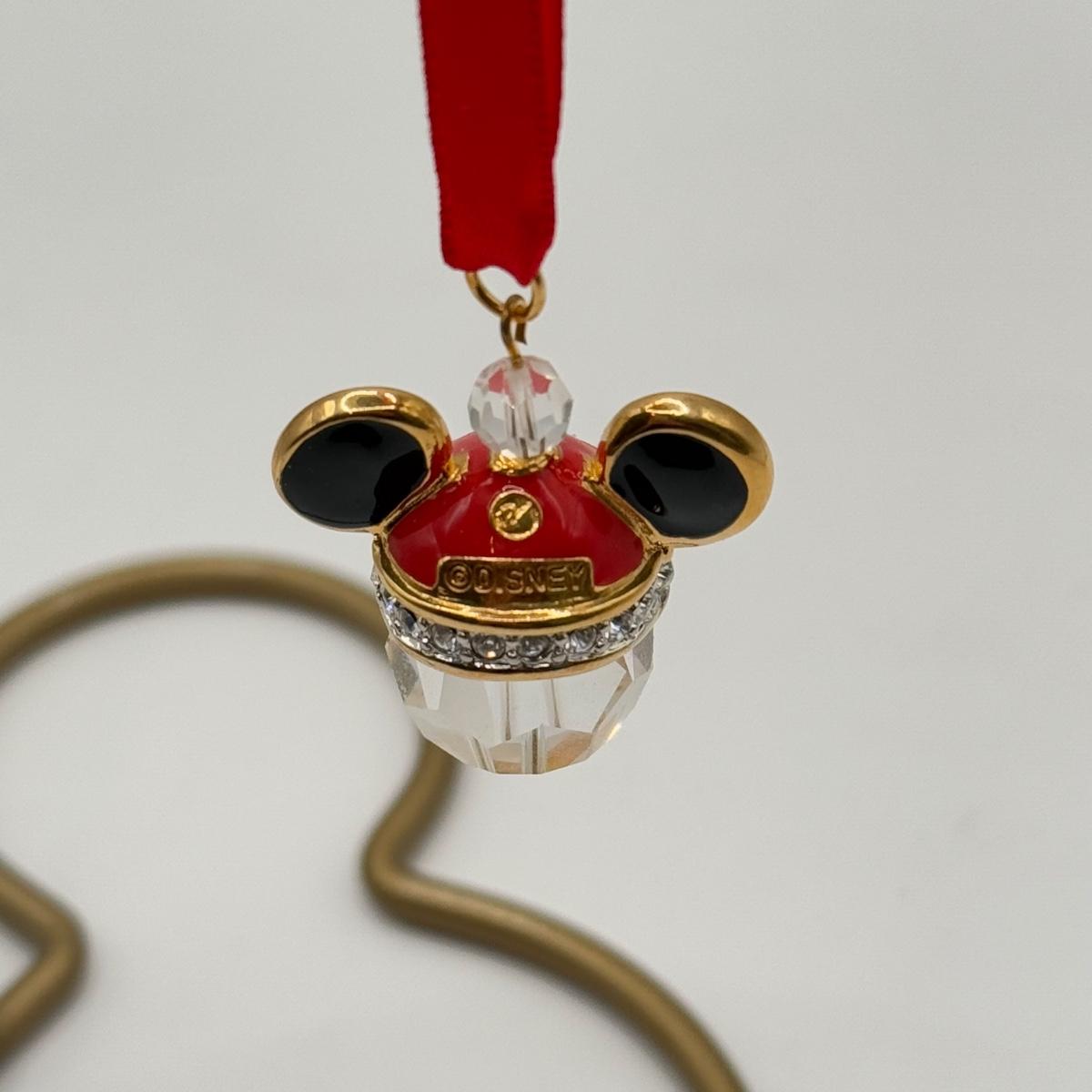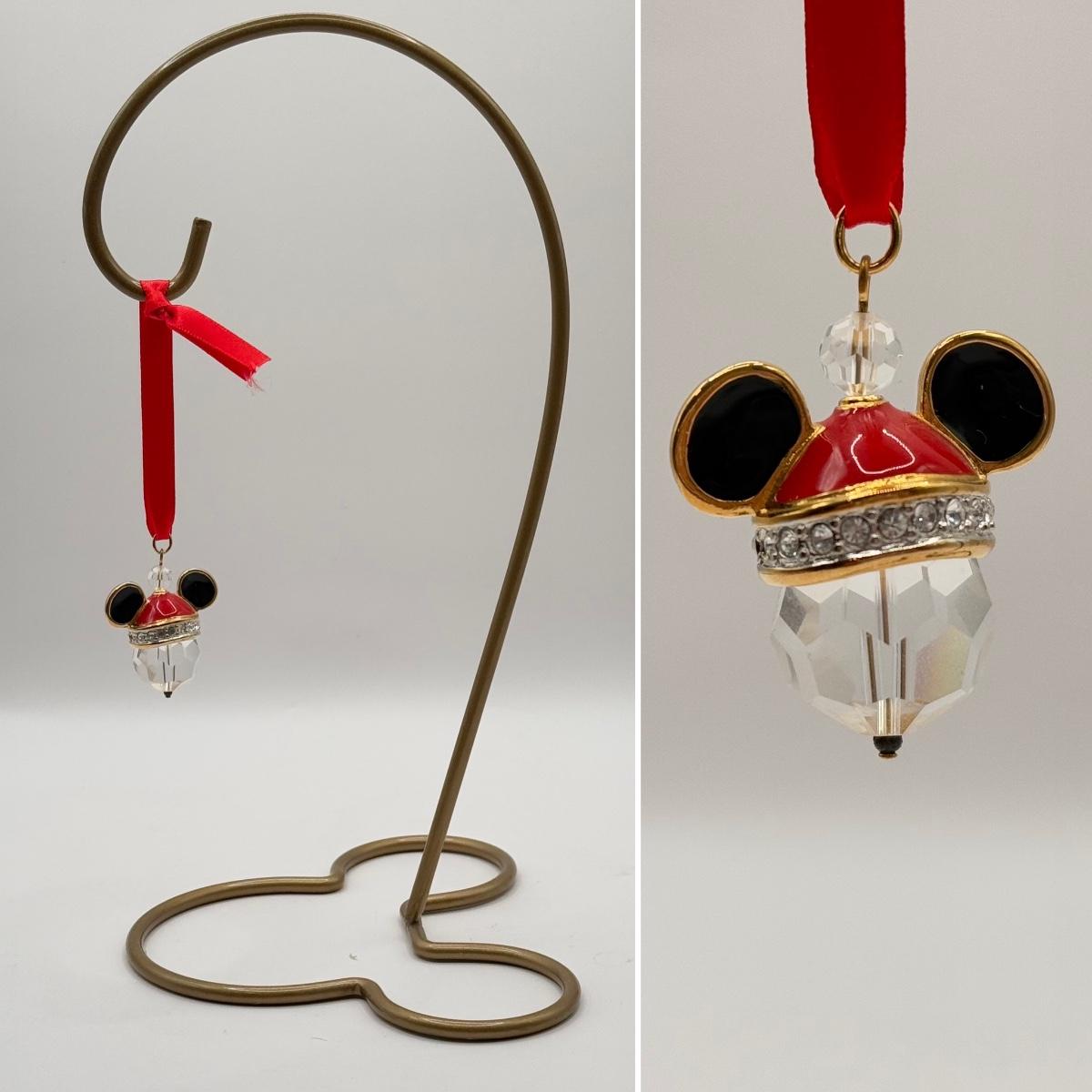 LOT 174A: Art of Disney Swarovski Crystal Mickey Santa Hat Ornament w/ Mickey Stand
