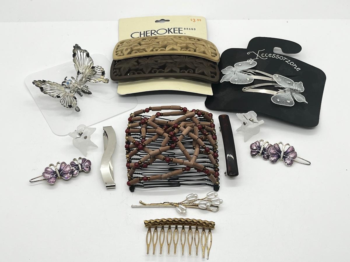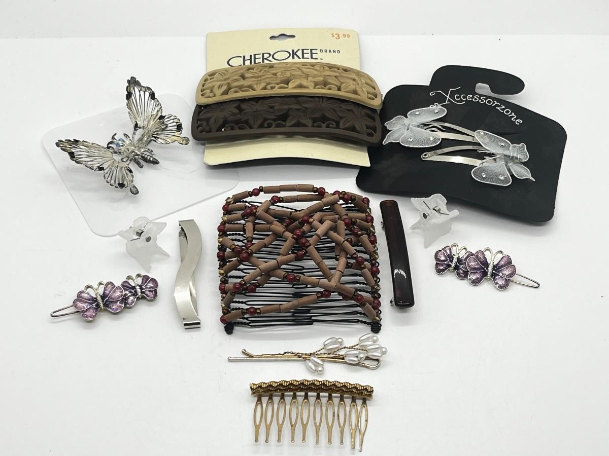 LOT 185J: Hair Accessories: Comb Clip, Barrettes, Butterfly Clips and More