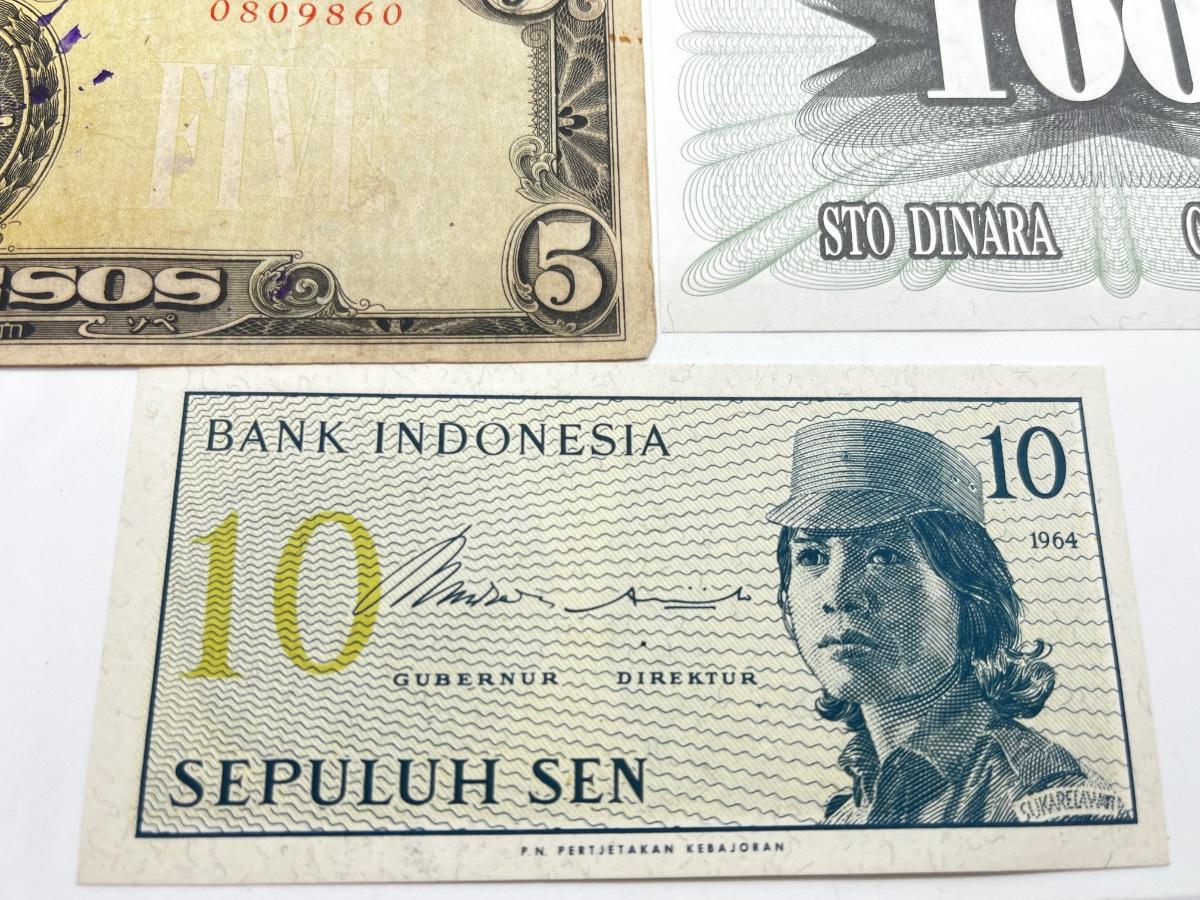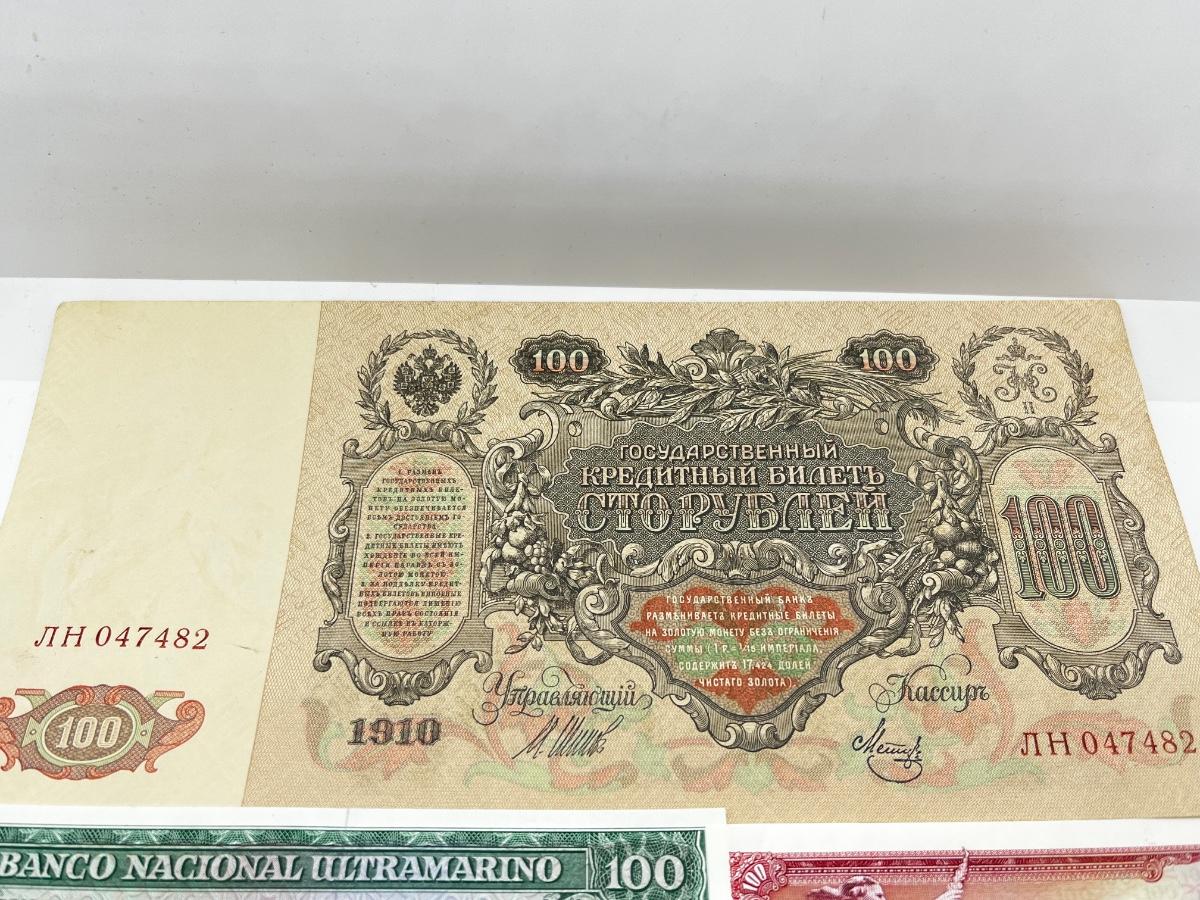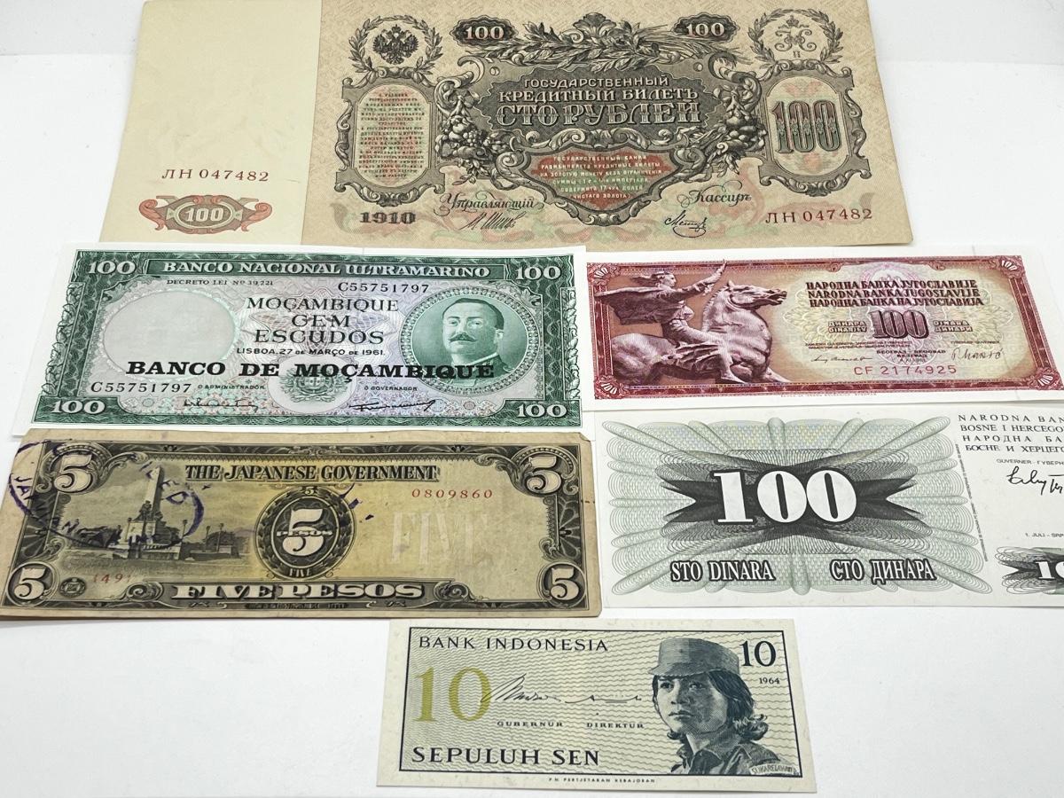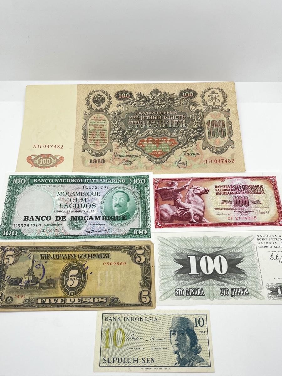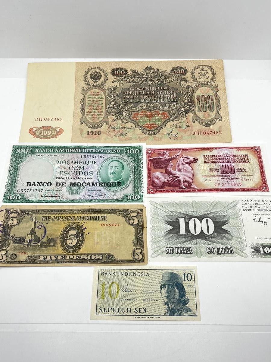 LOT 191J: International Currency Collection: WWII Japanese Occupation of Philippines 5 Pesos, 1910 One Hundred Rubles and More