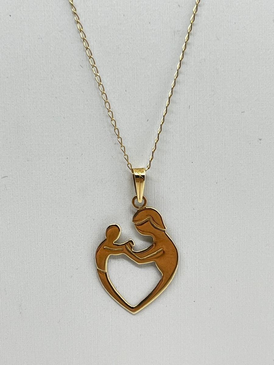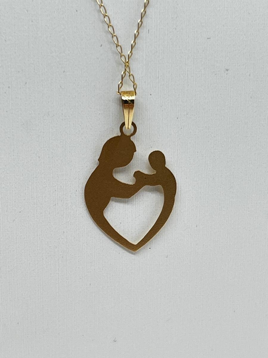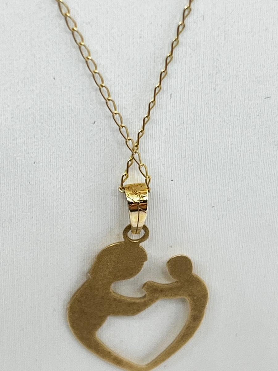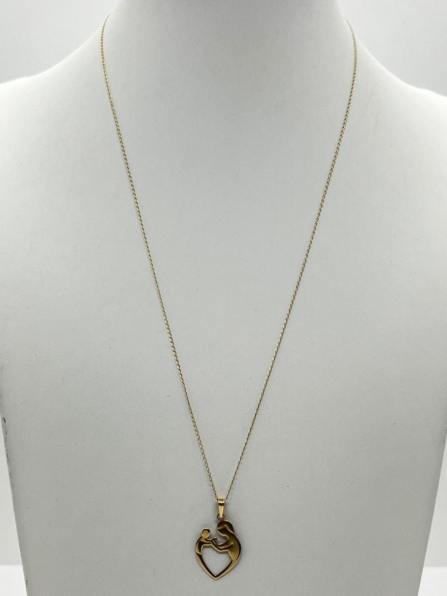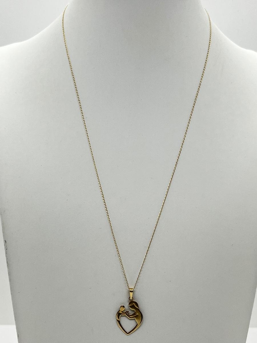 LOT 195J: 14K Yellow Gold 17" Chain and "Mother & Child" Heart Pendant