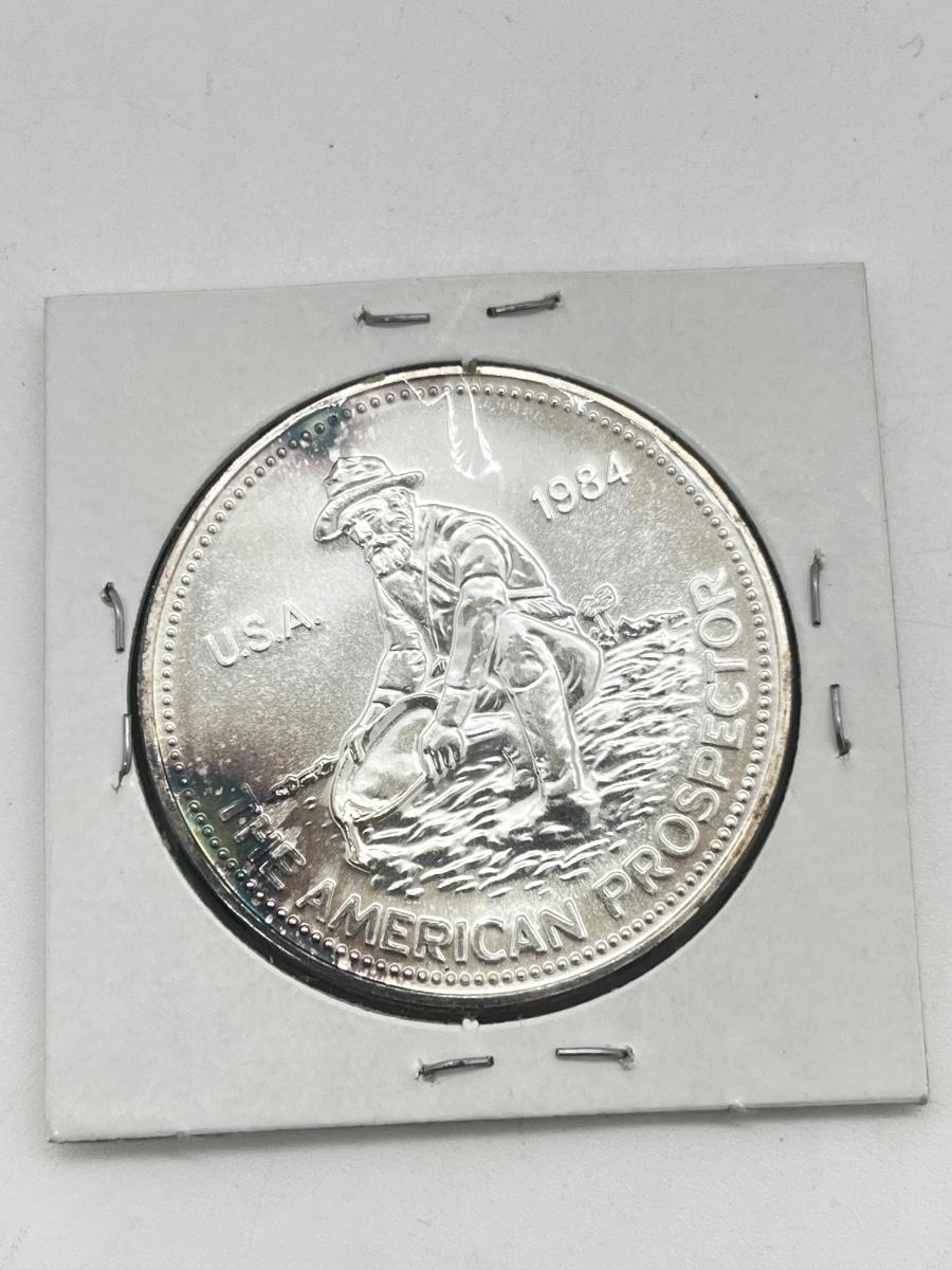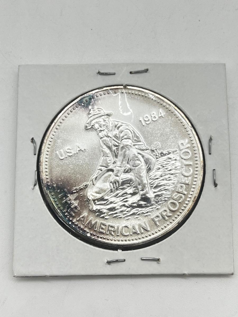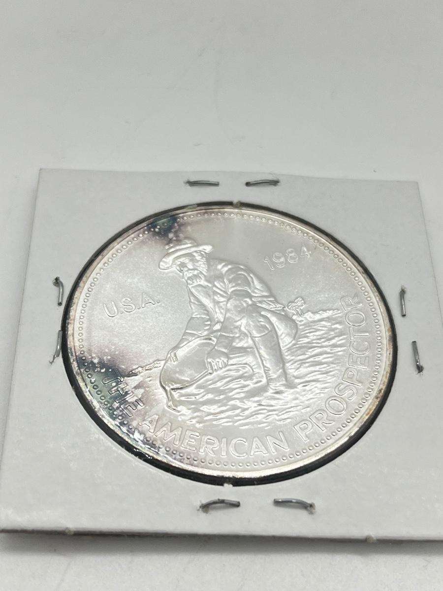 LOT 196J: 1984 Englehard One Ounce .999 Fine Silver American Prospector Coin